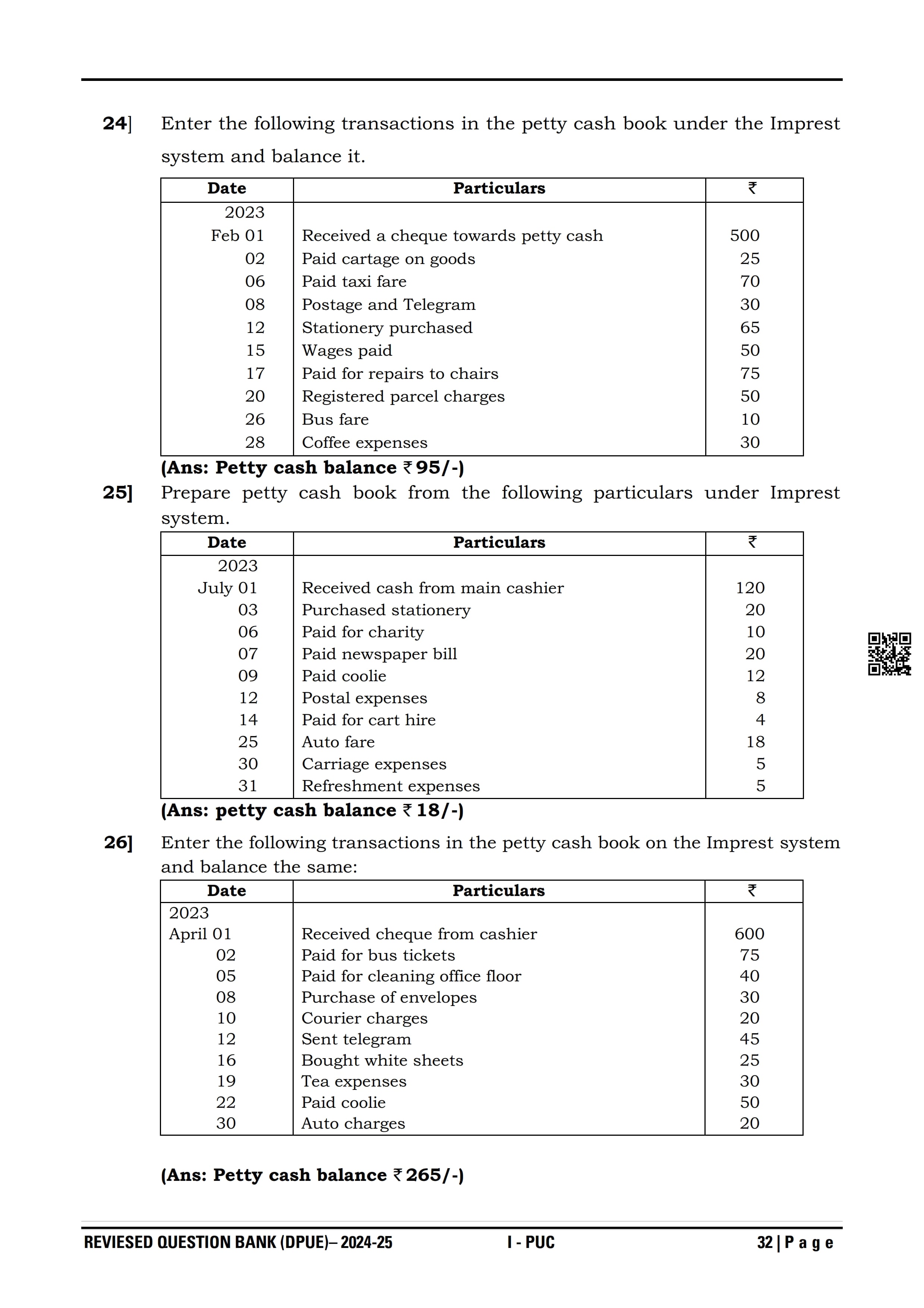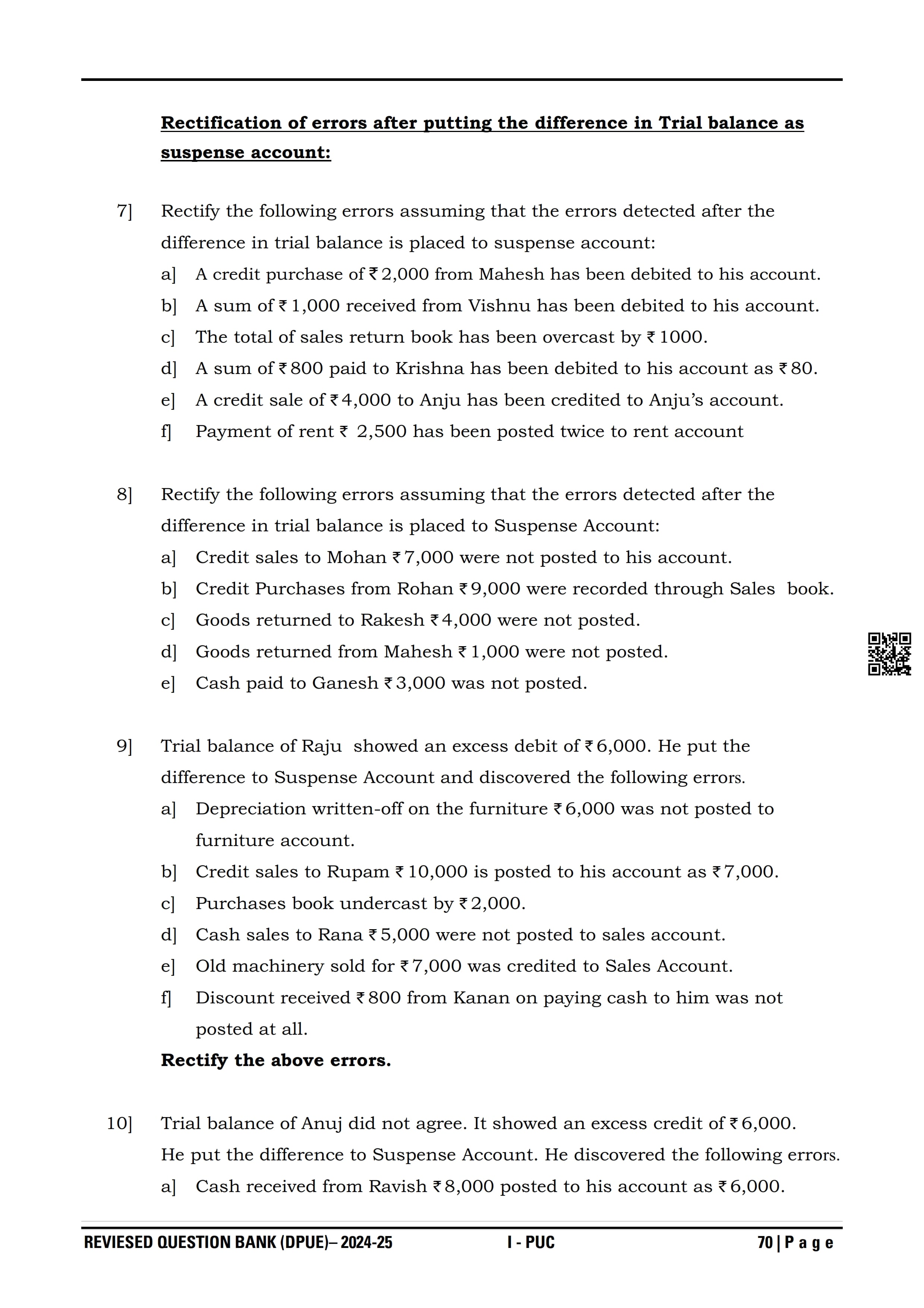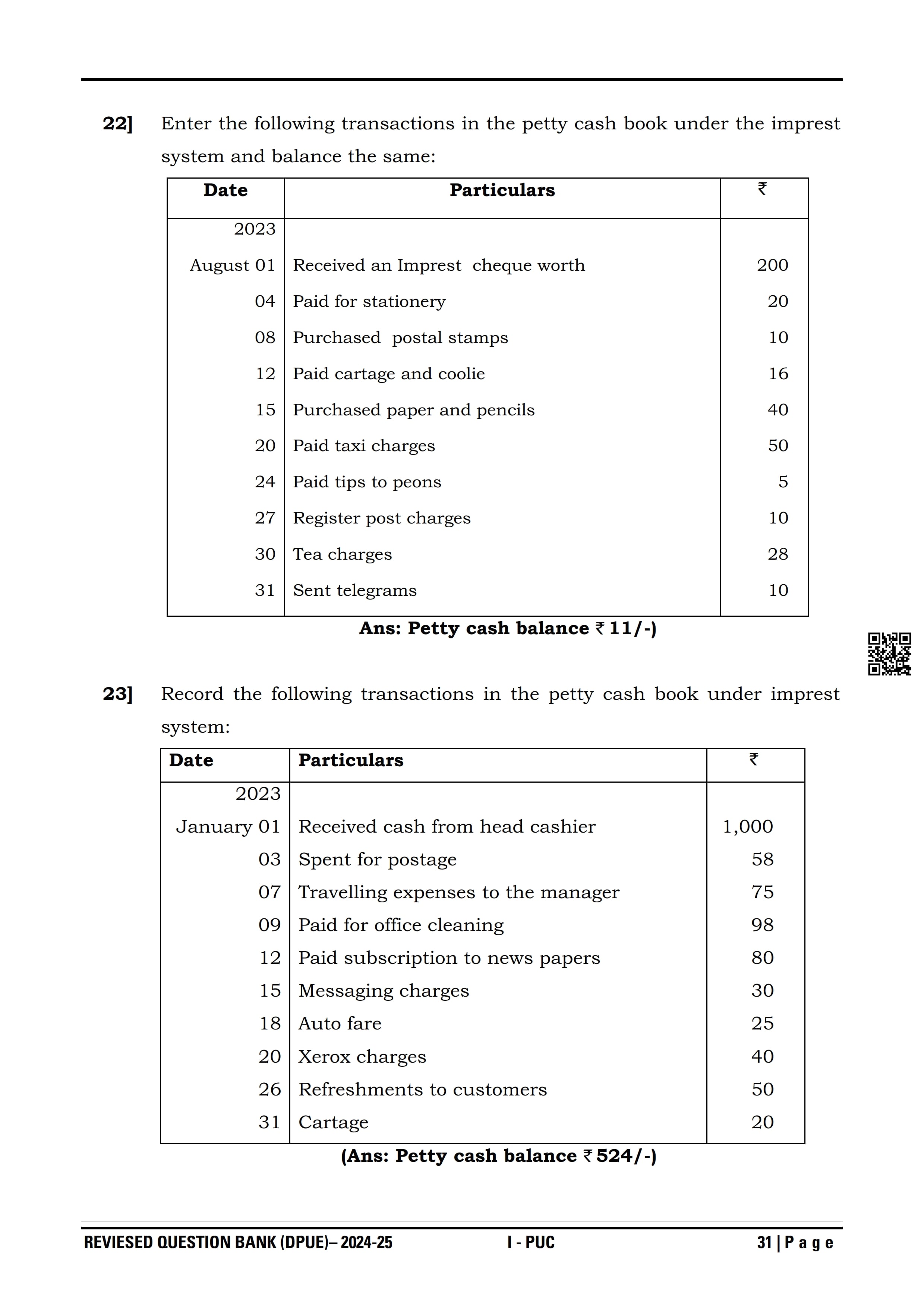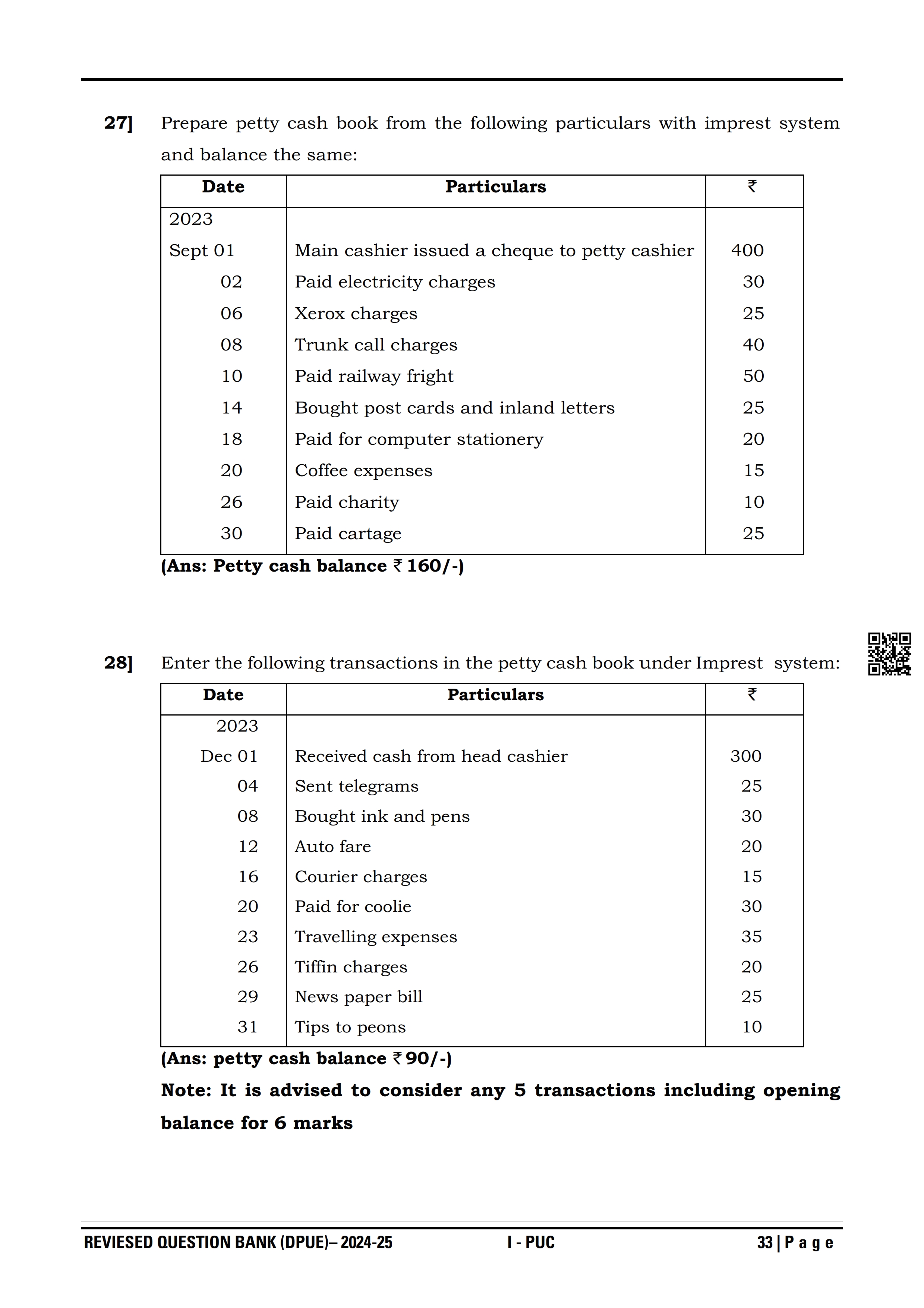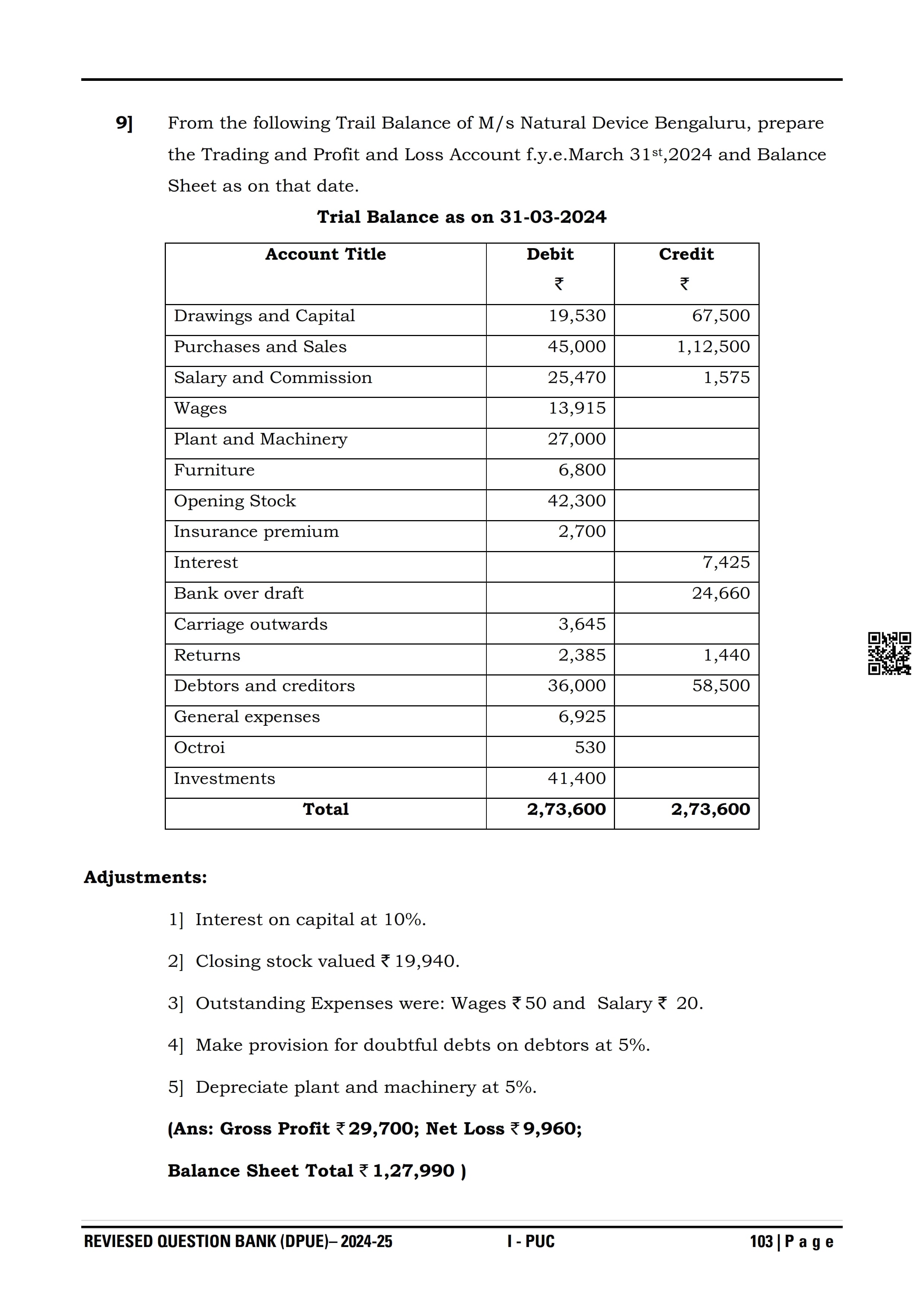 Karnataka I PUC Accountancy Question Bank