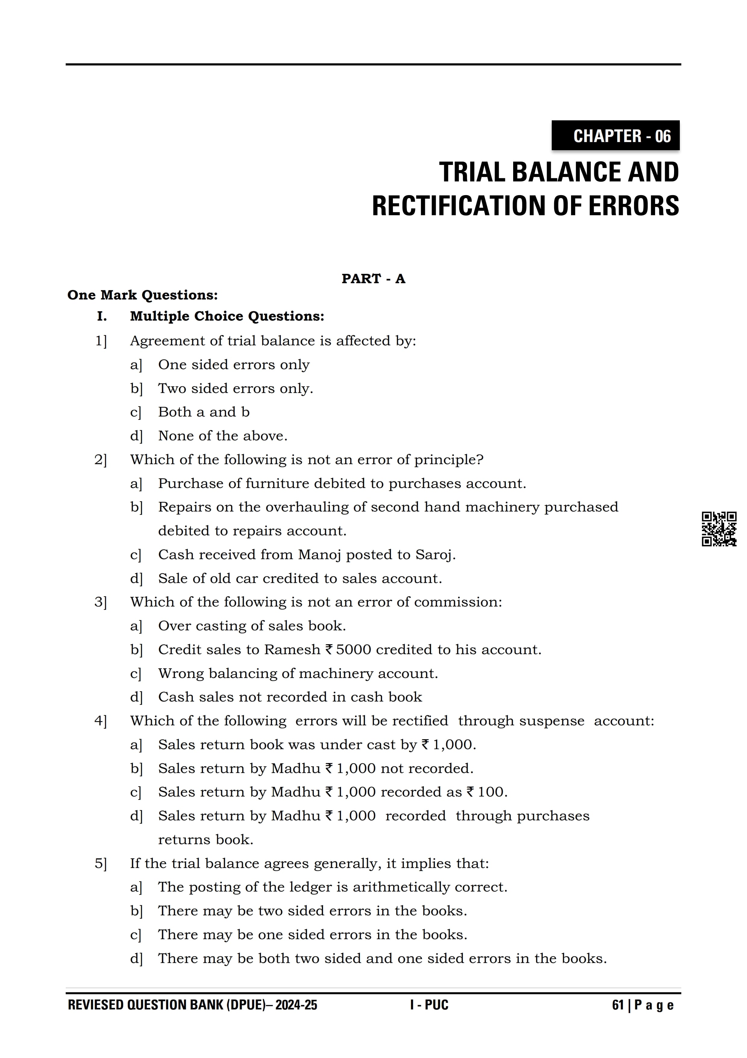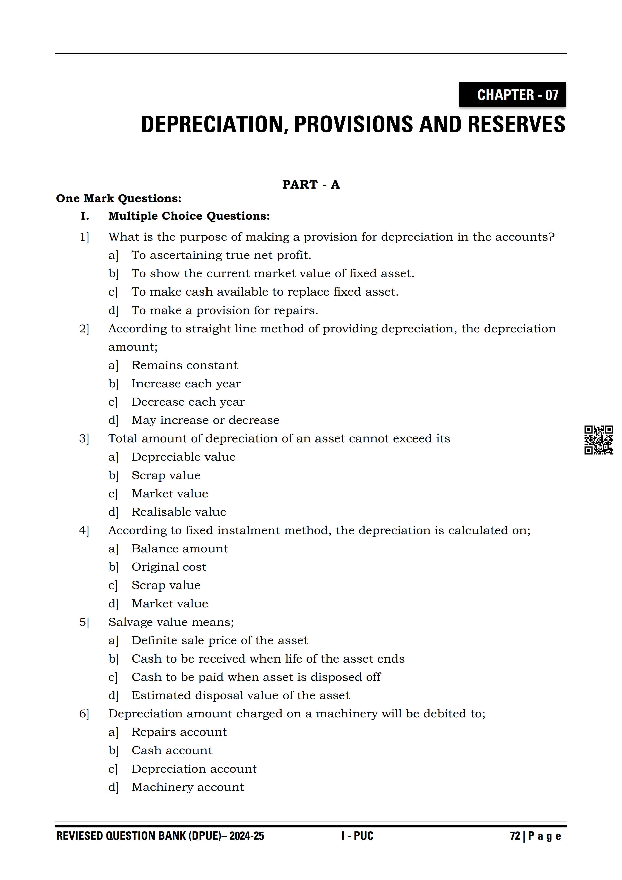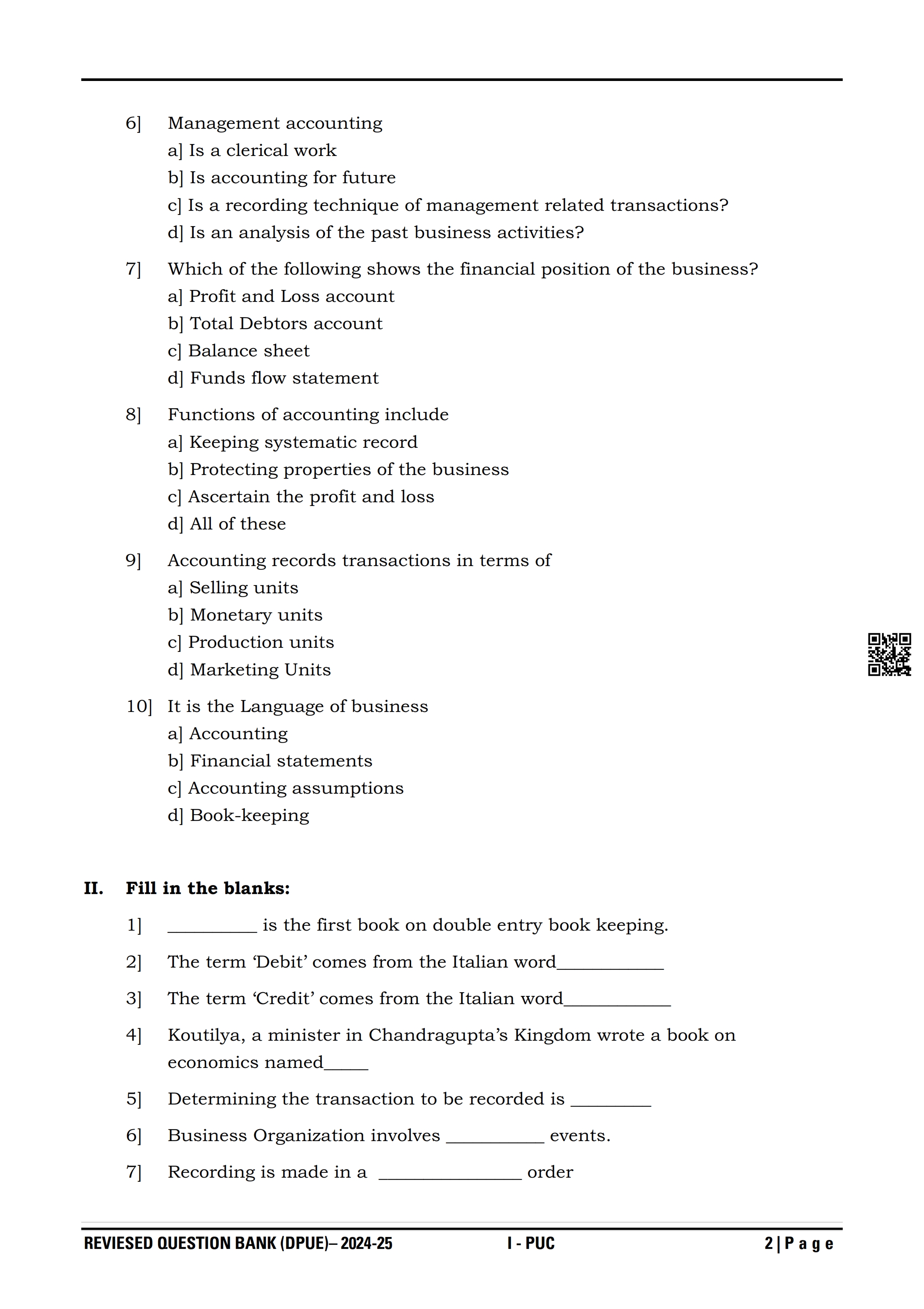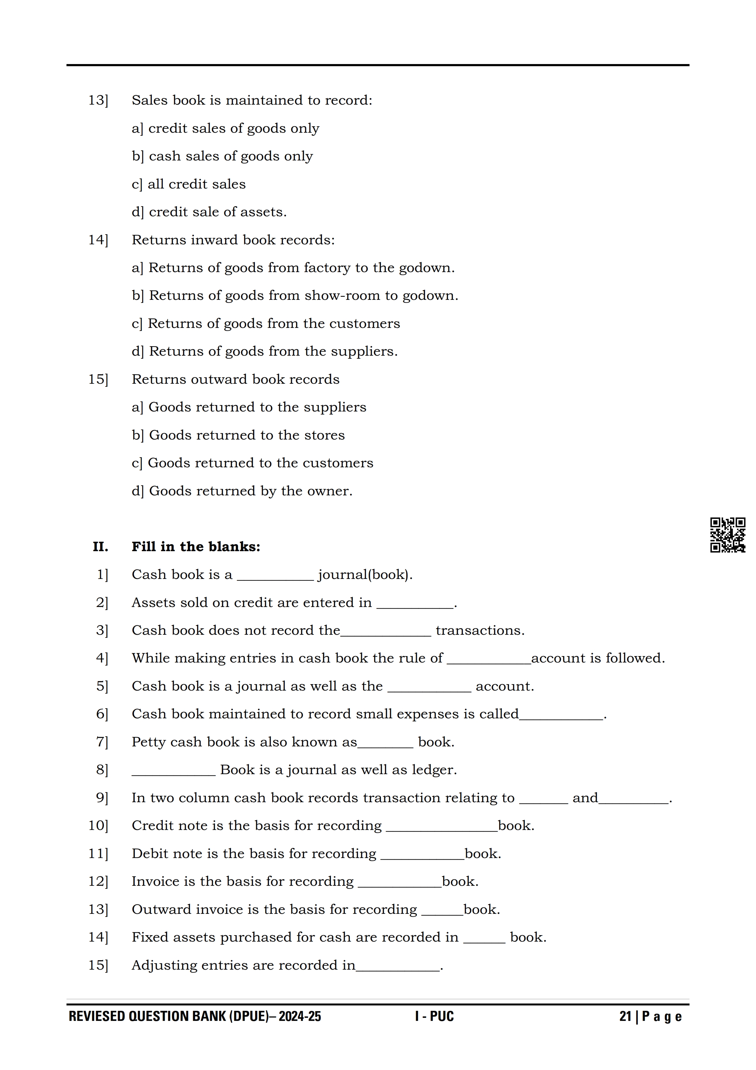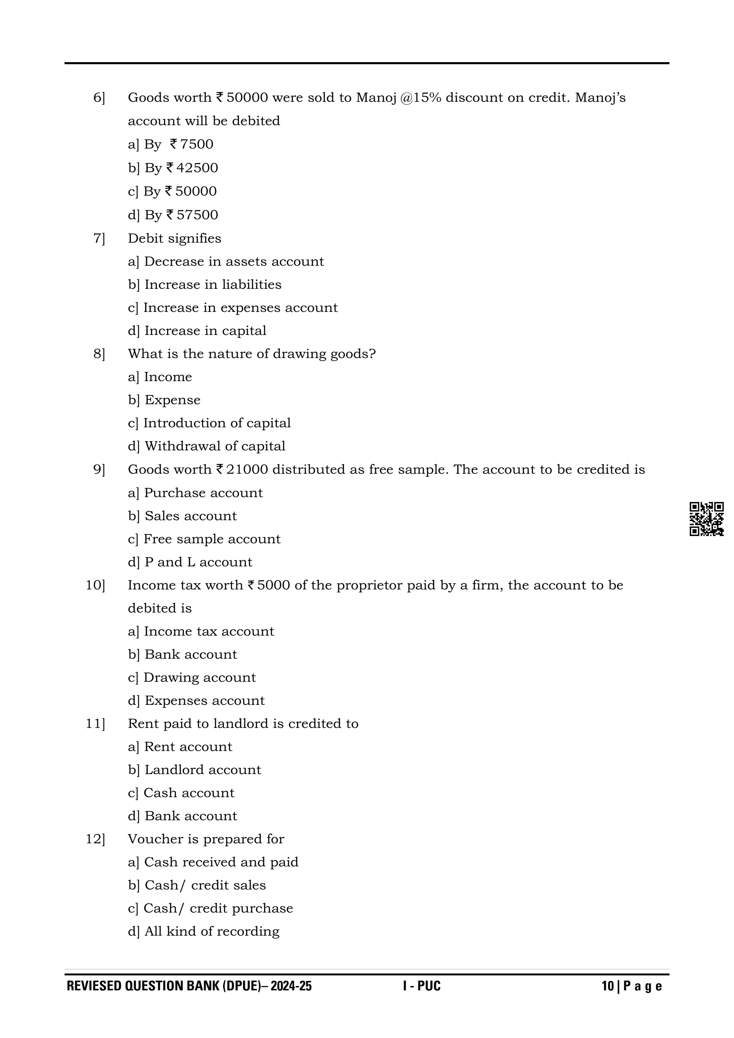Karnataka State Board I PUC Accountancy Question Bank is available for download in PDF format. Simply click the download option to save the file. We recommend that students solve the provided Accountancy question bank to improve their exam scores and plan their preparation strategies effectively.