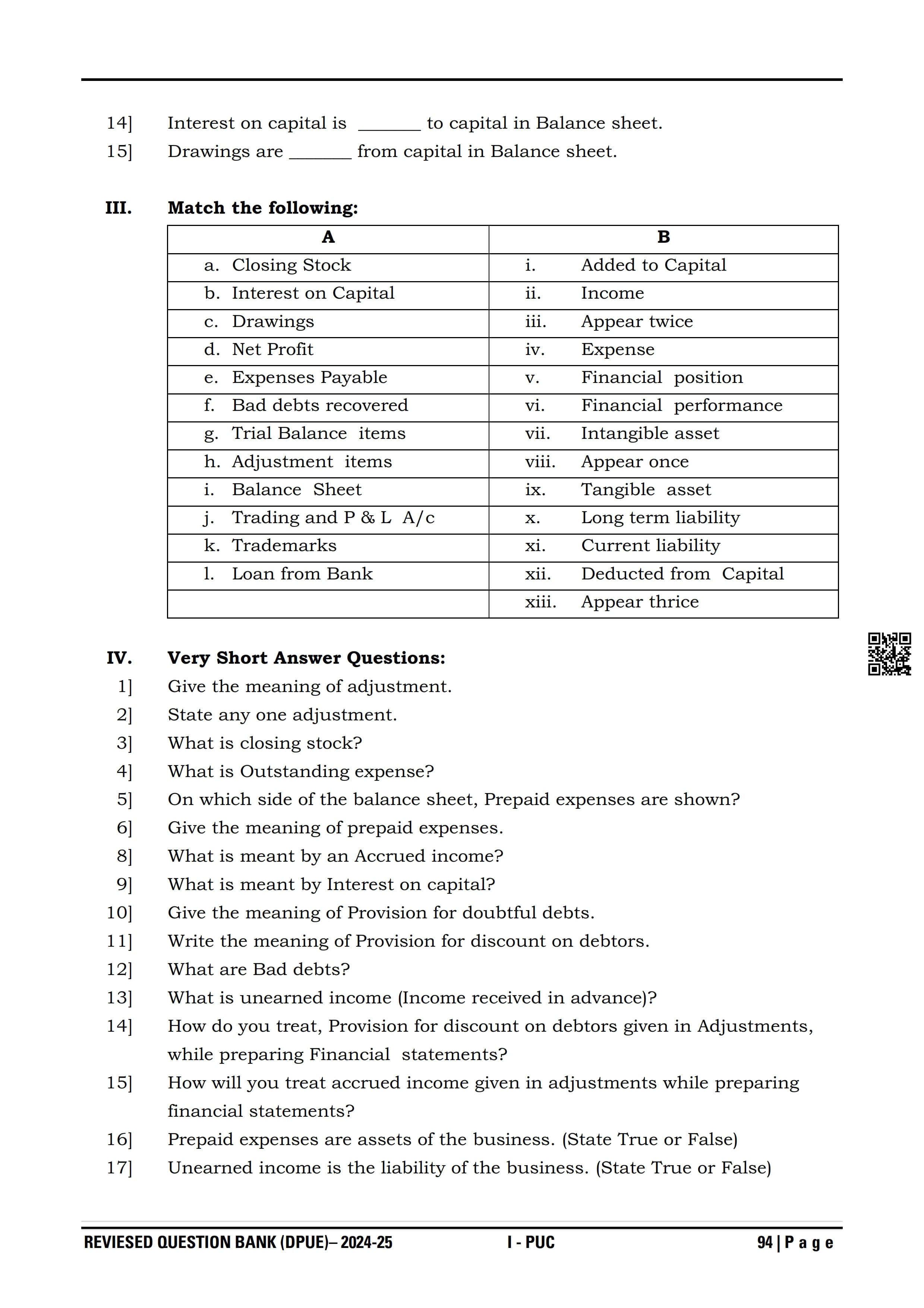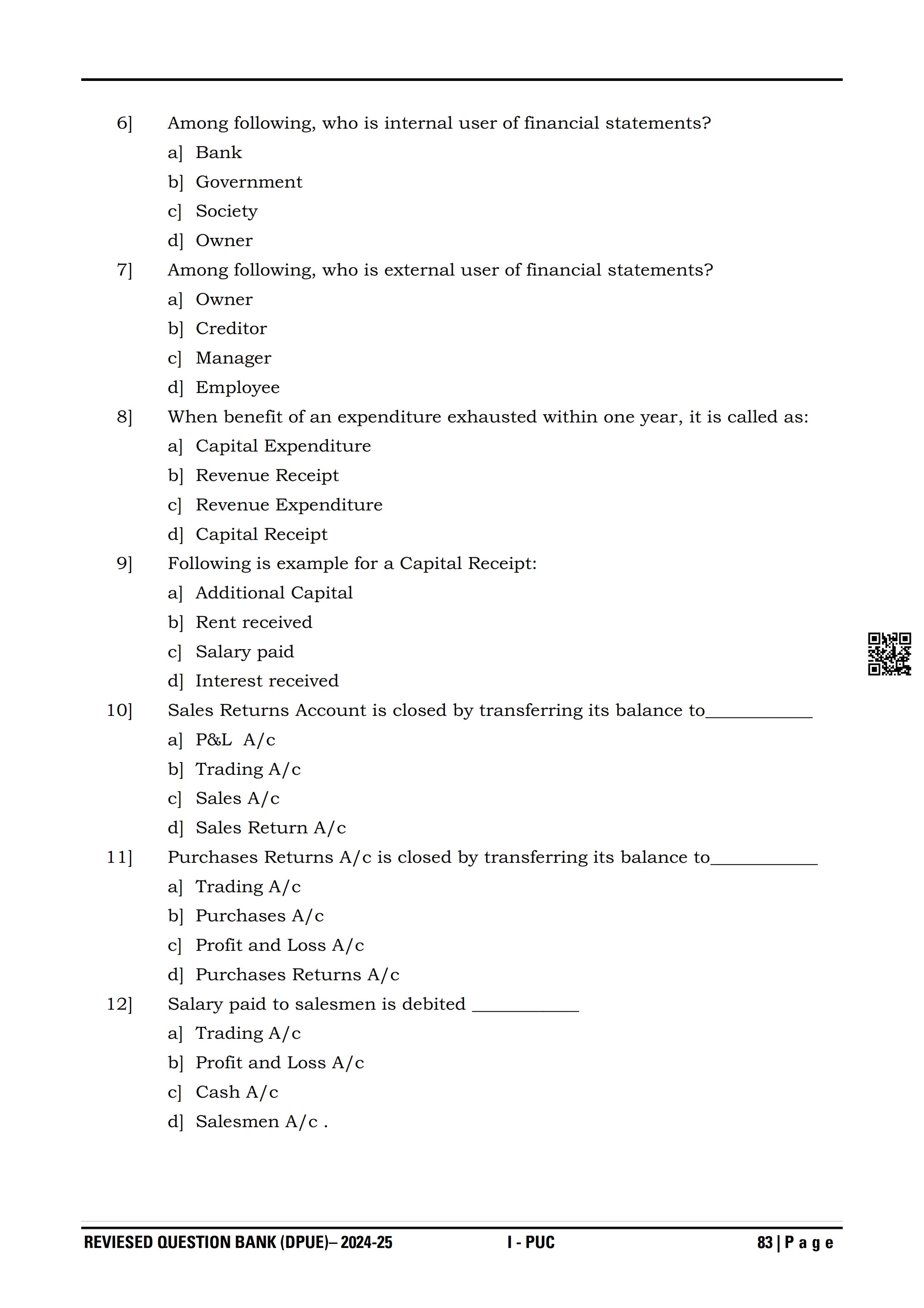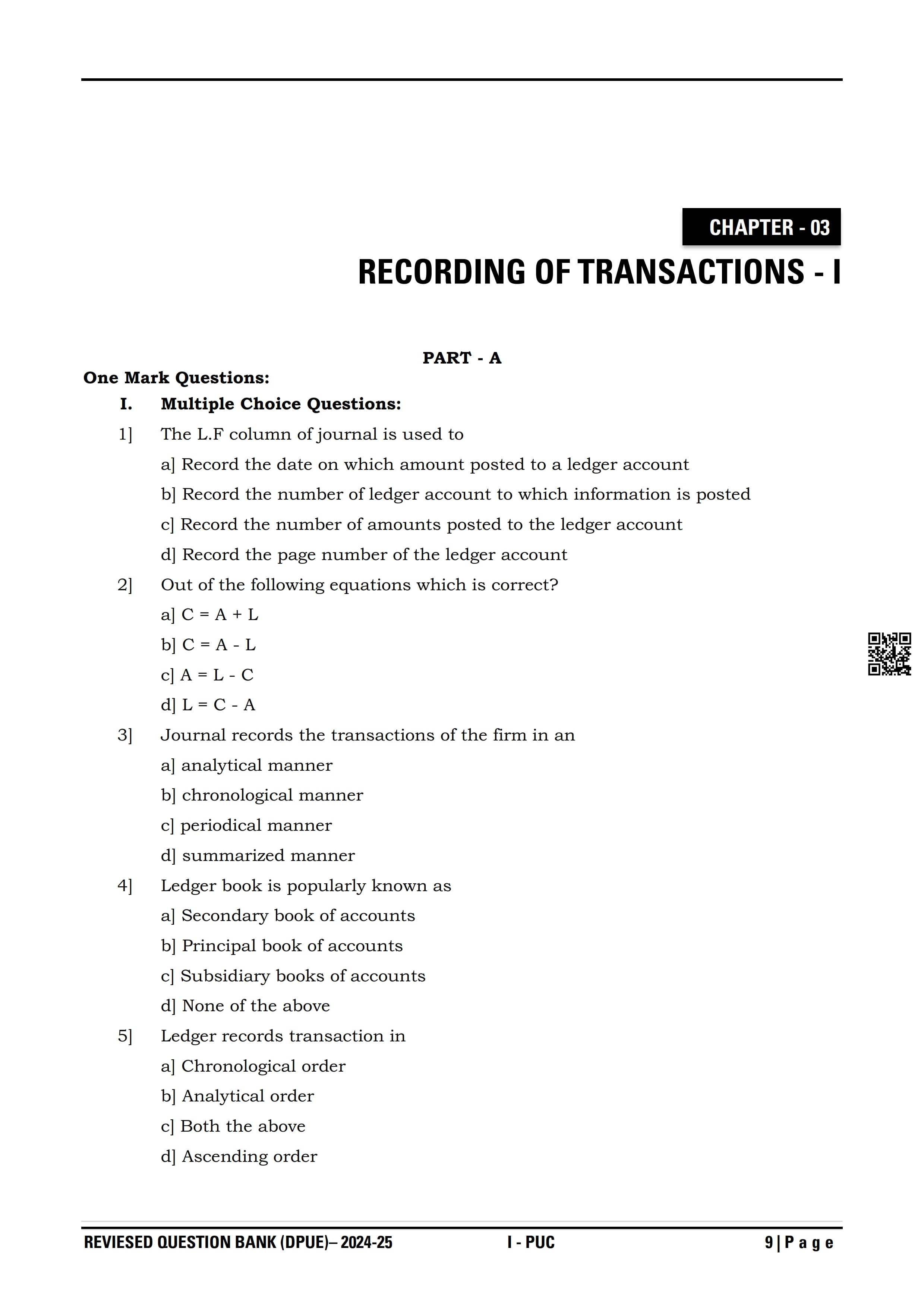 Karnataka 1st PUC Question Bank for Accountancy View Download