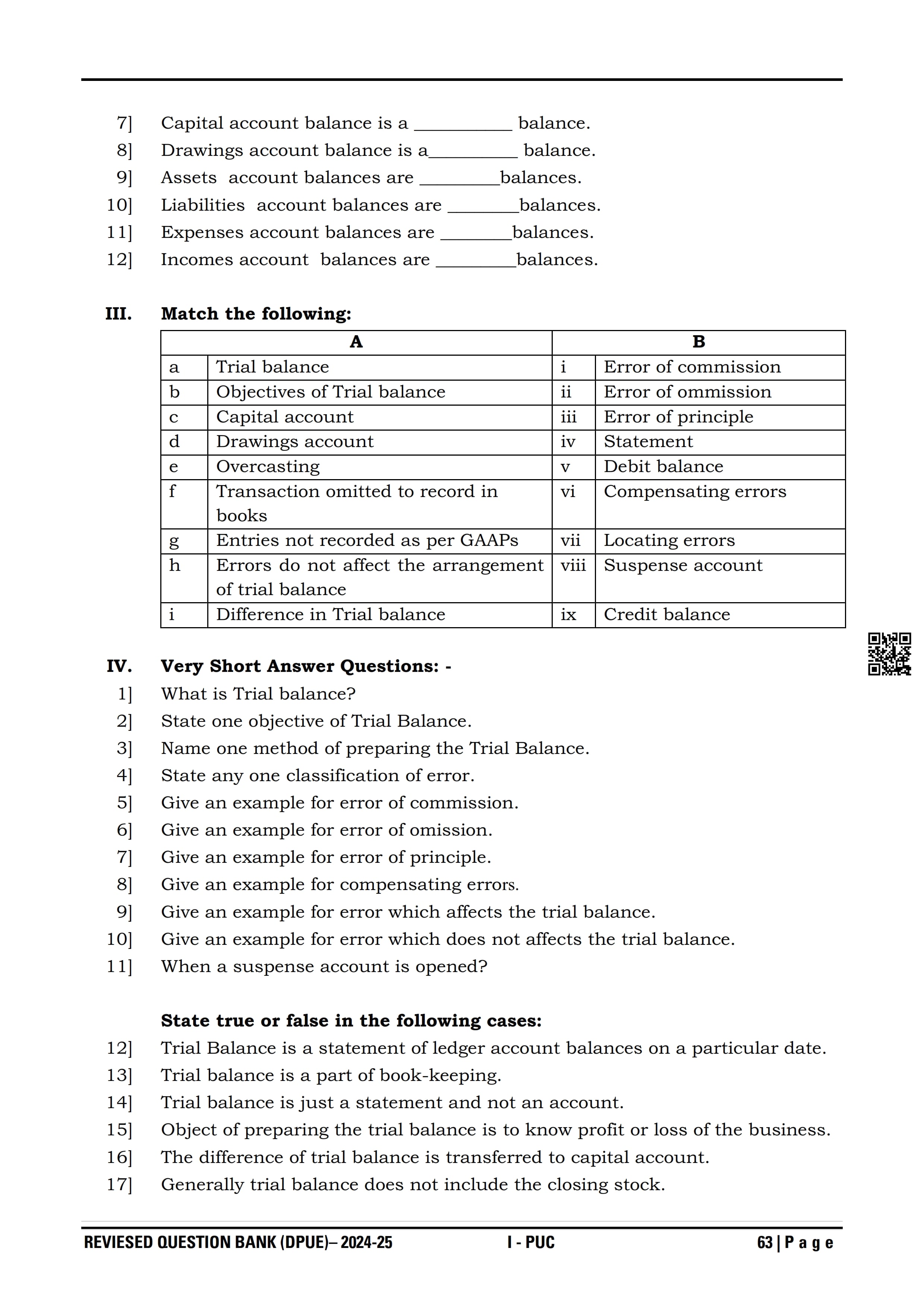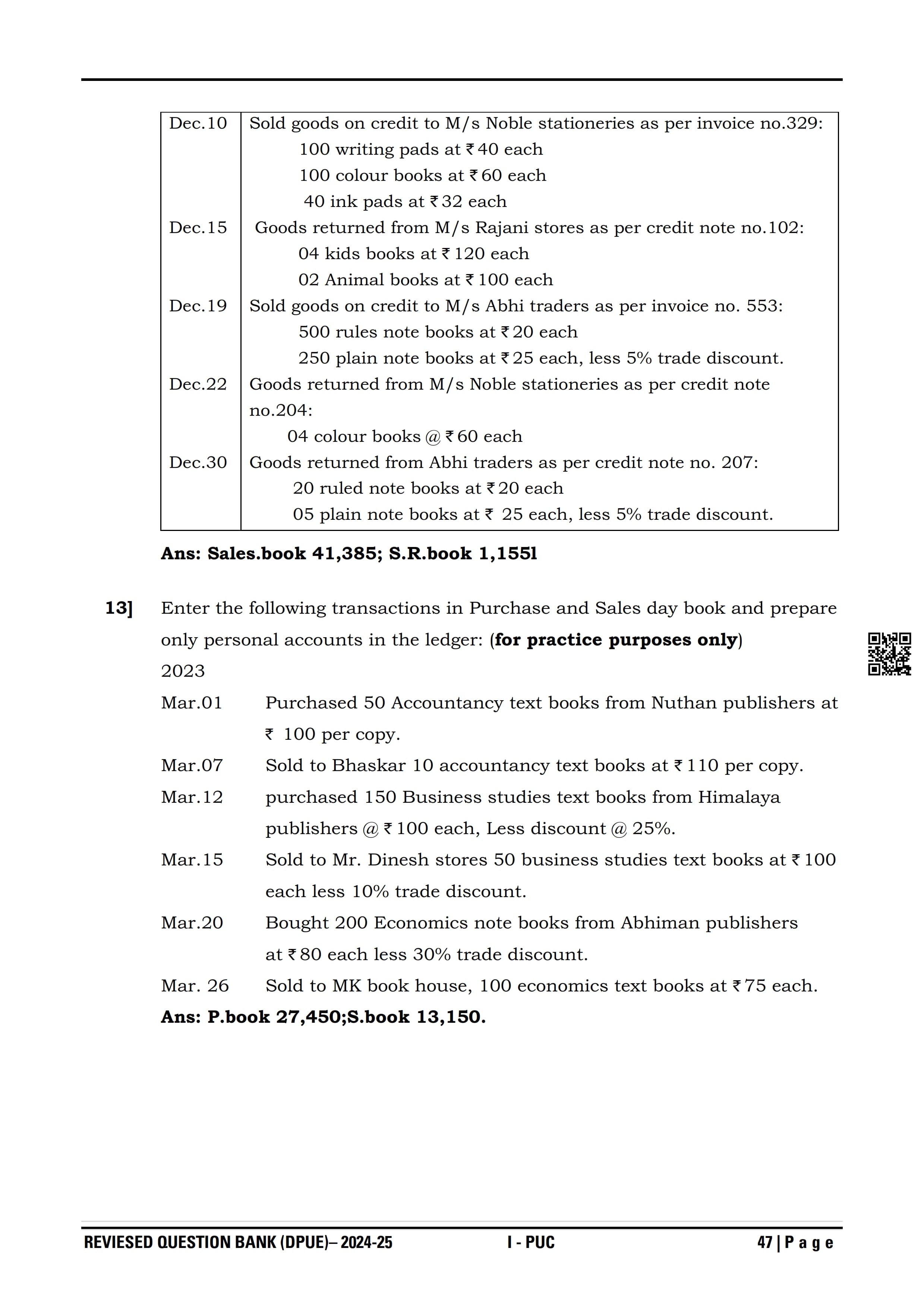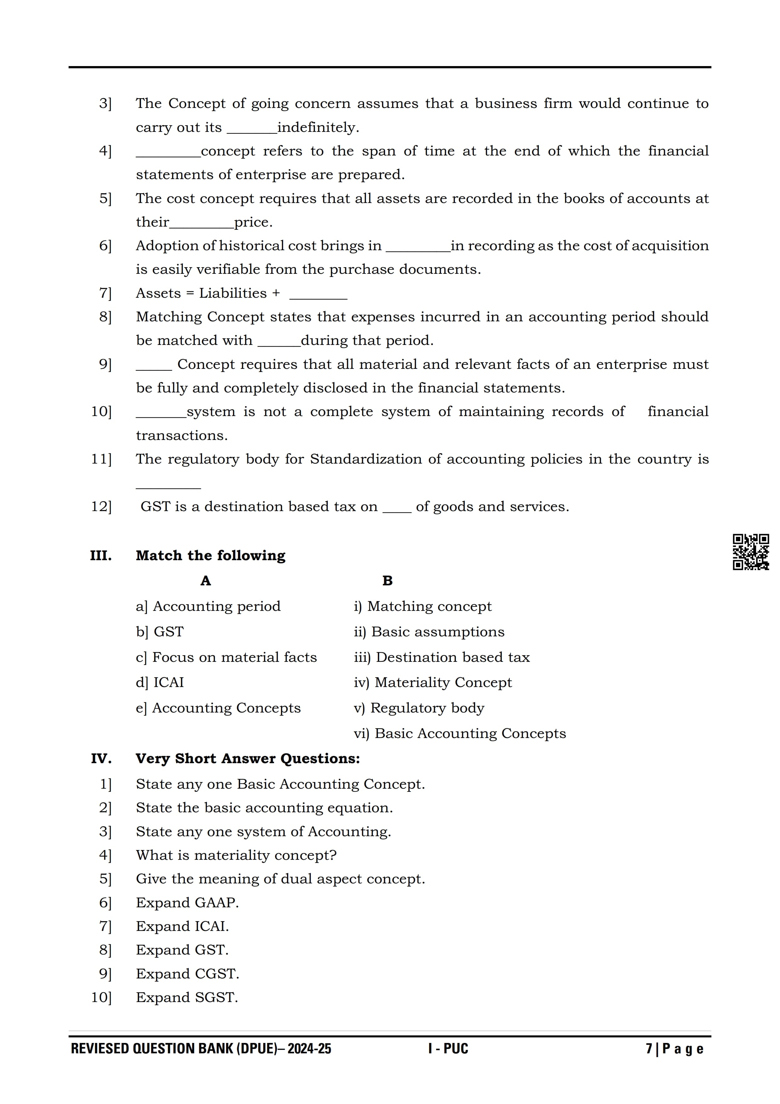 Karnataka 1st PUC Question Bank for Accountancy View Download