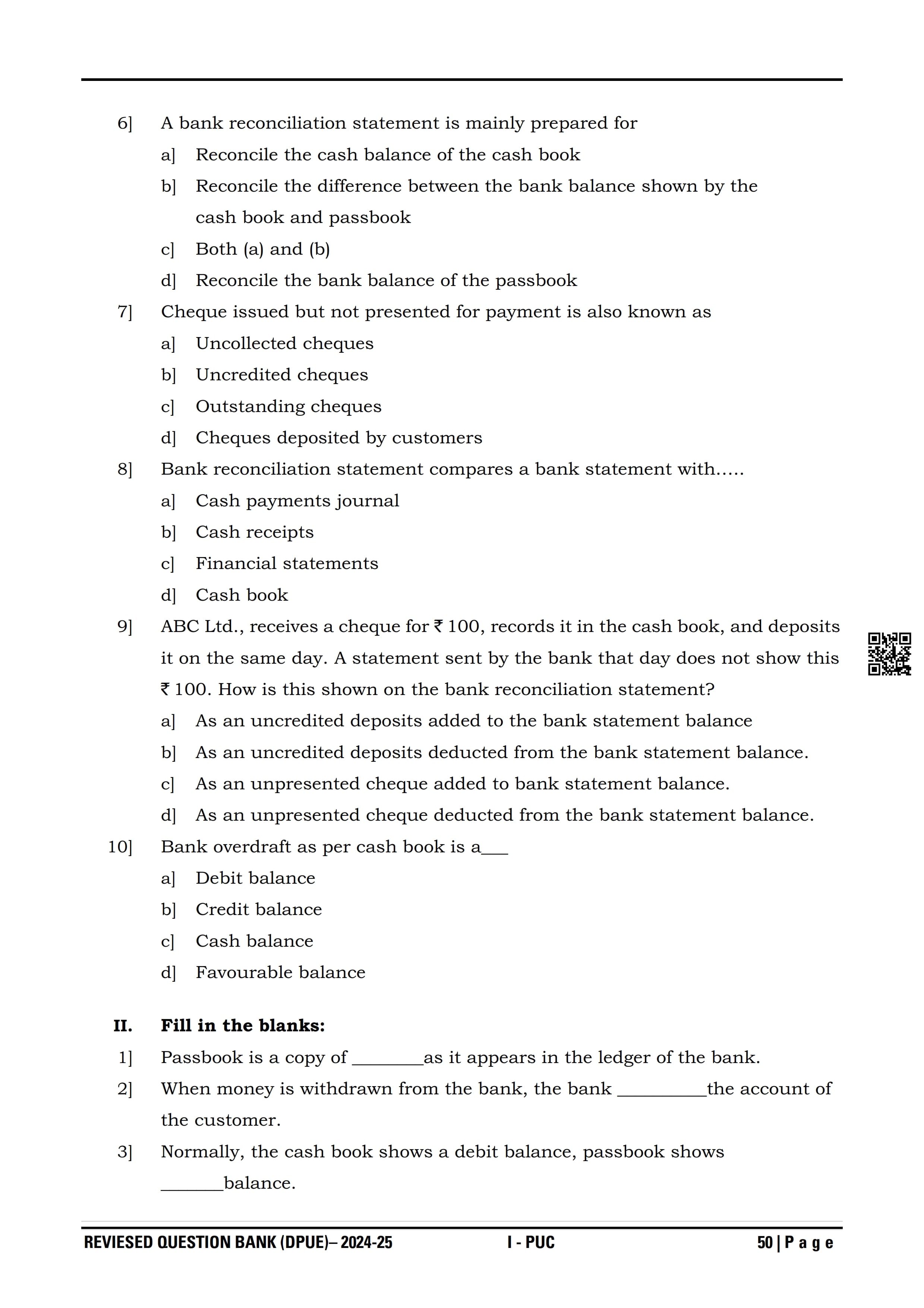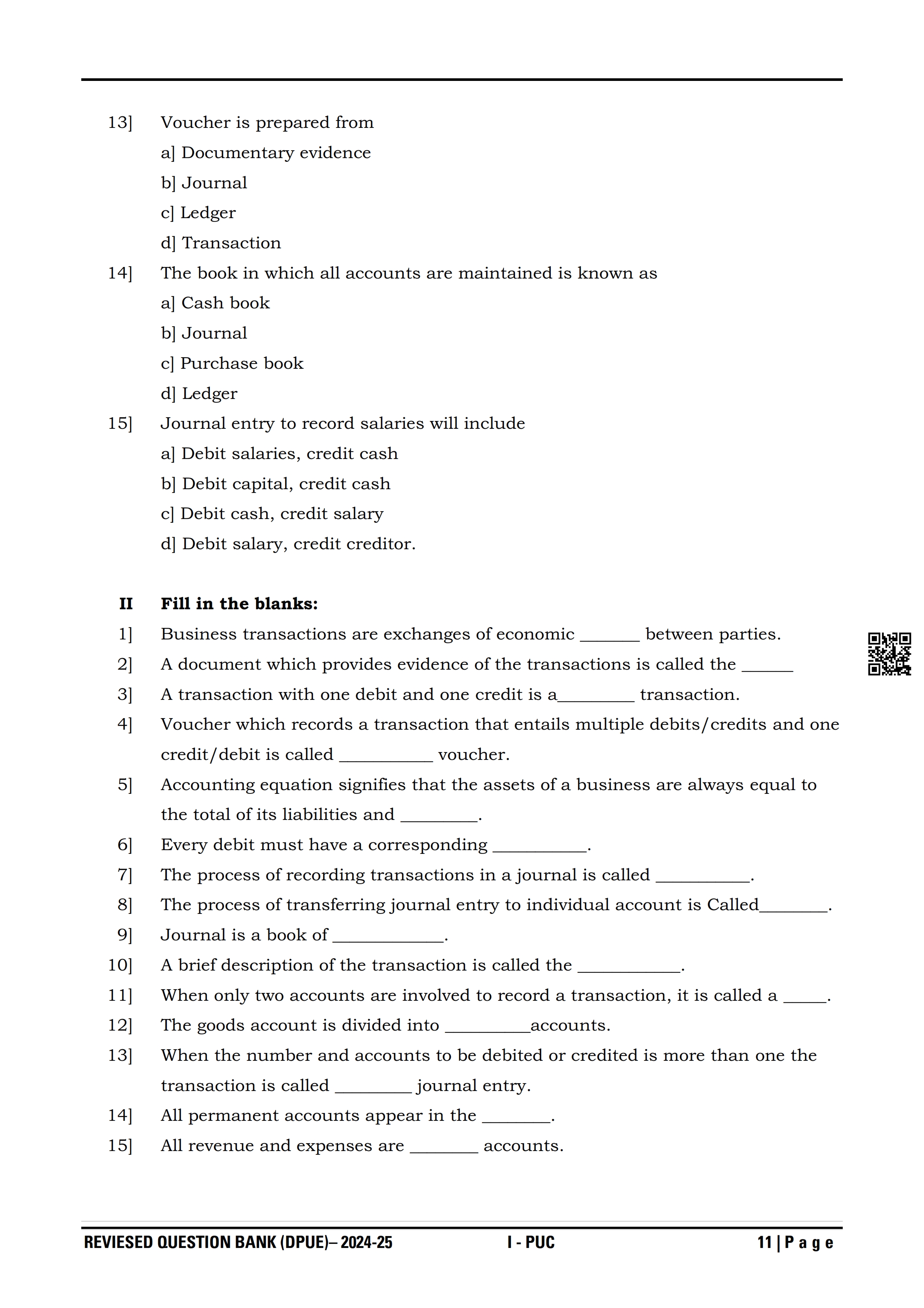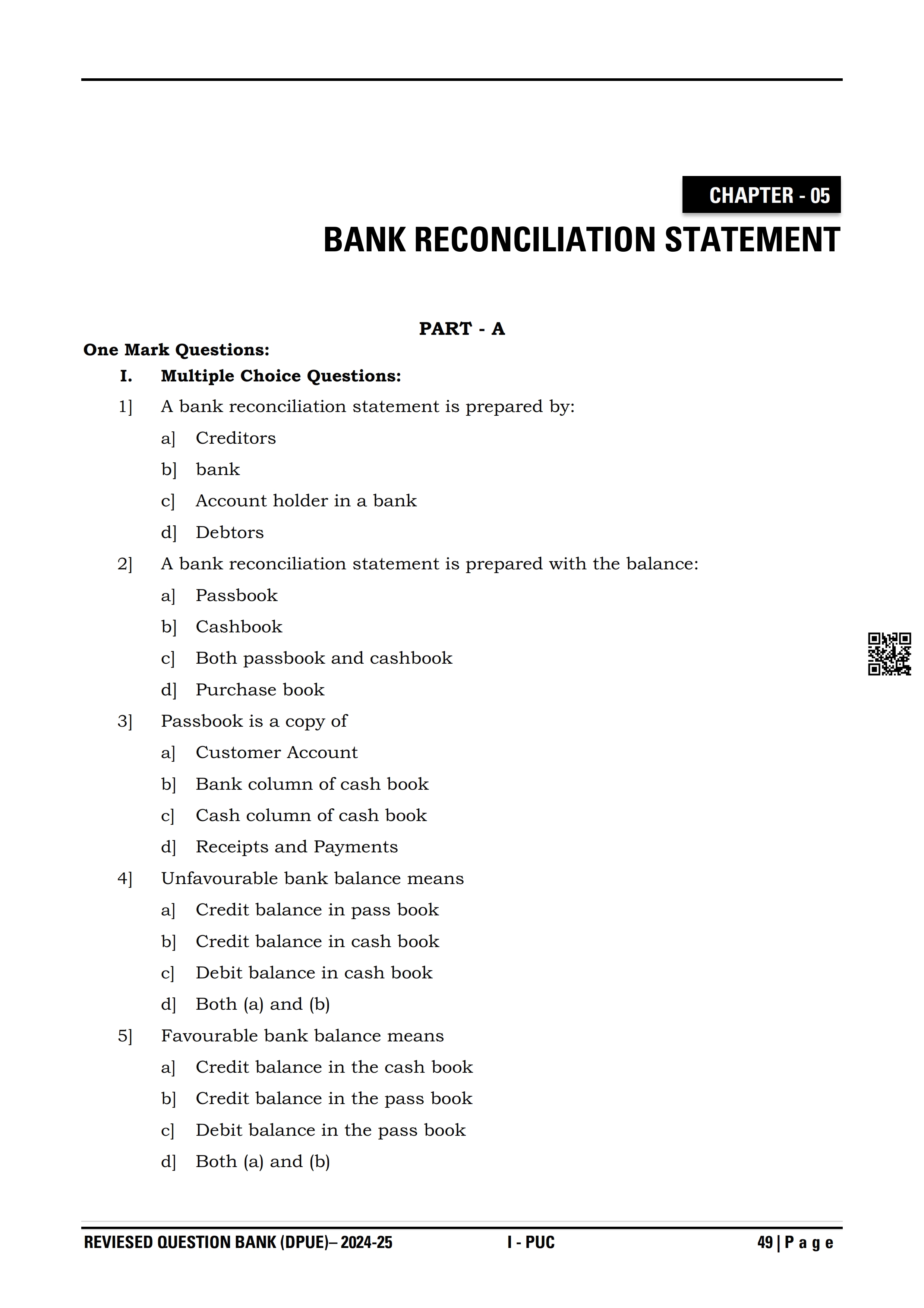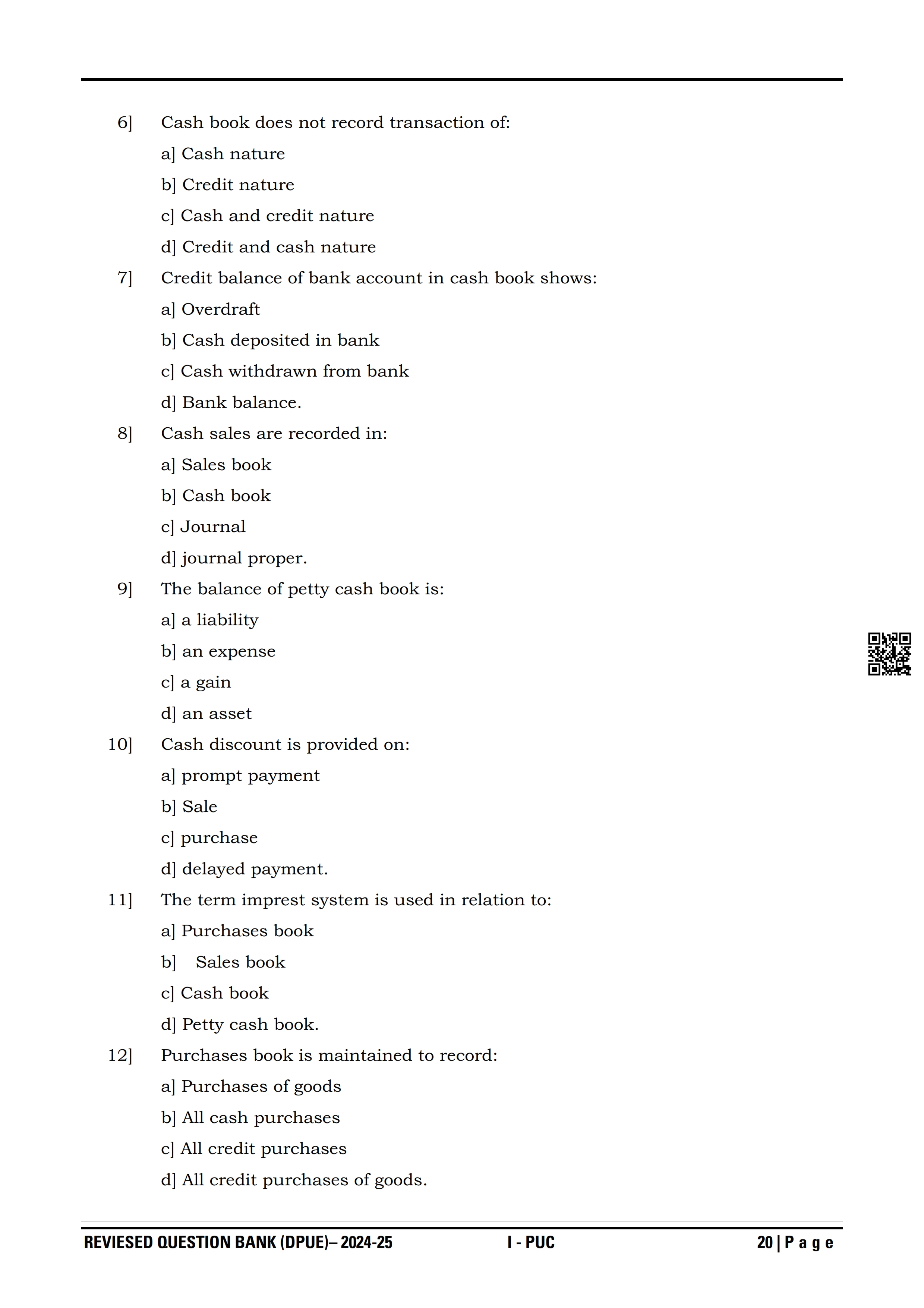 Here are the links for downloading the Accountancy Question Bank. Candidates can utilize these karnataka 11 study resources to assess their current performance levels and identify areas for improvement. This will assist students in recognizing their strengths and weaknesses, contributing to more effective learning.