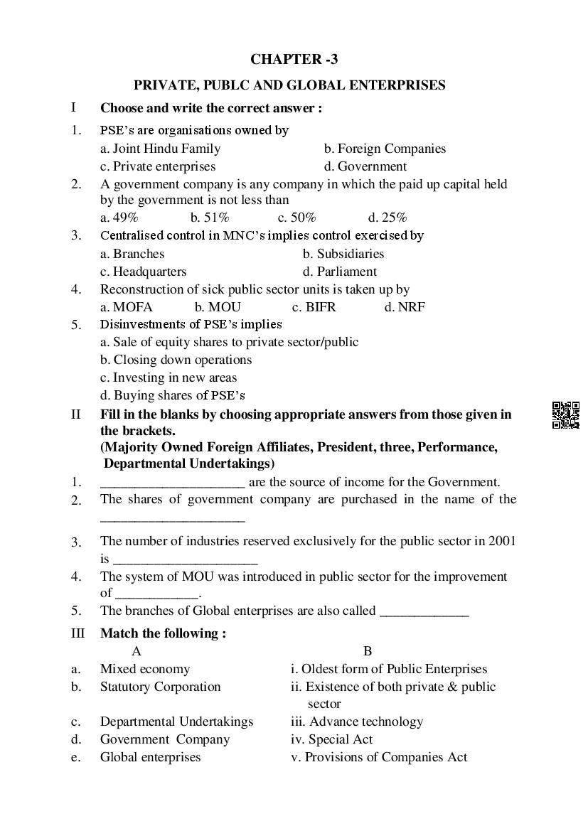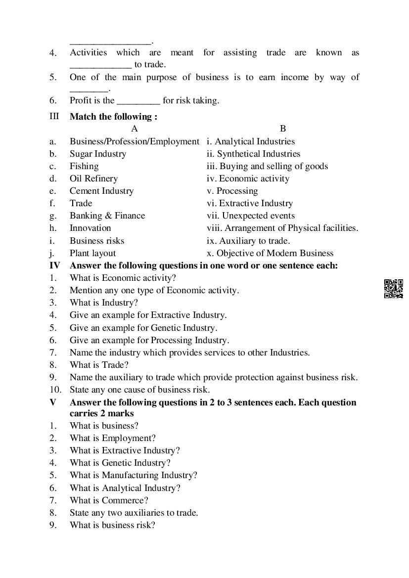 Karnataka 1st PUC Question Bank for Business Studies View Download