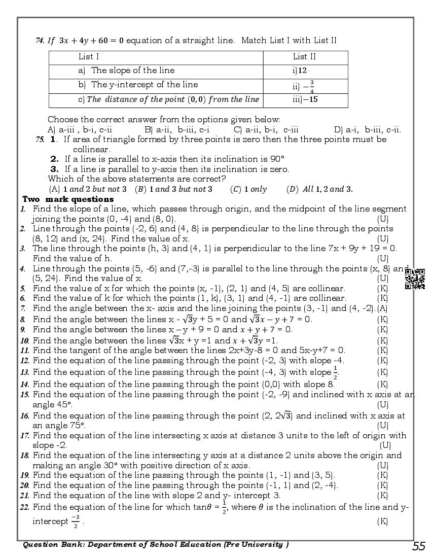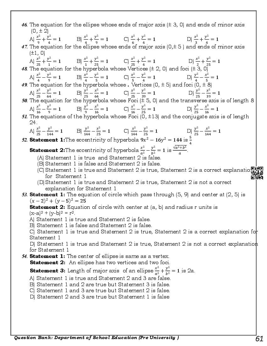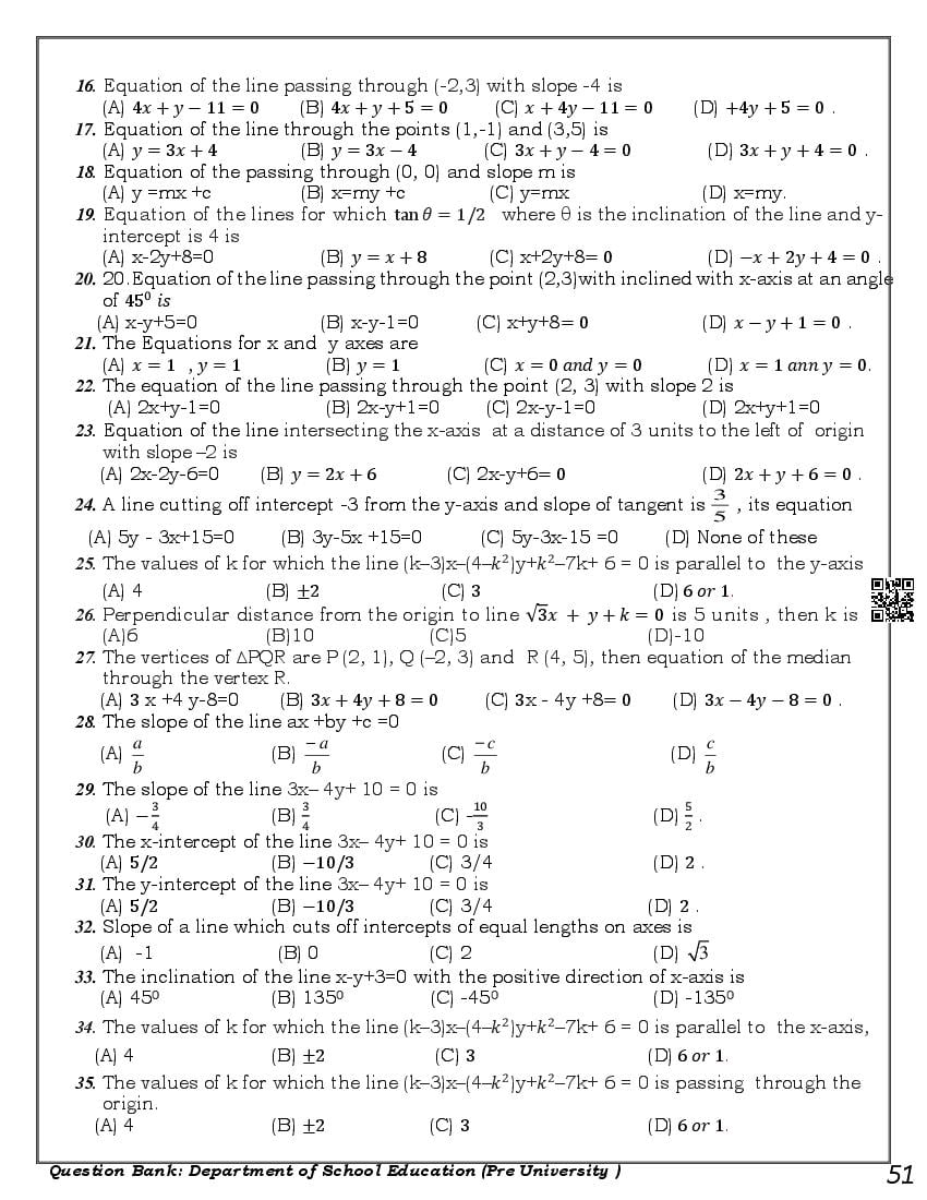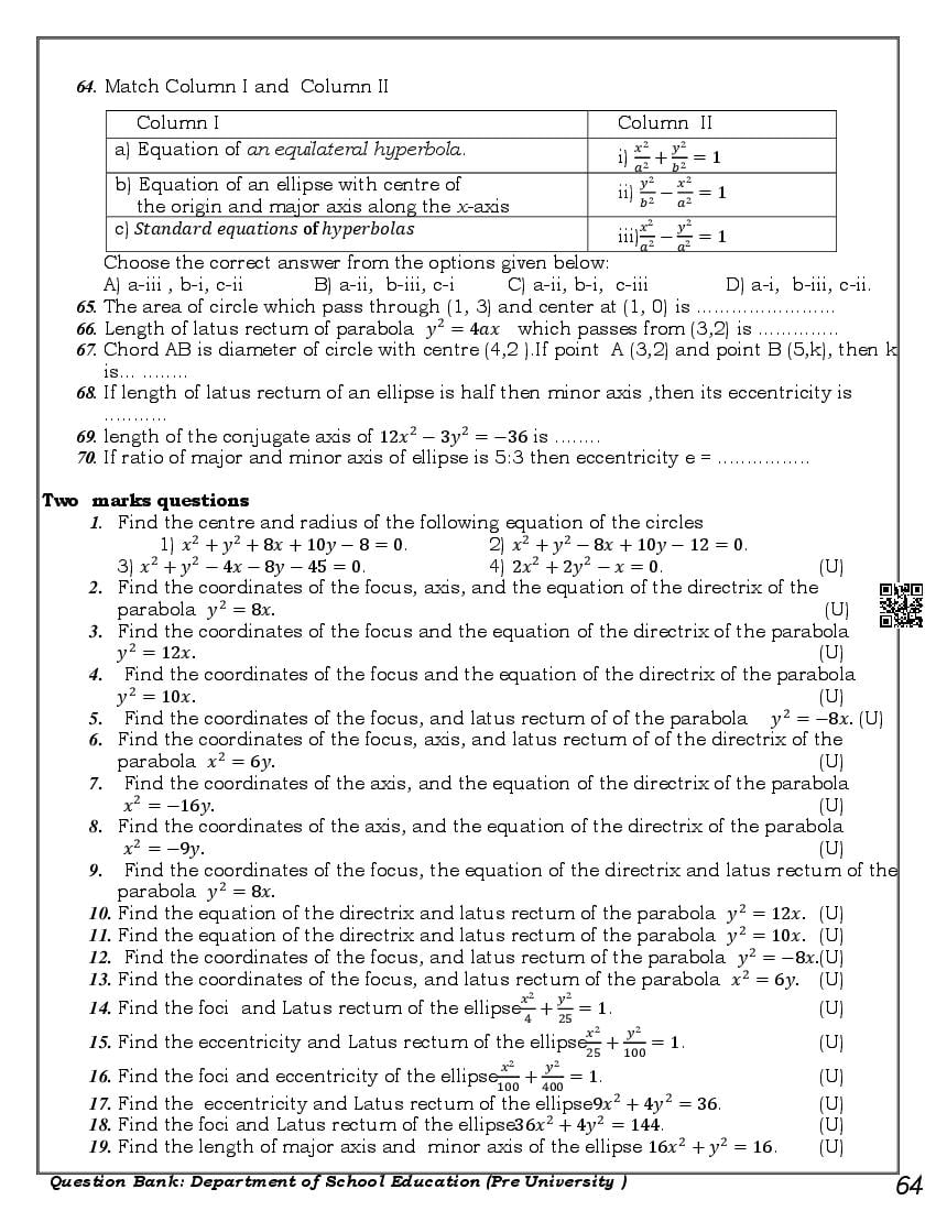 Here are the links for downloading the Maths Question Bank. Candidates can utilize these karnataka 11 study resources to assess their current performance levels and identify areas for improvement. This will assist students in recognizing their strengths and weaknesses, contributing to more effective learning.
