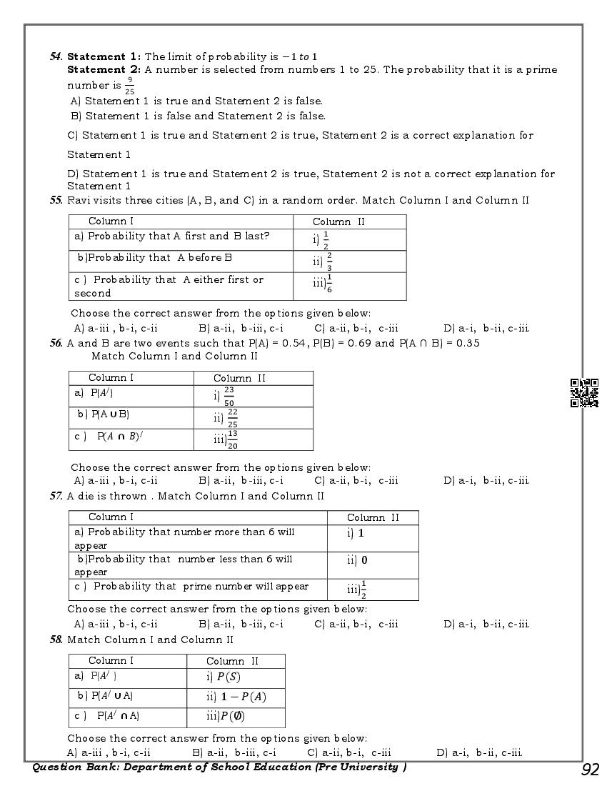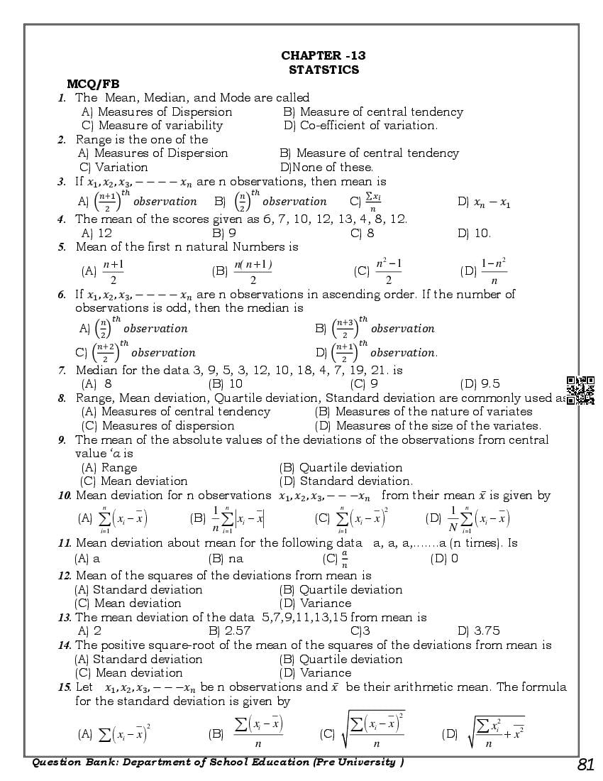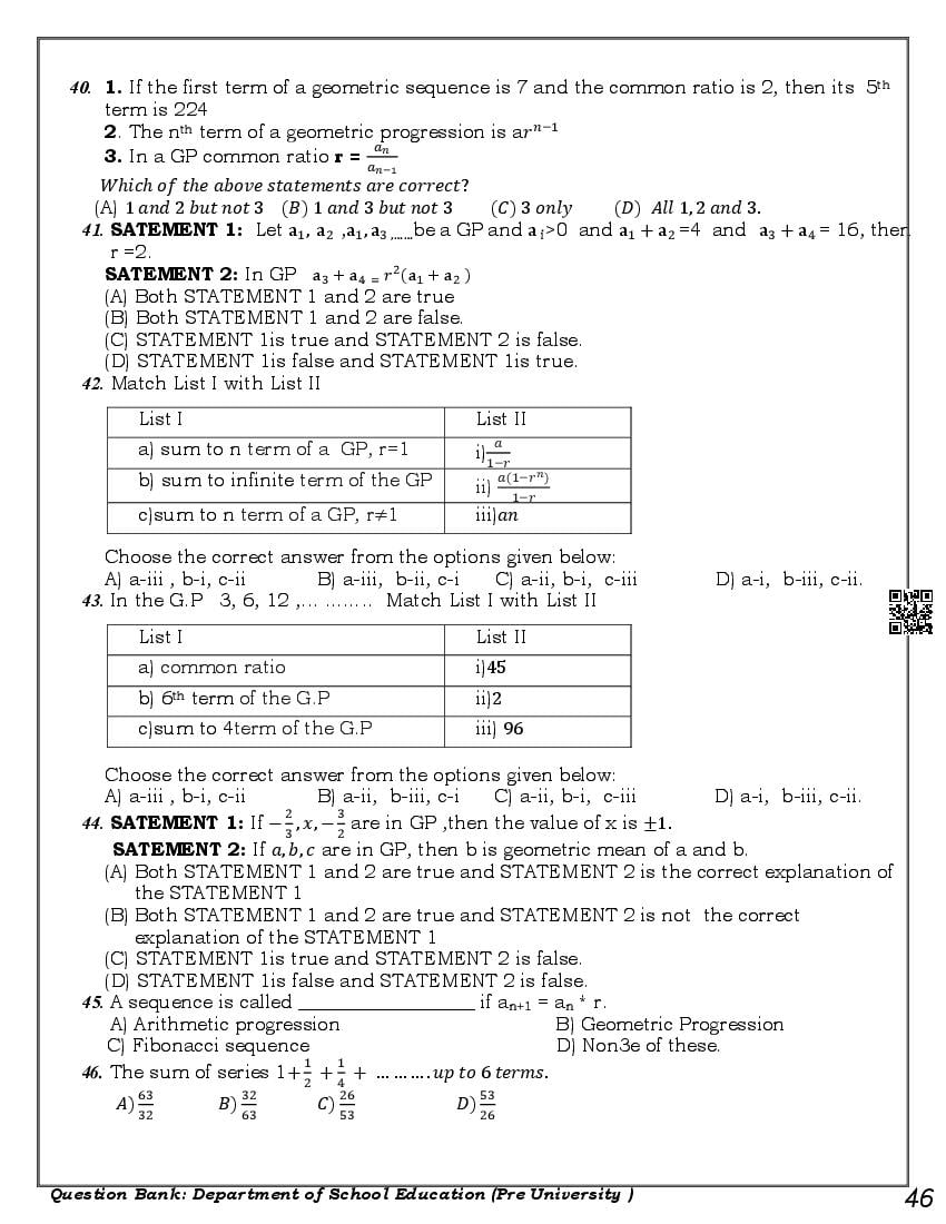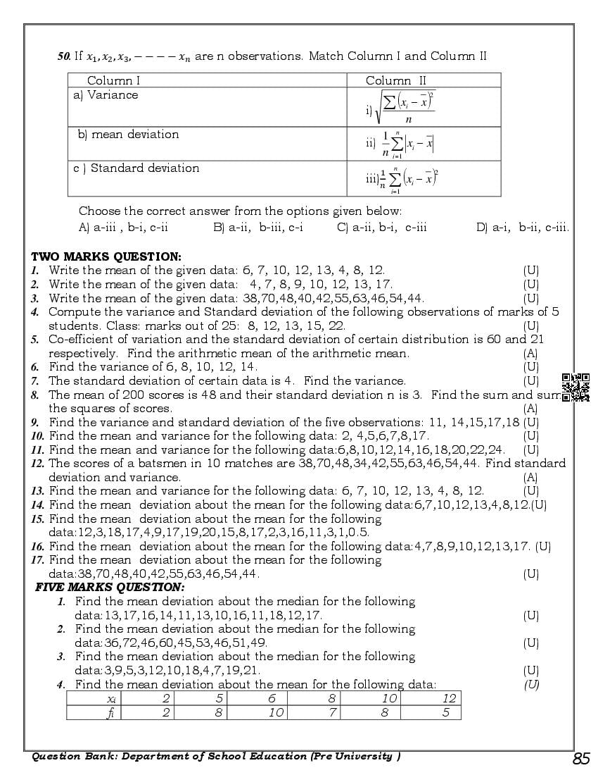 Here are the links for downloading the Maths Question Bank. Candidates can utilize these karnataka 11 study resources to assess their current performance levels and identify areas for improvement. This will assist students in recognizing their strengths and weaknesses, contributing to more effective learning.