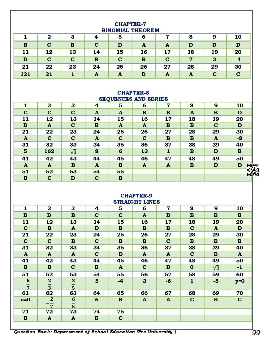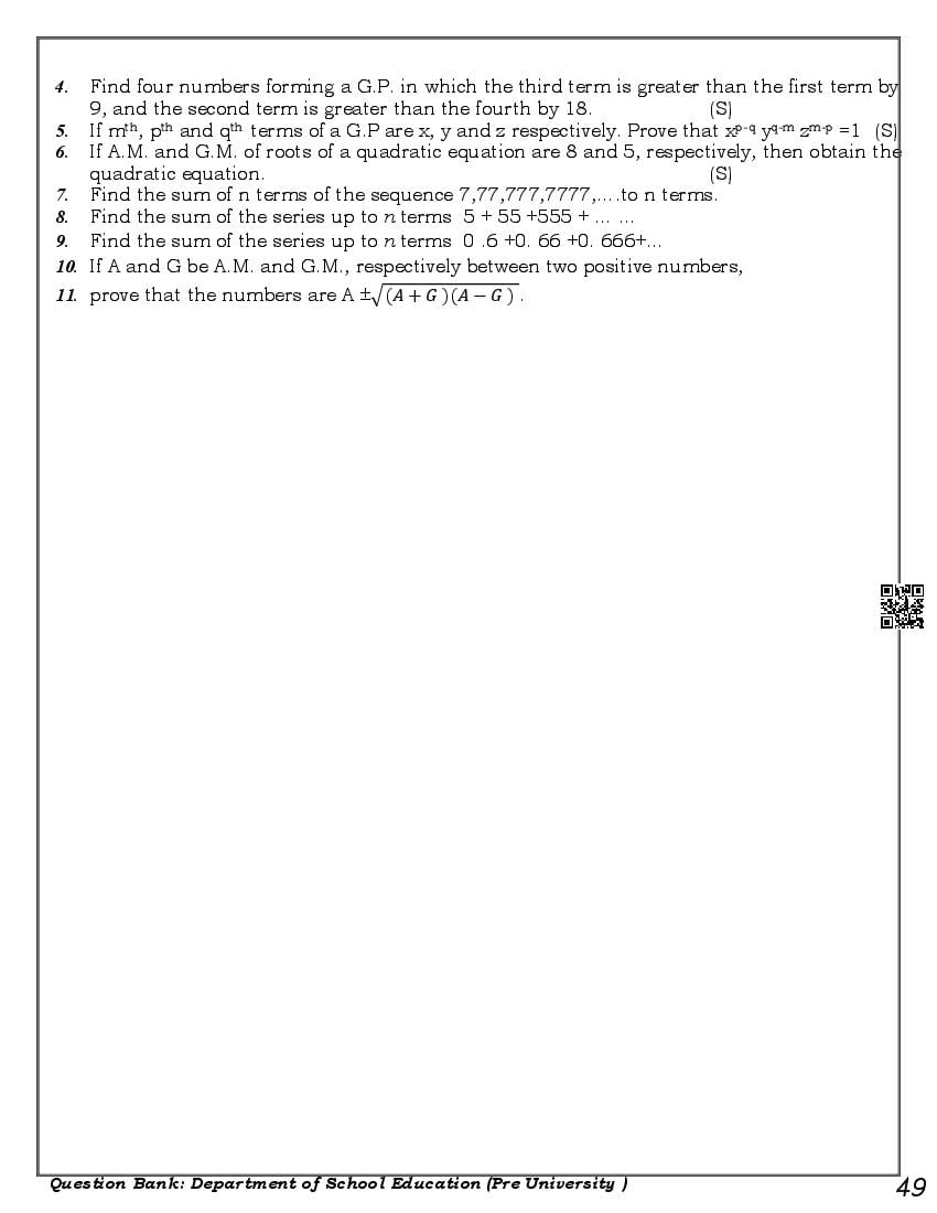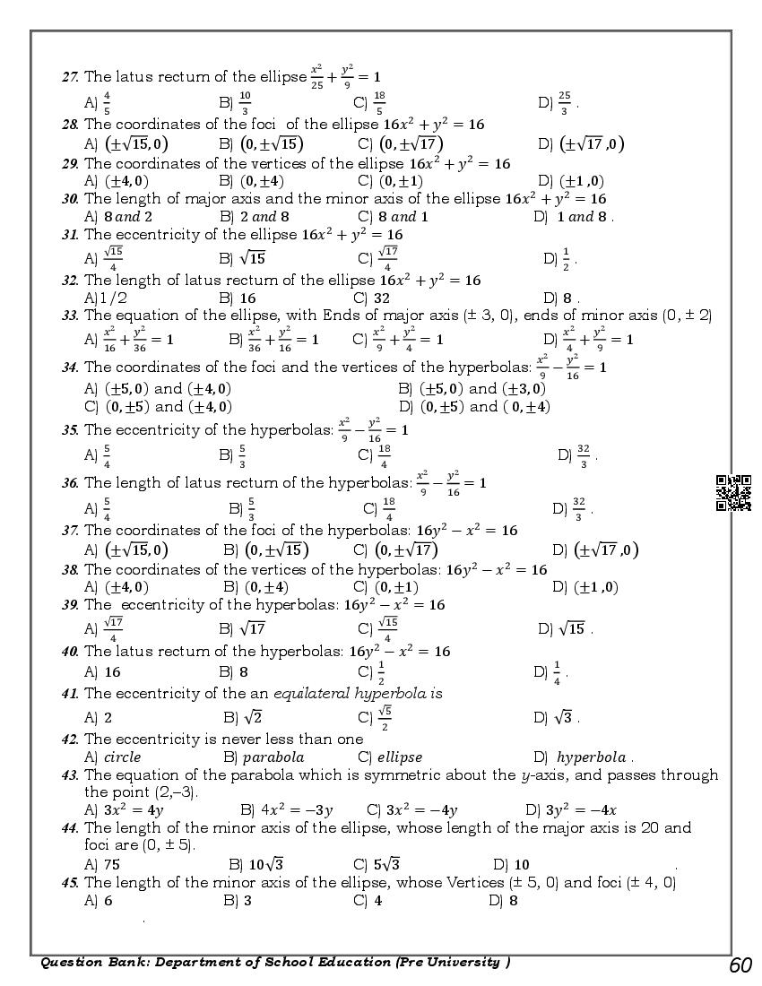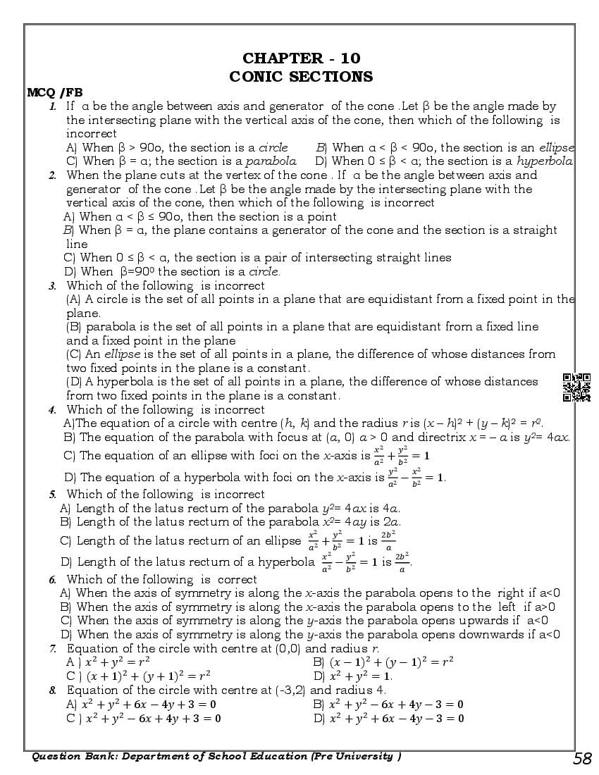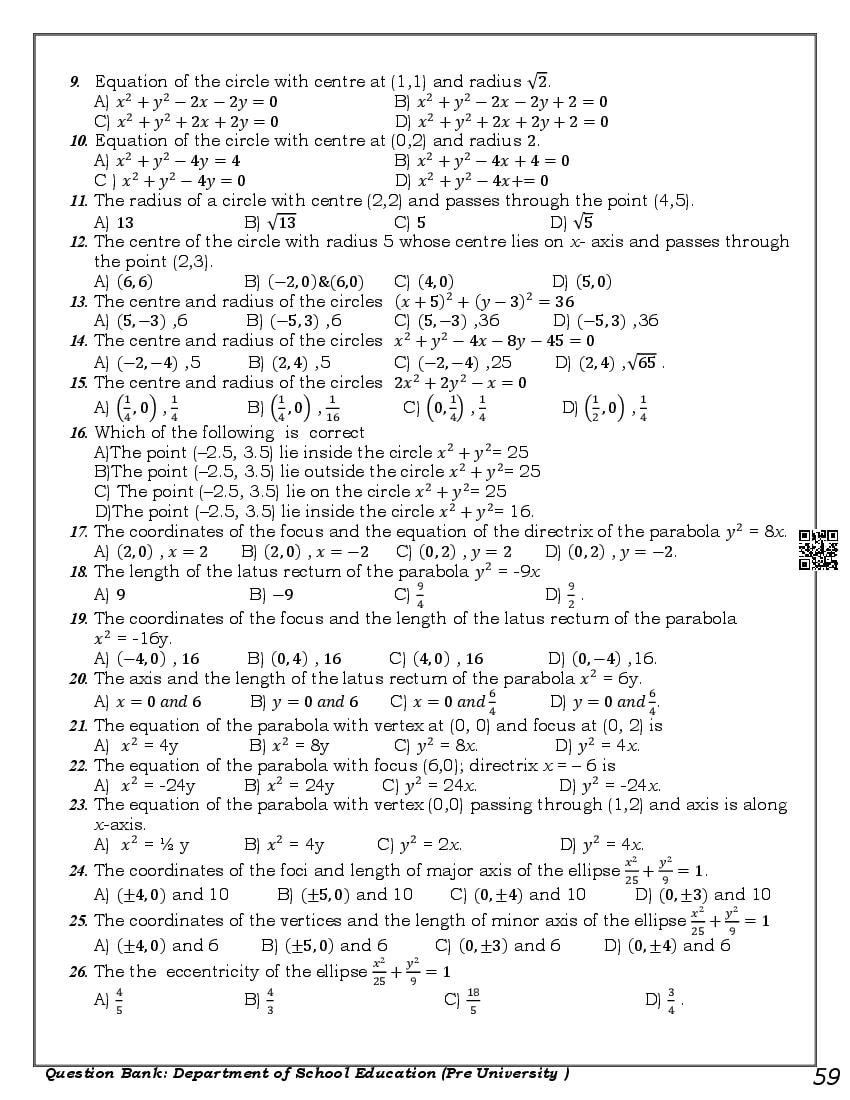 Karnataka 1st PUC Question Bank for Maths View Download