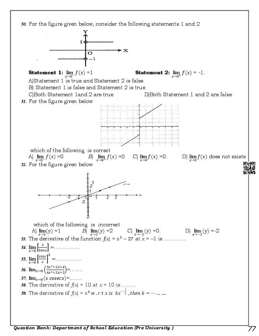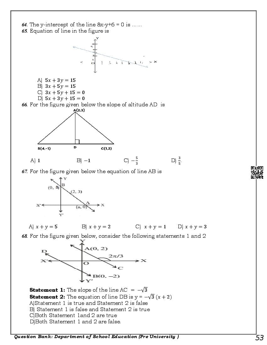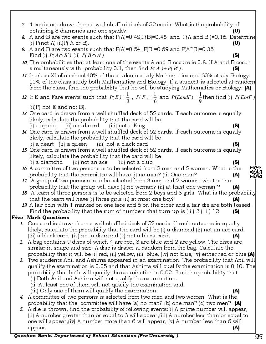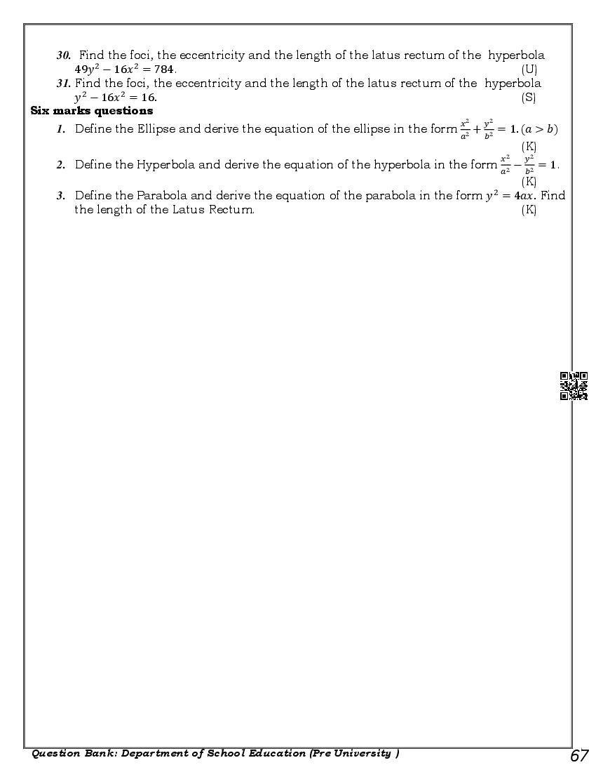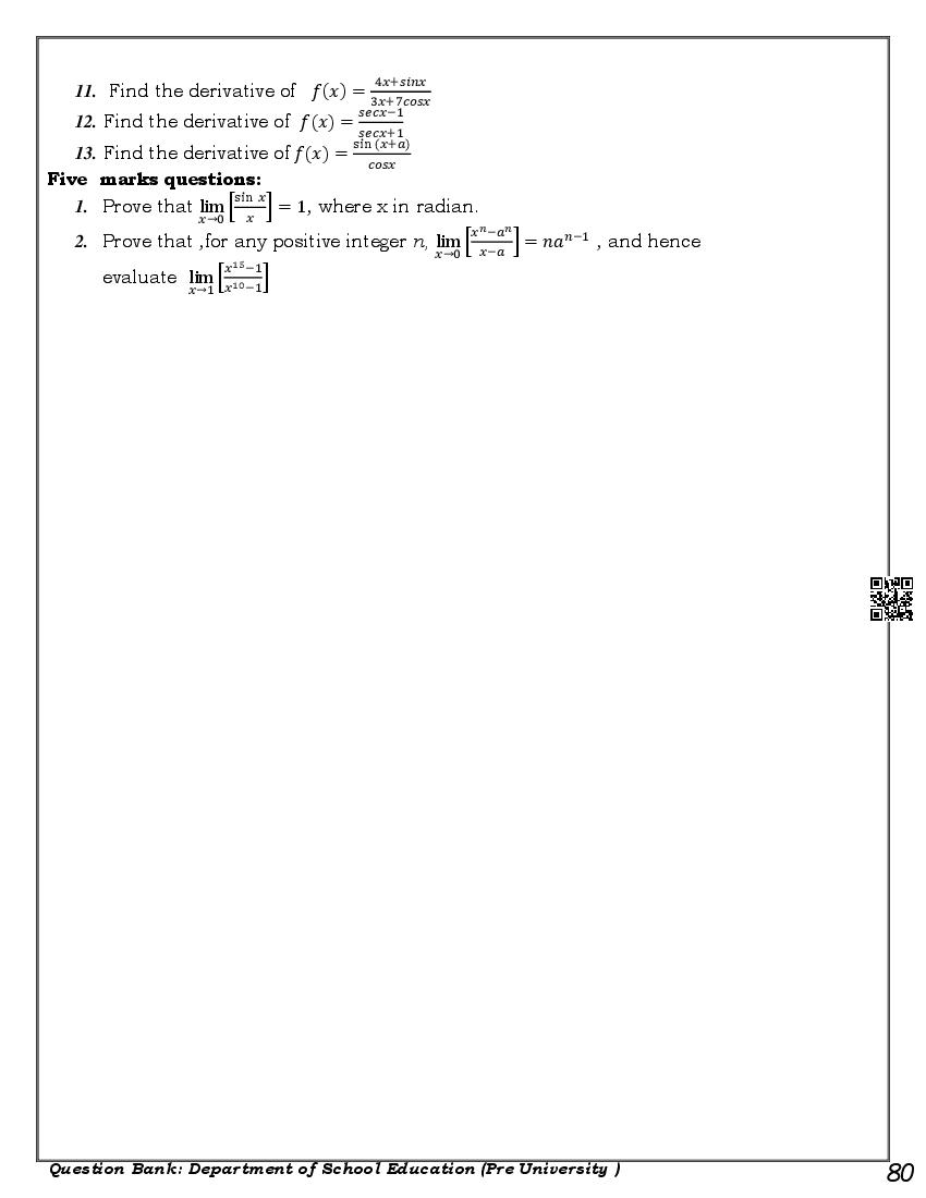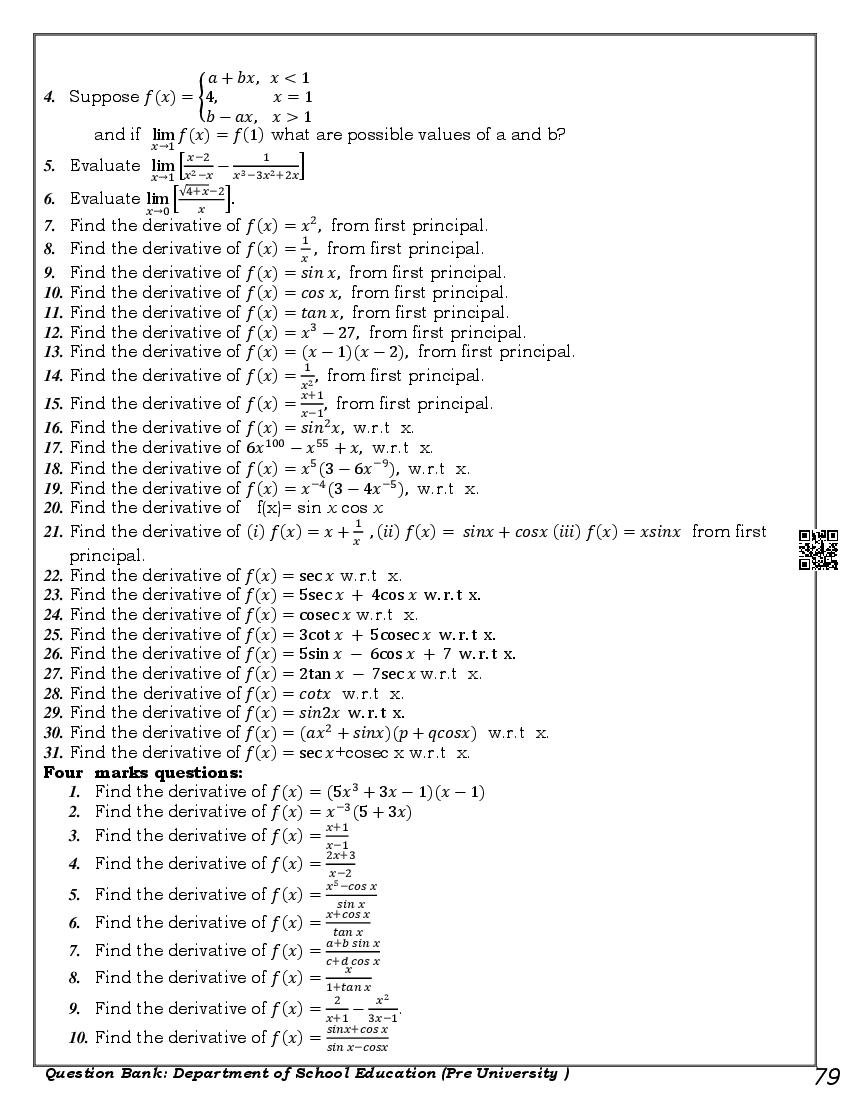 Karnataka 1st PUC Question Bank for Maths View Download