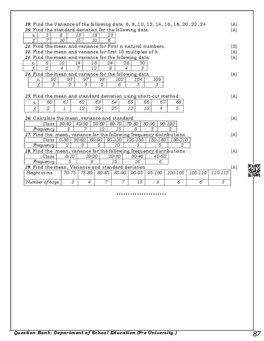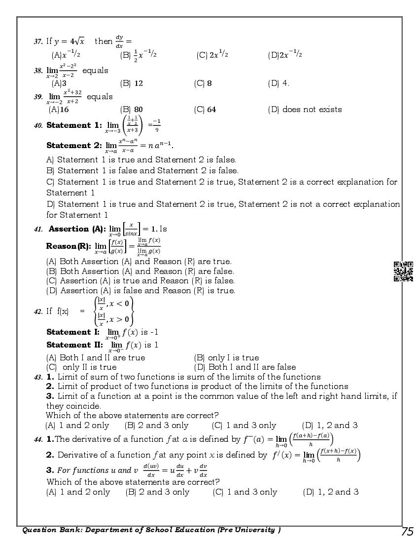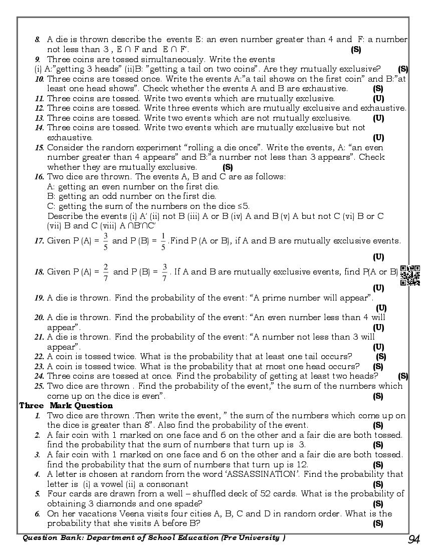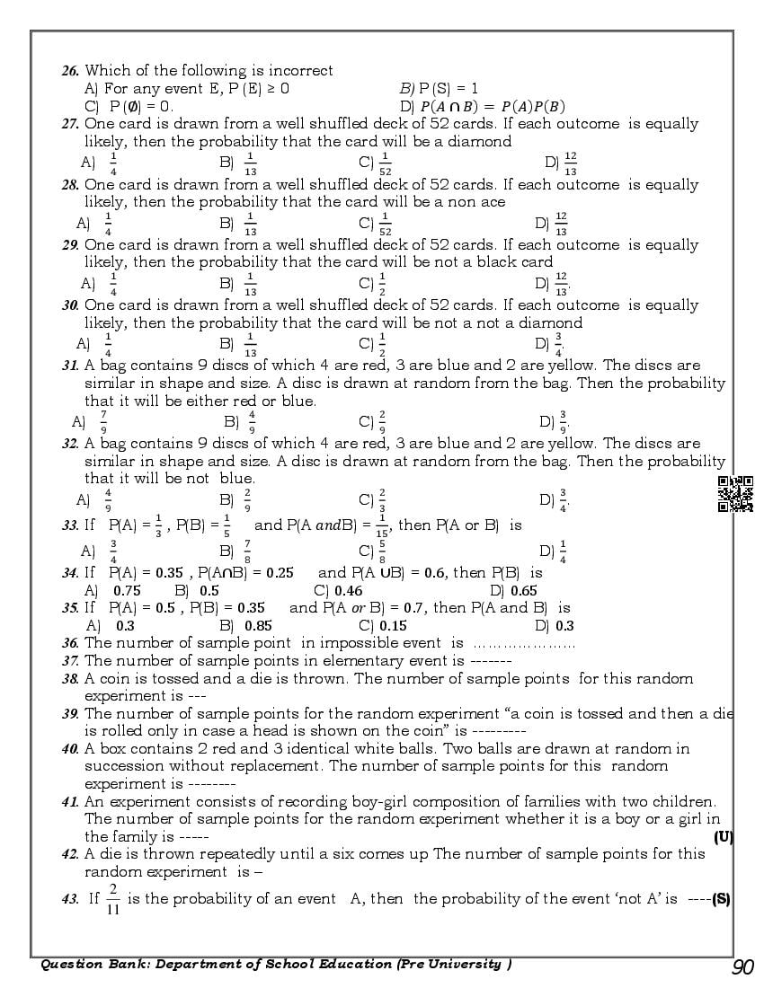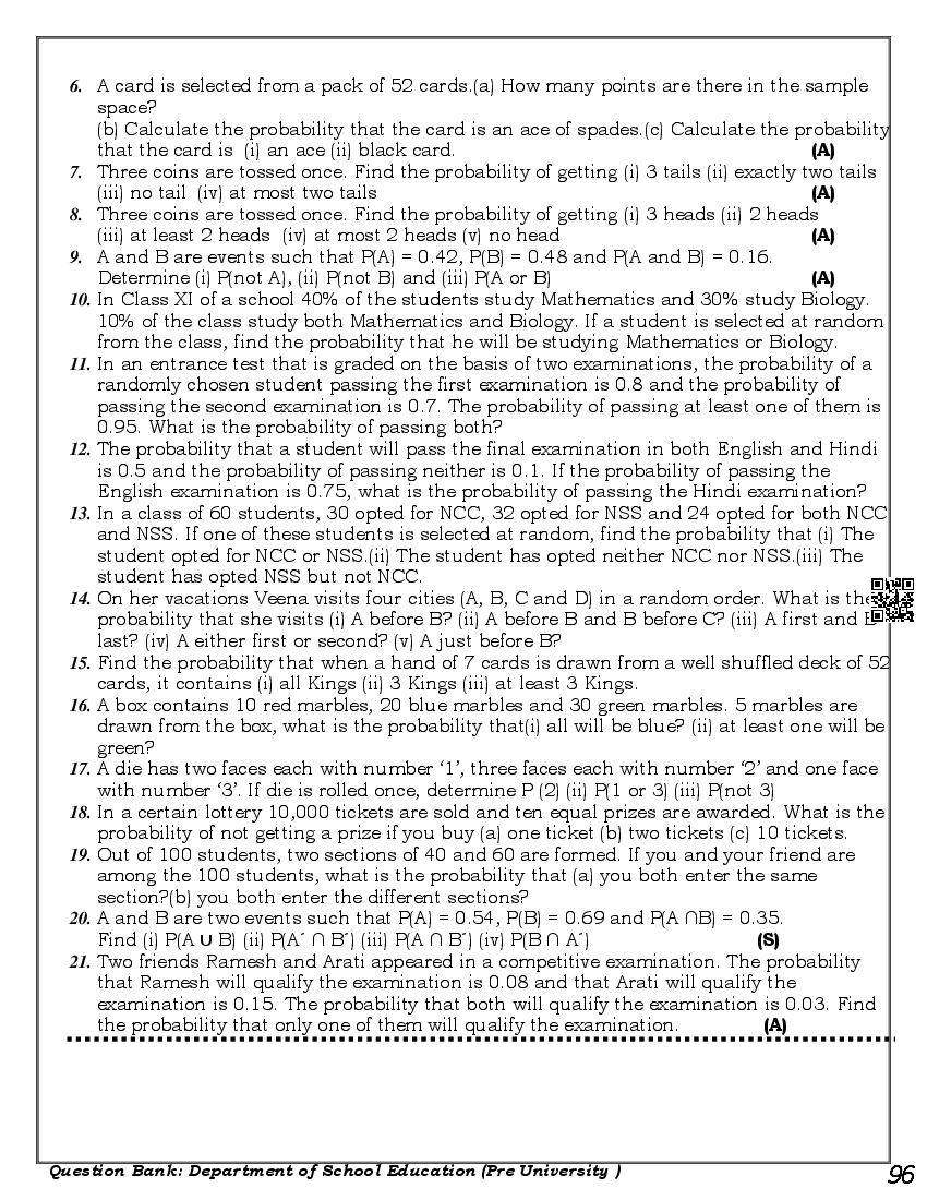 Karnataka 1st PUC Question Bank for Maths View Download