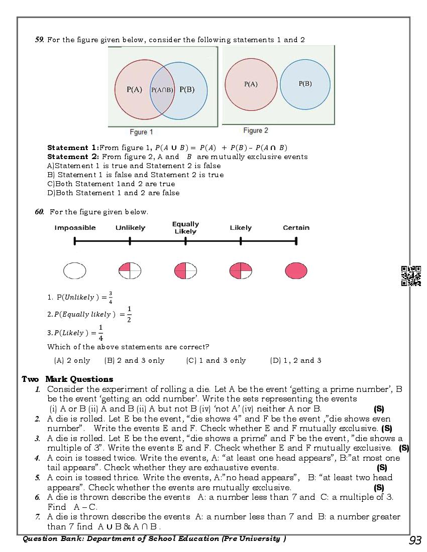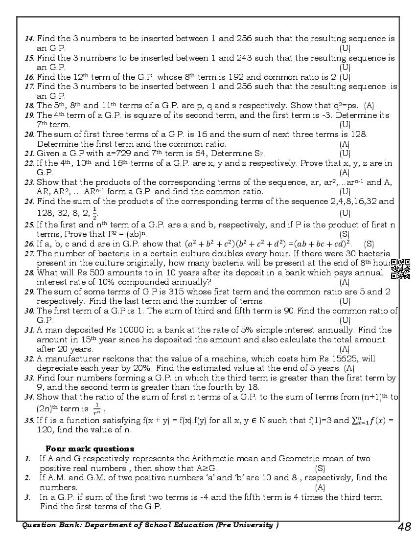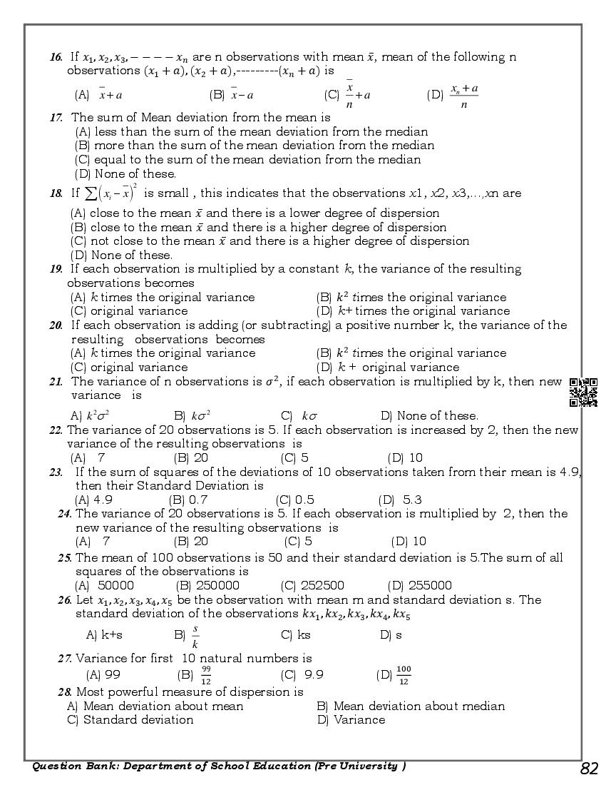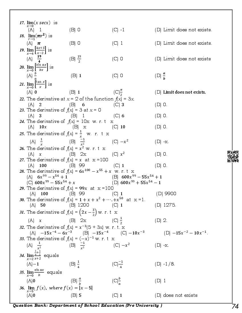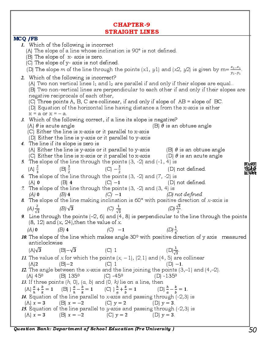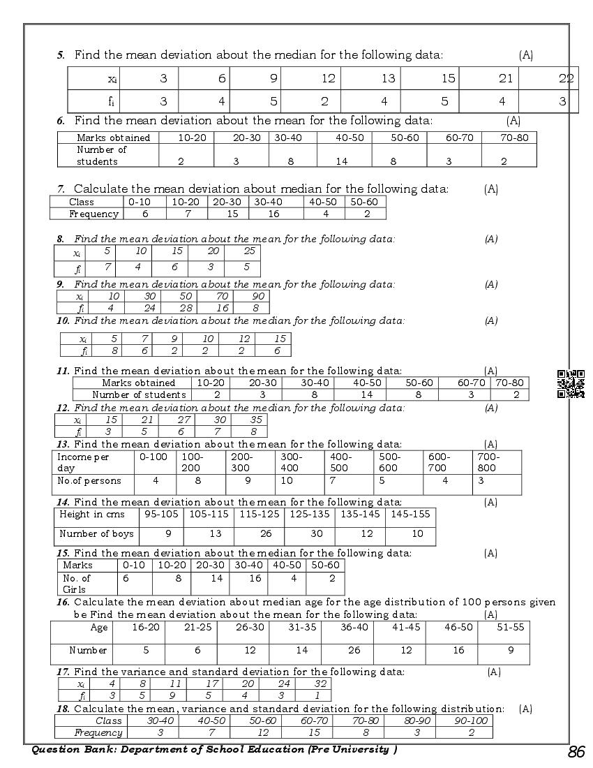 Karnataka 1st PUC Question Bank for Maths View Download