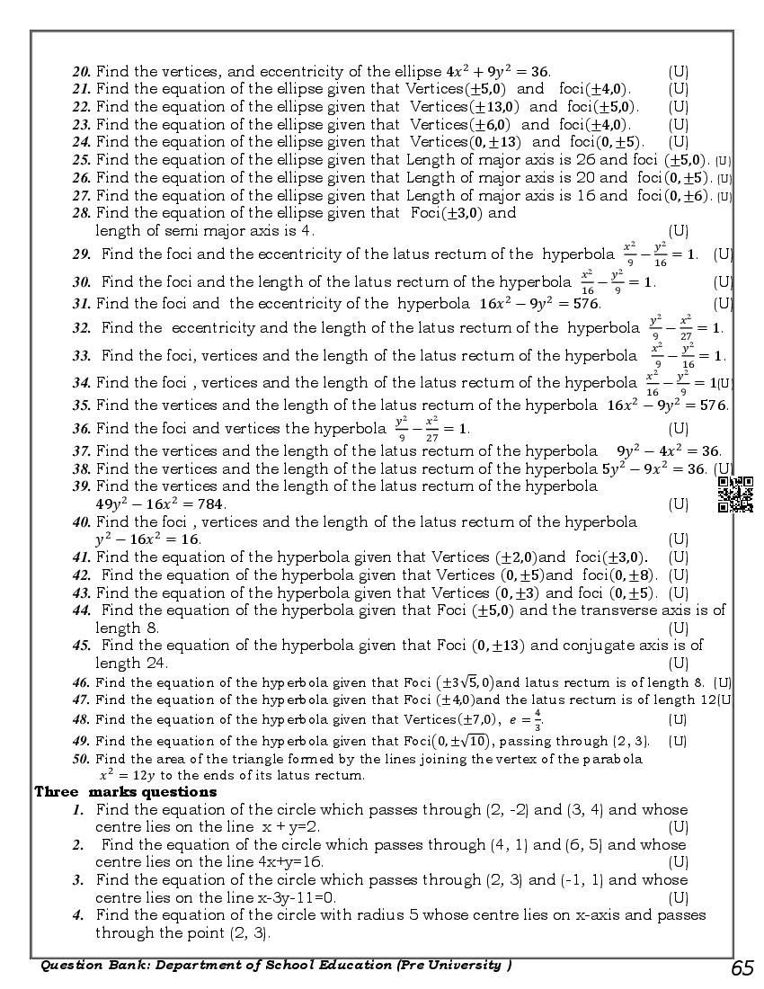 Karnataka 1st PUC Maths Question Bank PDF