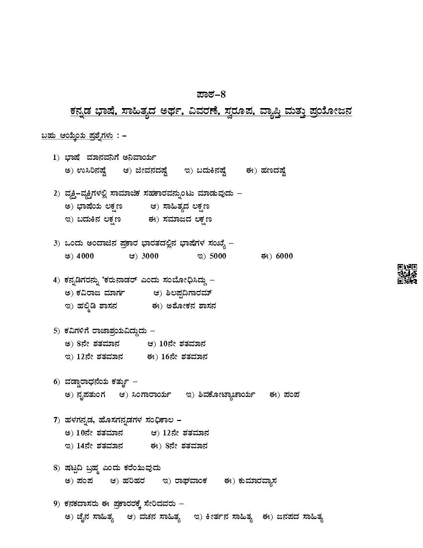 Here are the links for downloading the Kannada Optional Question Bank. Candidates can utilize these karnataka 11 study resources to assess their current performance levels and identify areas for improvement. This will assist students in recognizing their strengths and weaknesses, contributing to more effective learning.