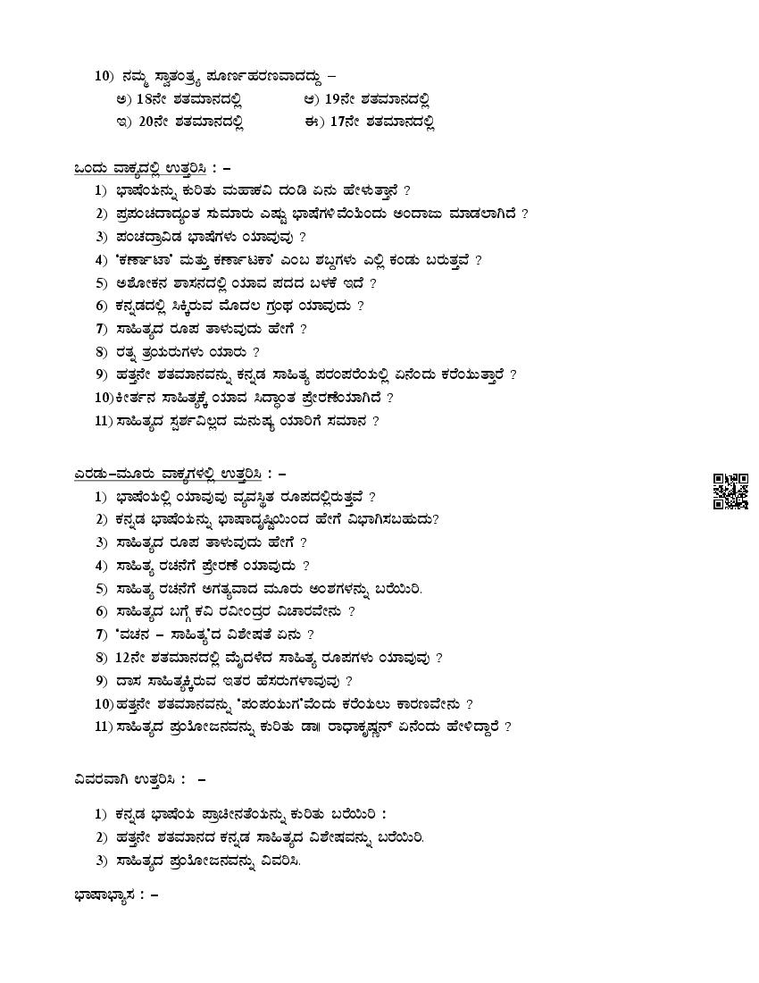 Karnataka 1st PUC Question Bank for Kannada Optional View Download