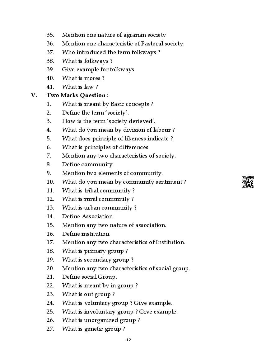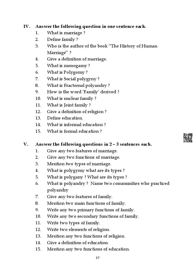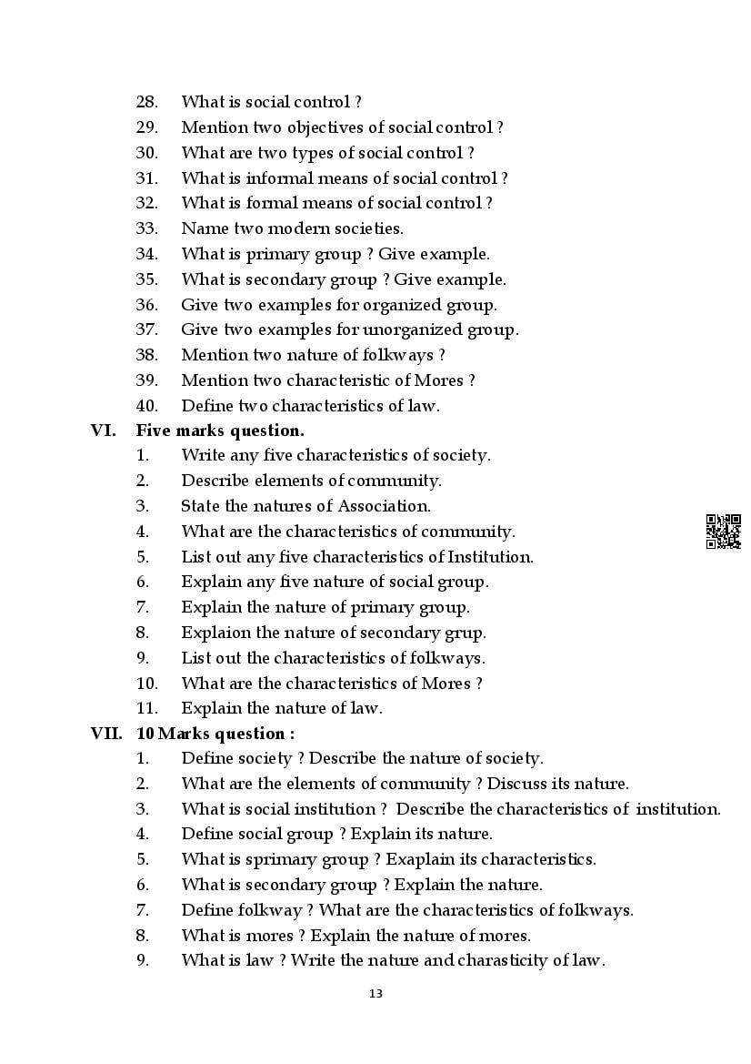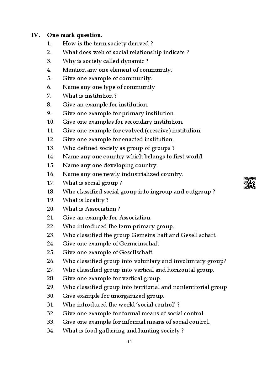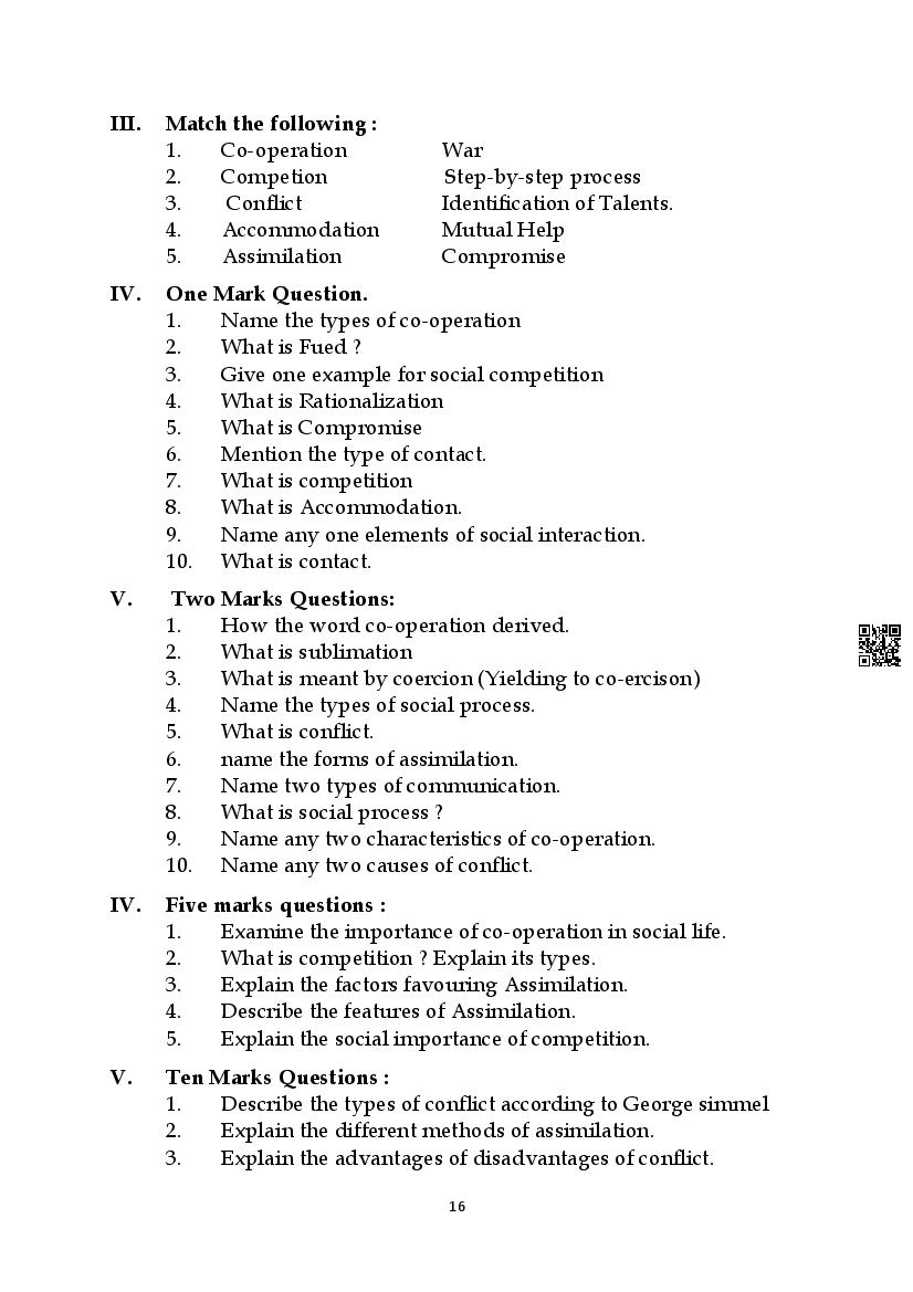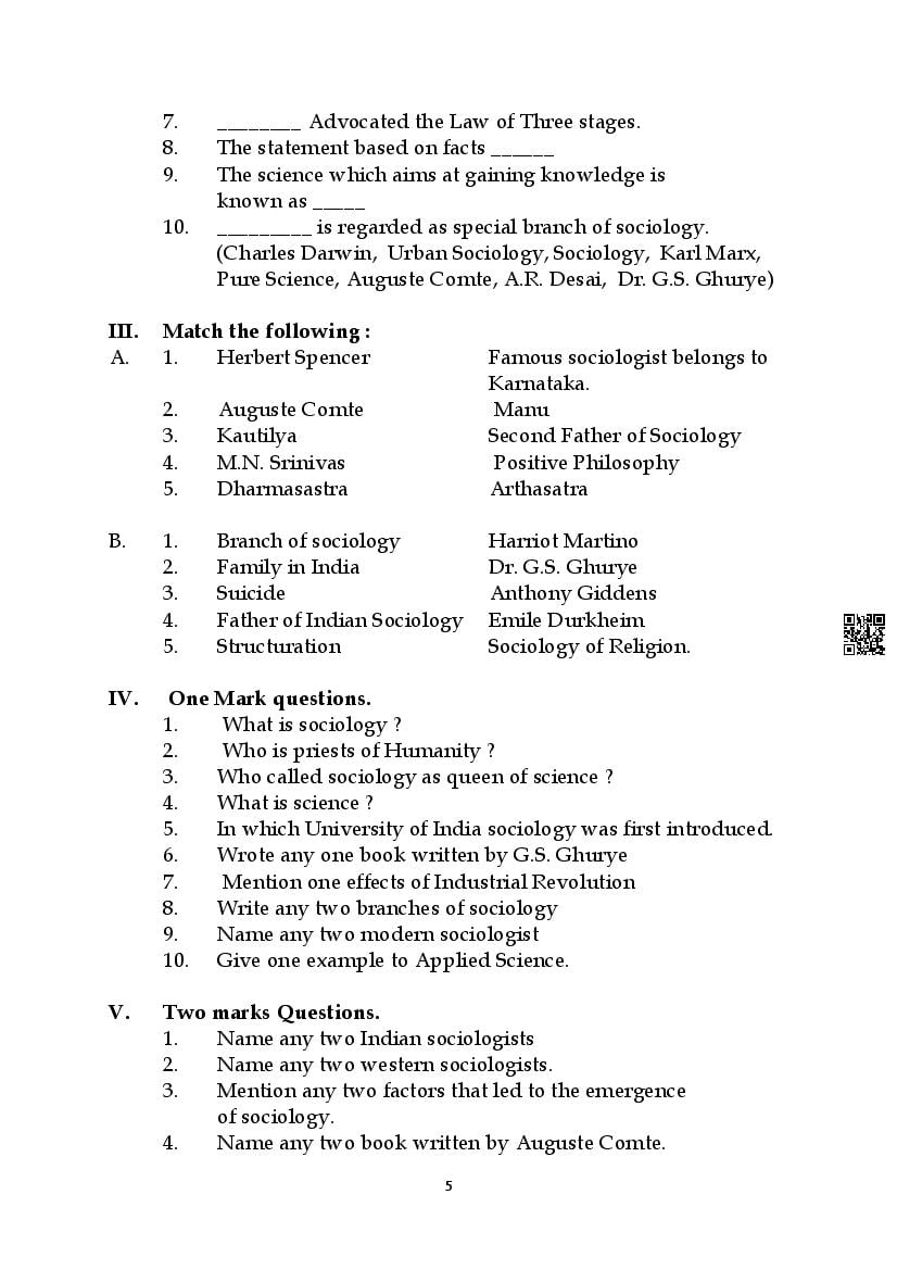 Here are the links for downloading the Sociology Question Bank. Candidates can utilize these karnataka 11 study resources to assess their current performance levels and identify areas for improvement. This will assist students in recognizing their strengths and weaknesses, contributing to more effective learning.