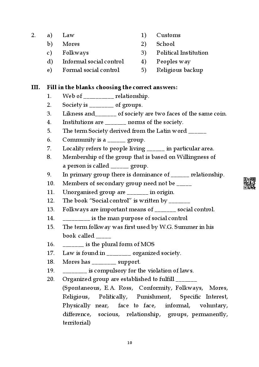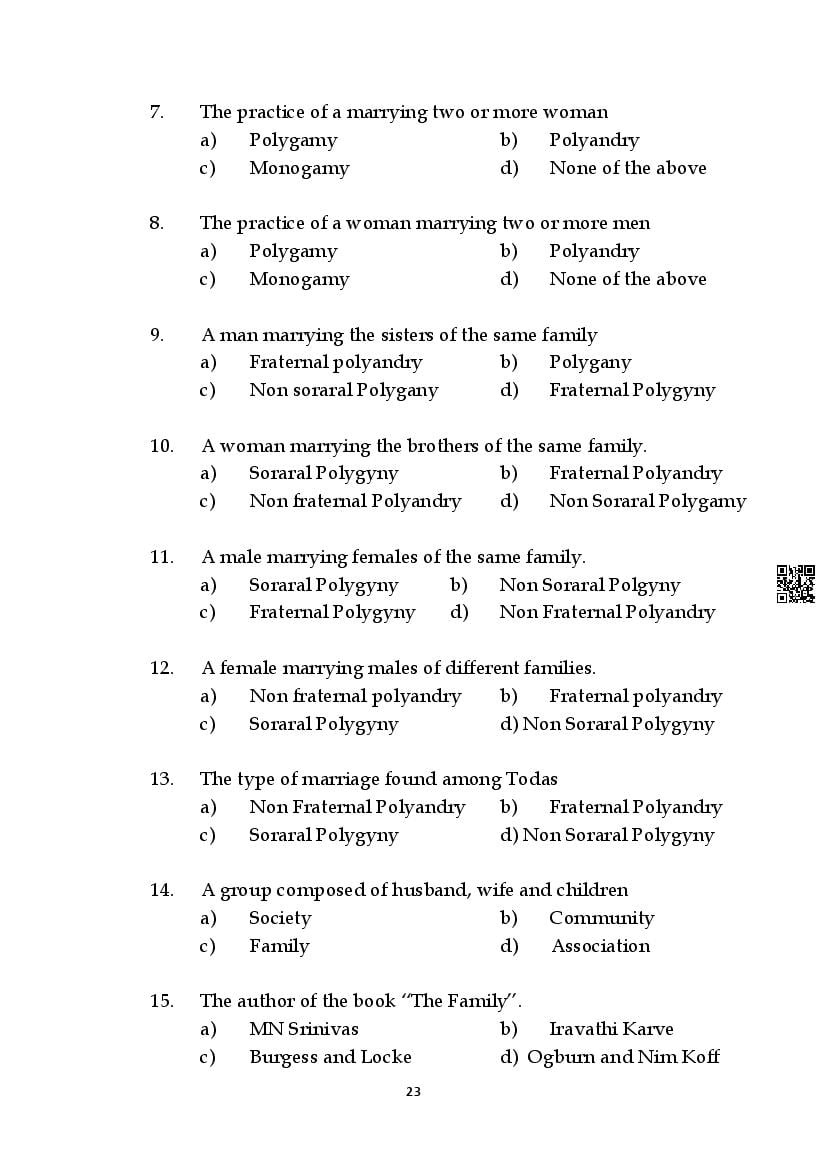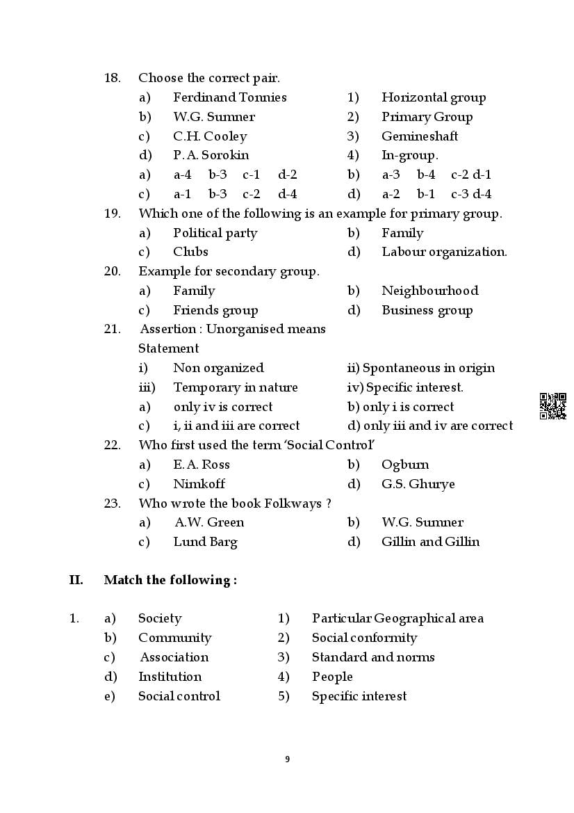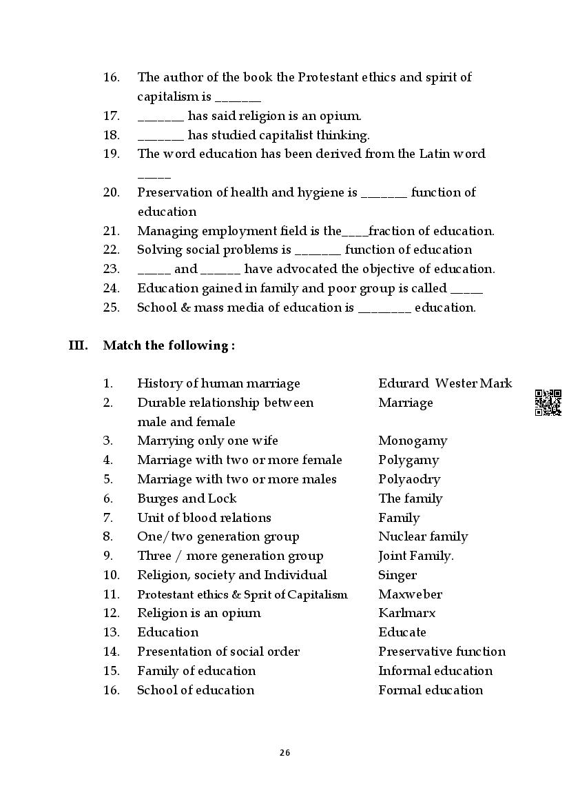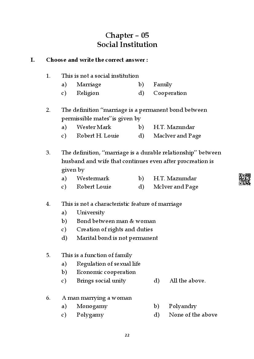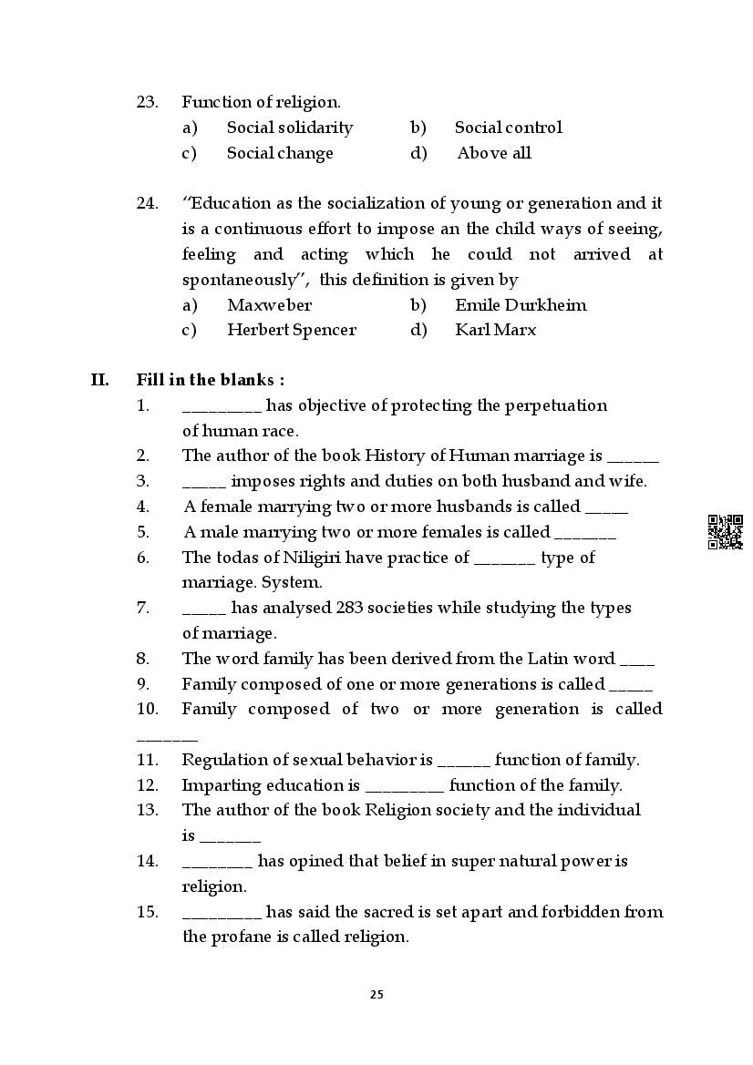 Here are the links for downloading the Sociology Question Bank. Candidates can utilize these karnataka 11 study resources to assess their current performance levels and identify areas for improvement. This will assist students in recognizing their strengths and weaknesses, contributing to more effective learning.