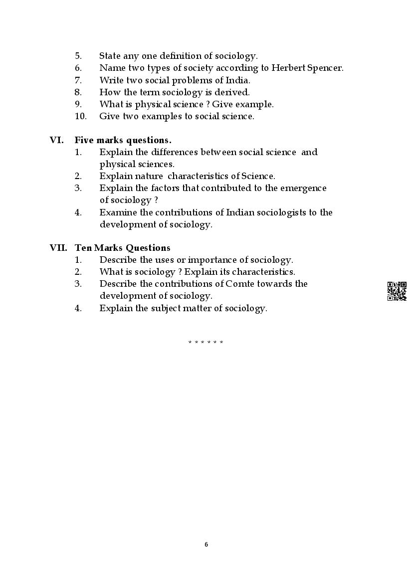 Karnataka State Board I PUC Sociology Question Bank is available for download in PDF format. Simply click the download option to save the file. We recommend that students solve the provided Sociology question bank to improve their exam scores and plan their preparation strategies effectively.