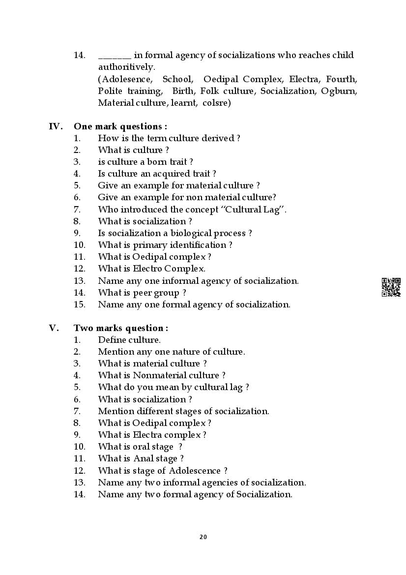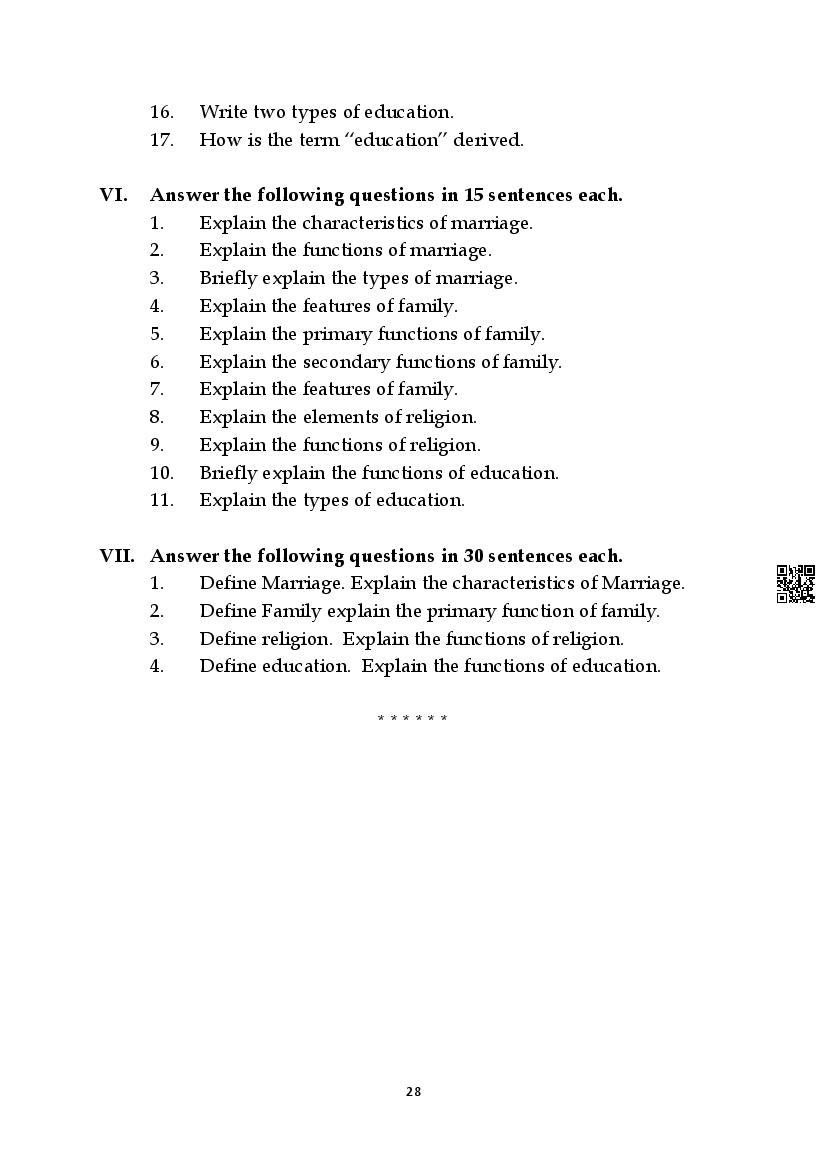Karnataka 1st PUC Question Bank for Sociology View Download