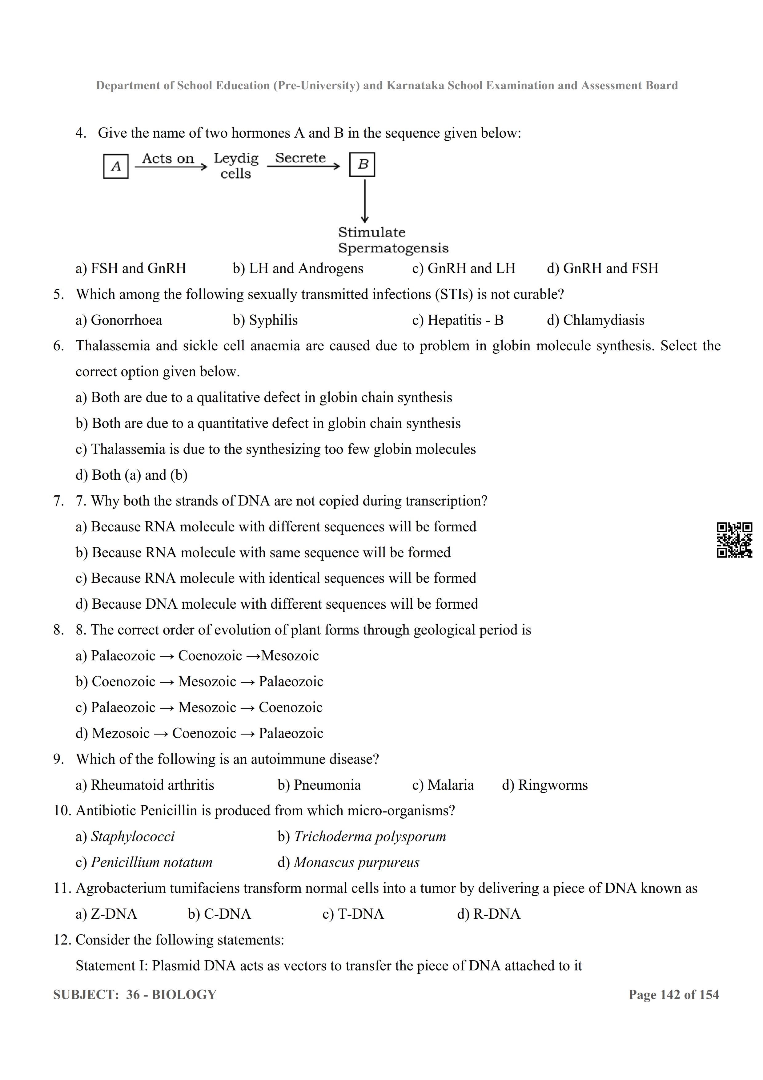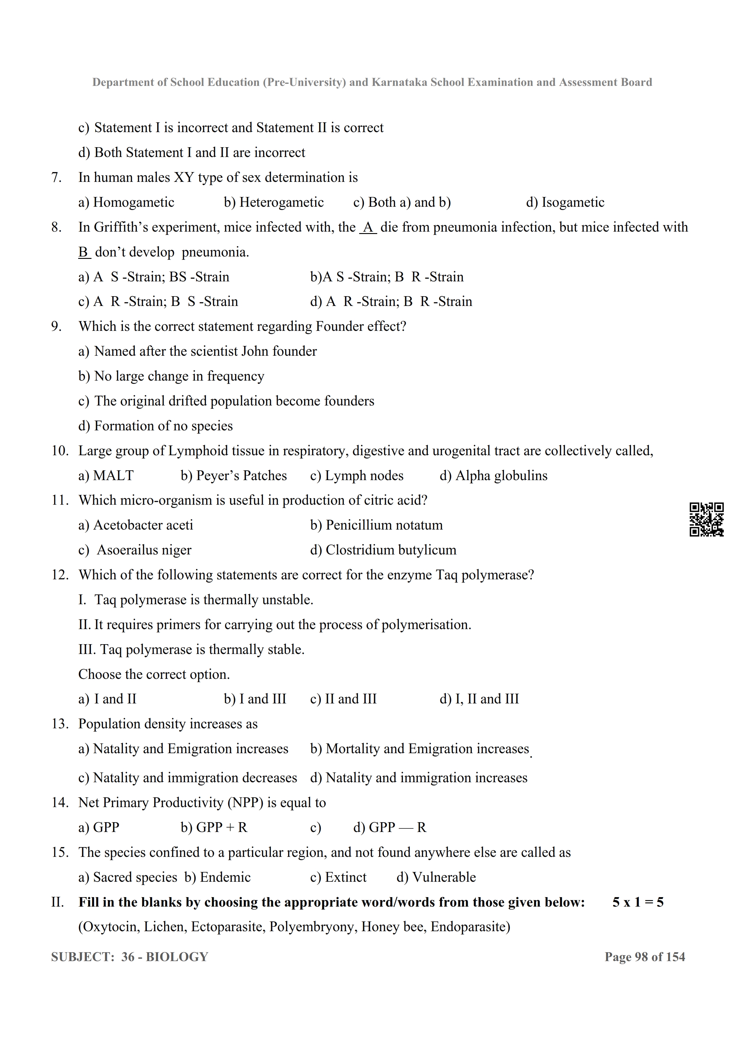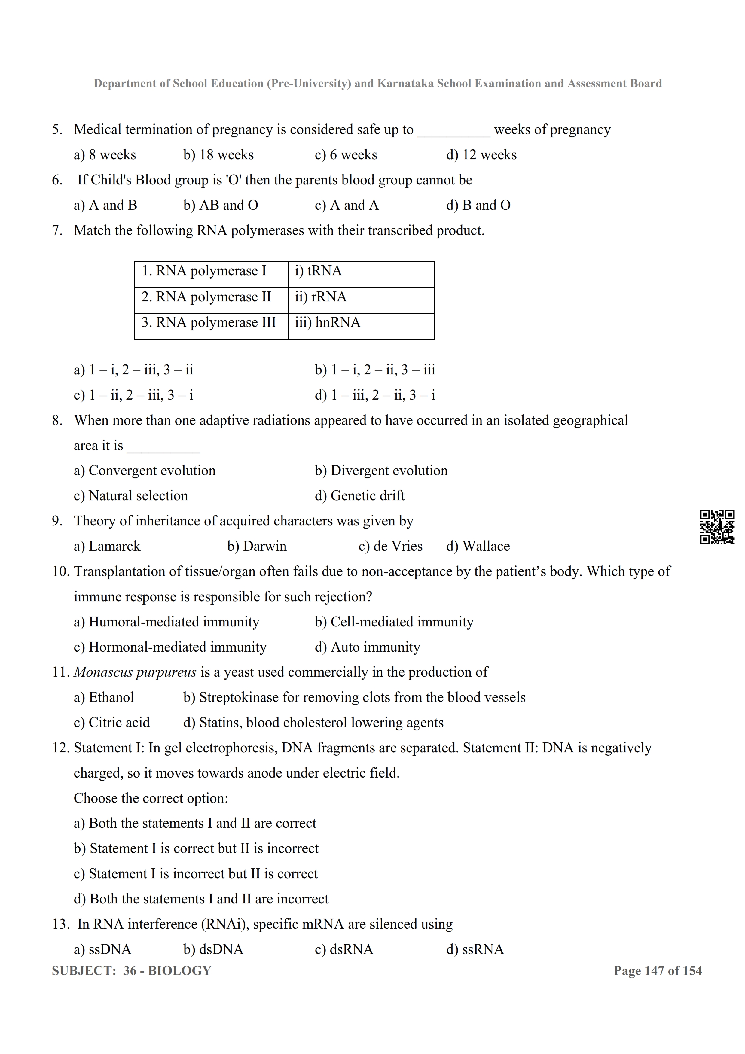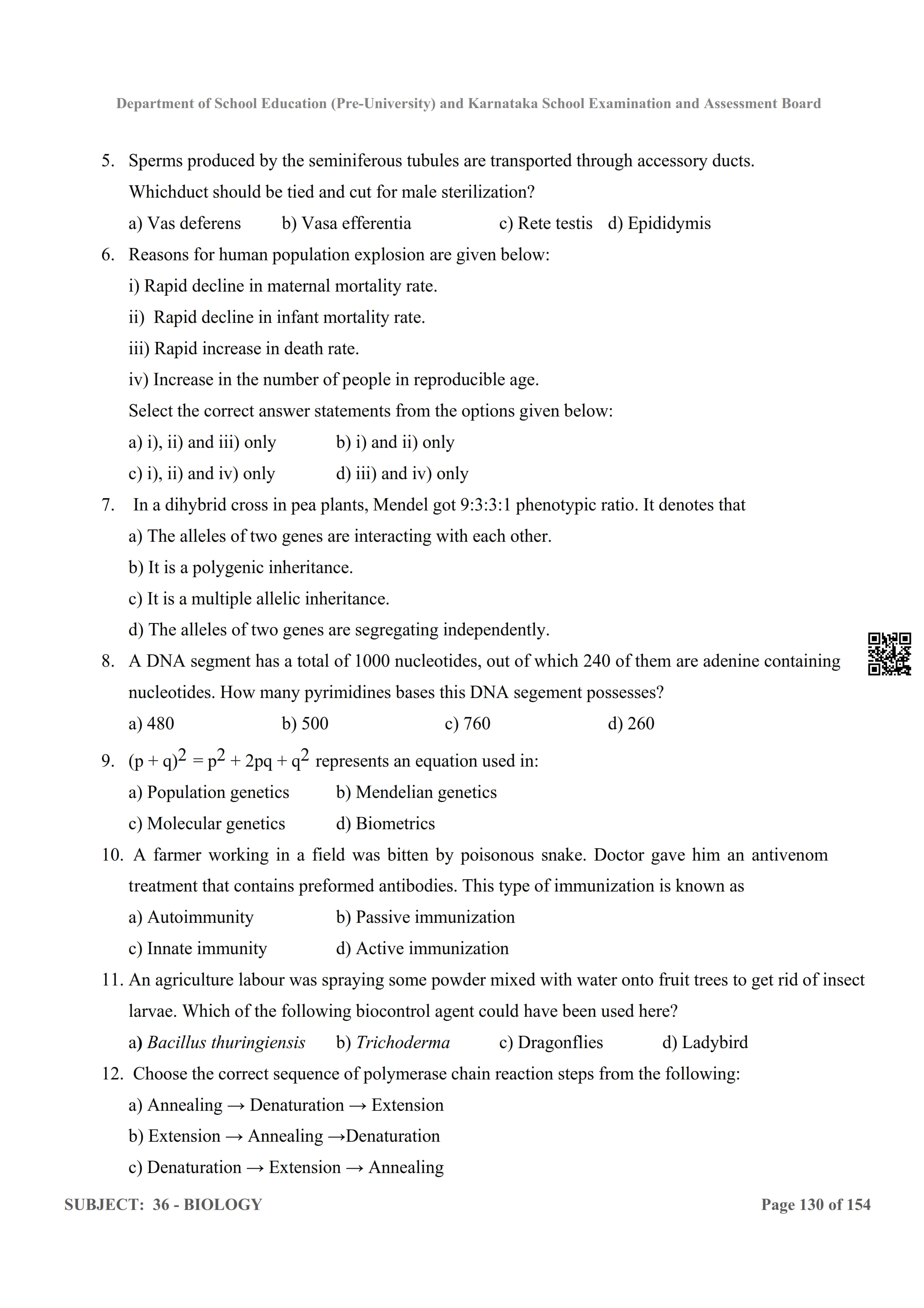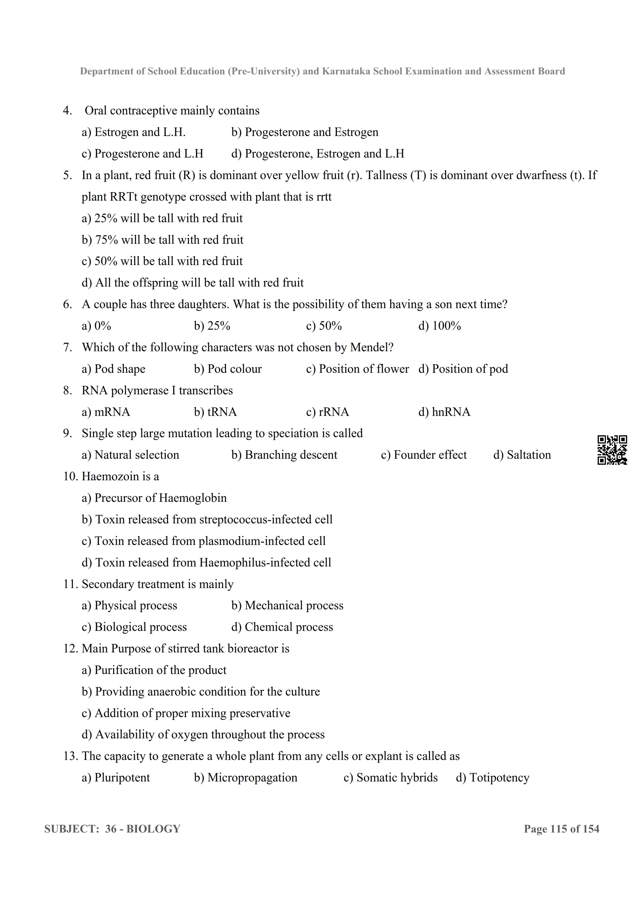 Here are the links for downloading the Biology Question Bank. Candidates can utilize these karnataka 12 study resources to assess their current performance levels and identify areas for improvement. This will assist students in recognizing their strengths and weaknesses, contributing to more effective learning.