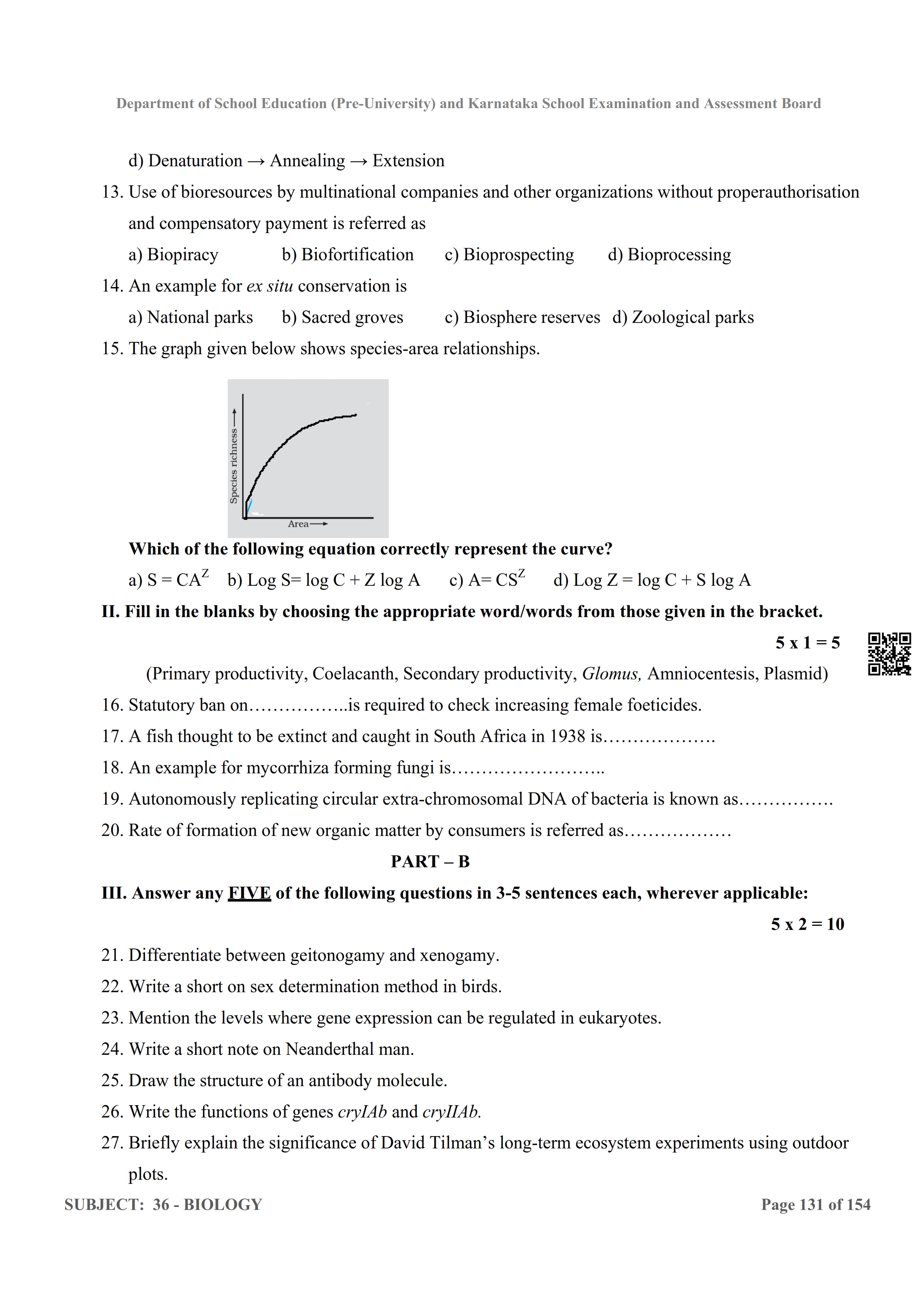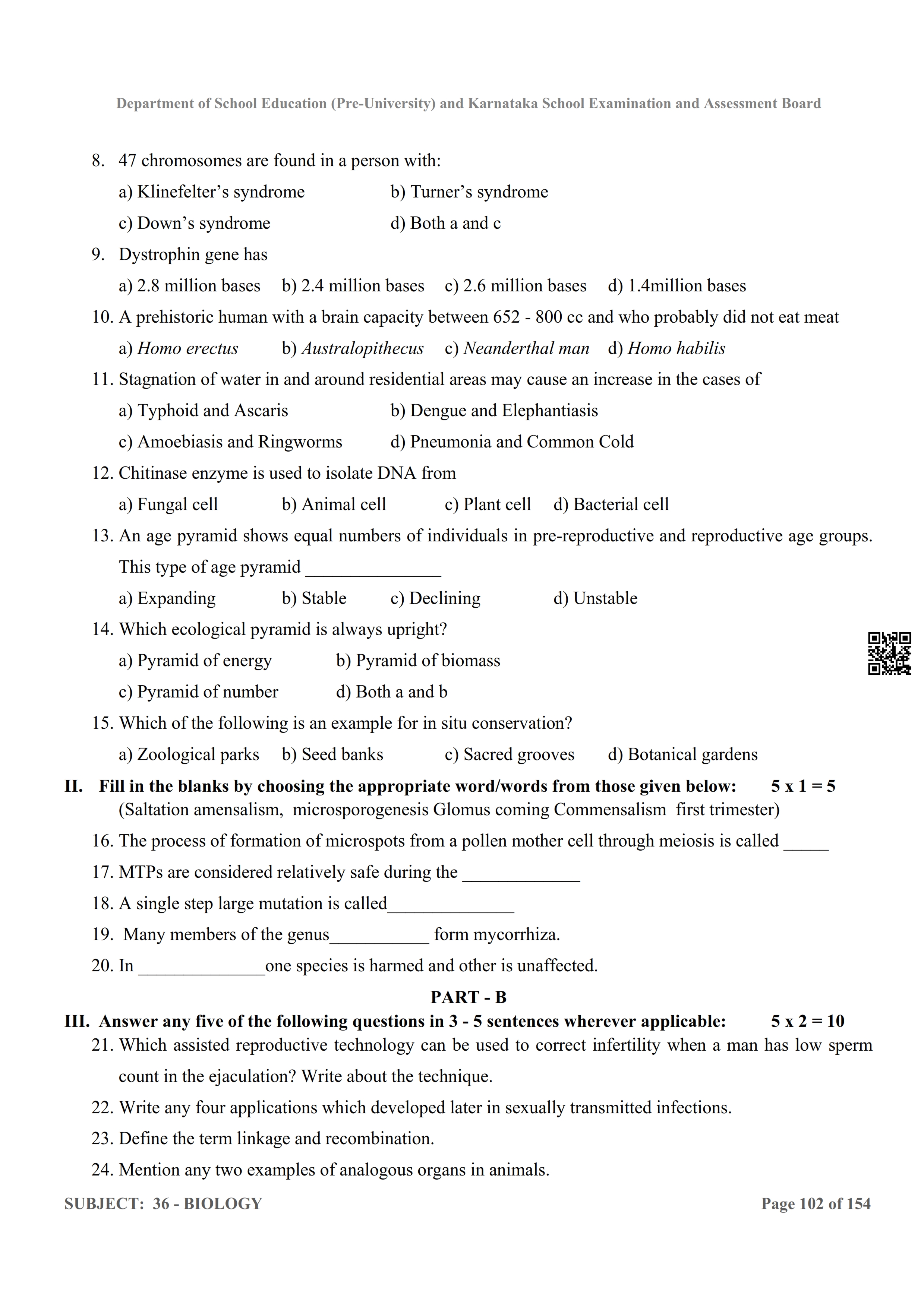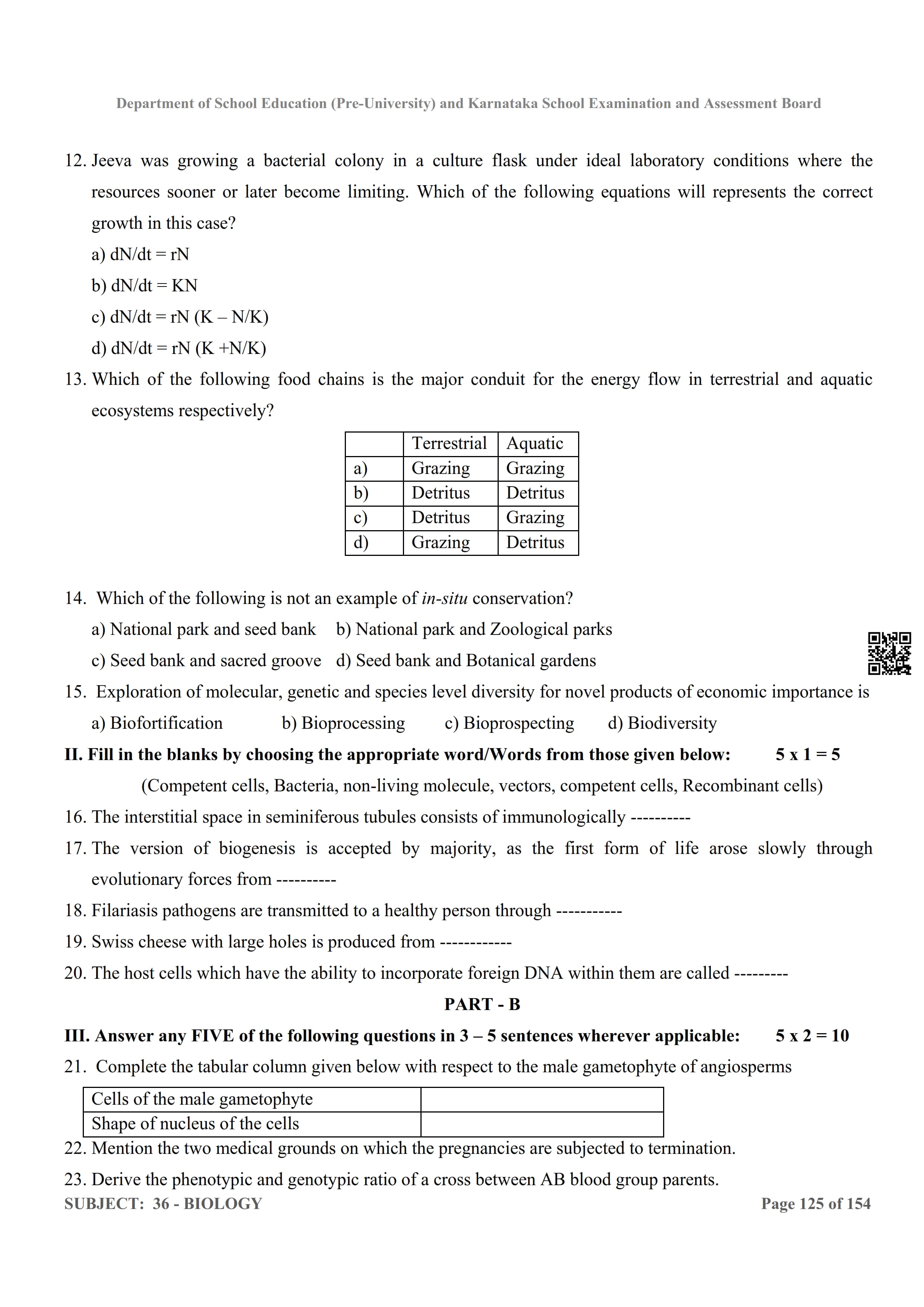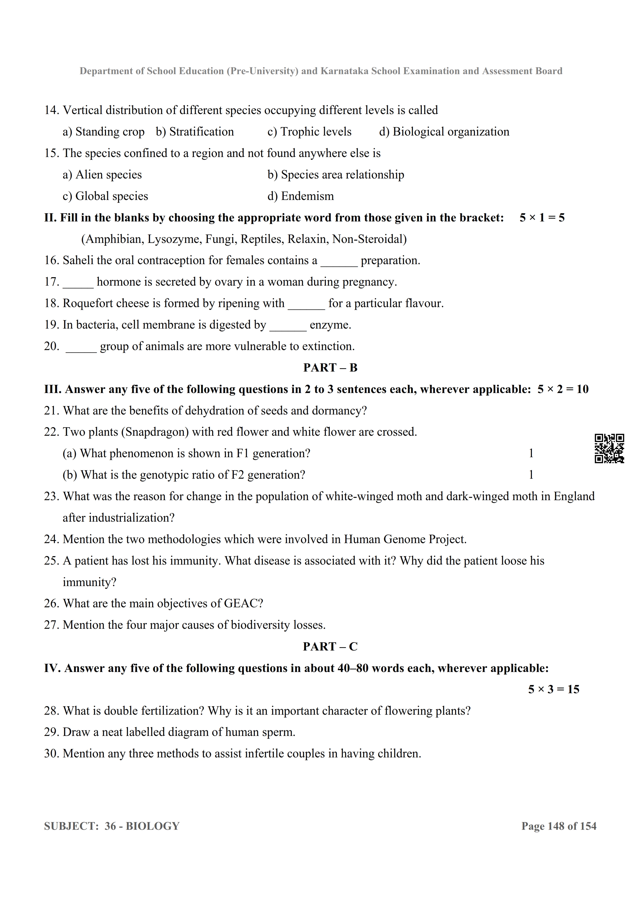 Karnataka 2nd PUC Question Bank for Biology View Download