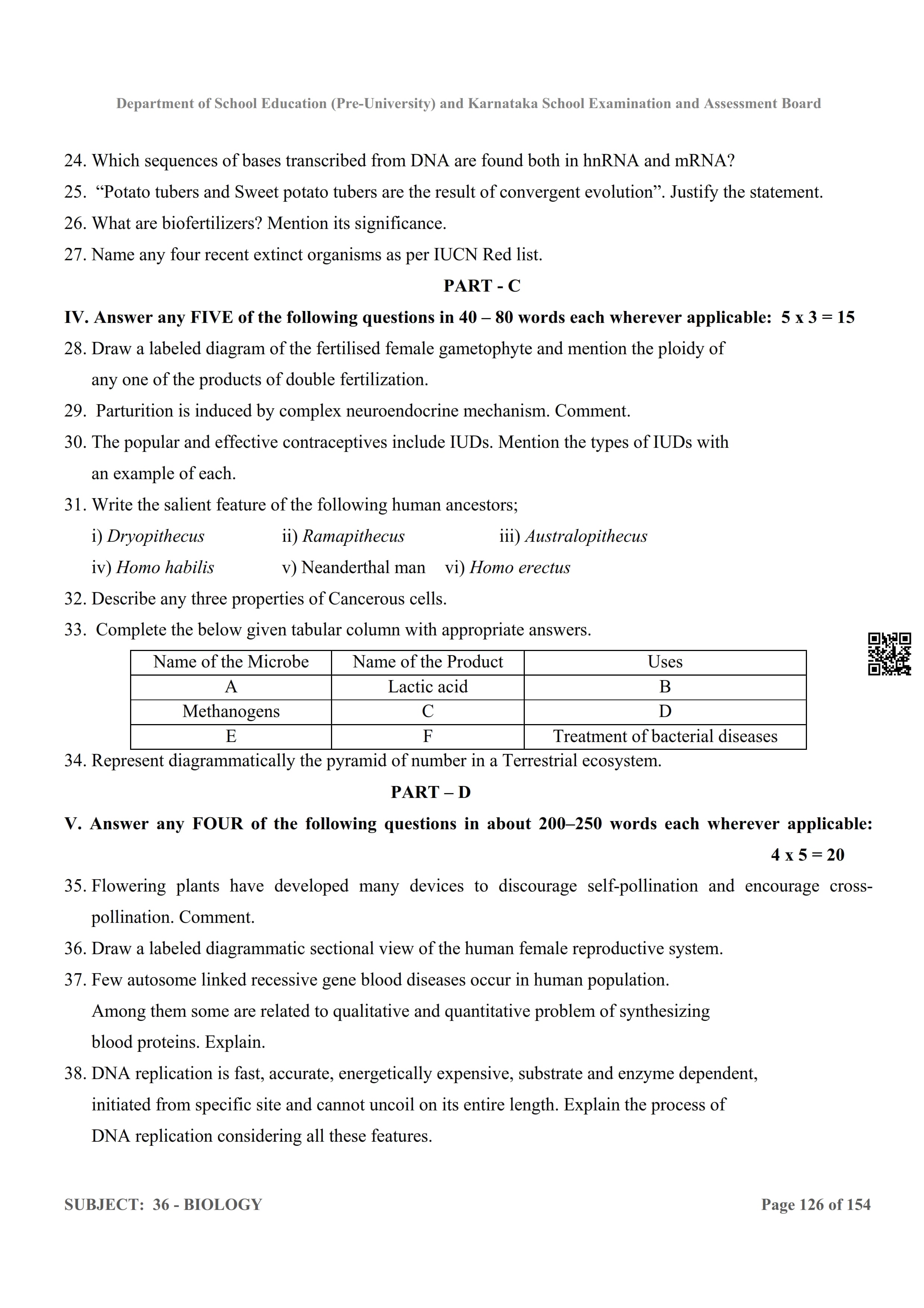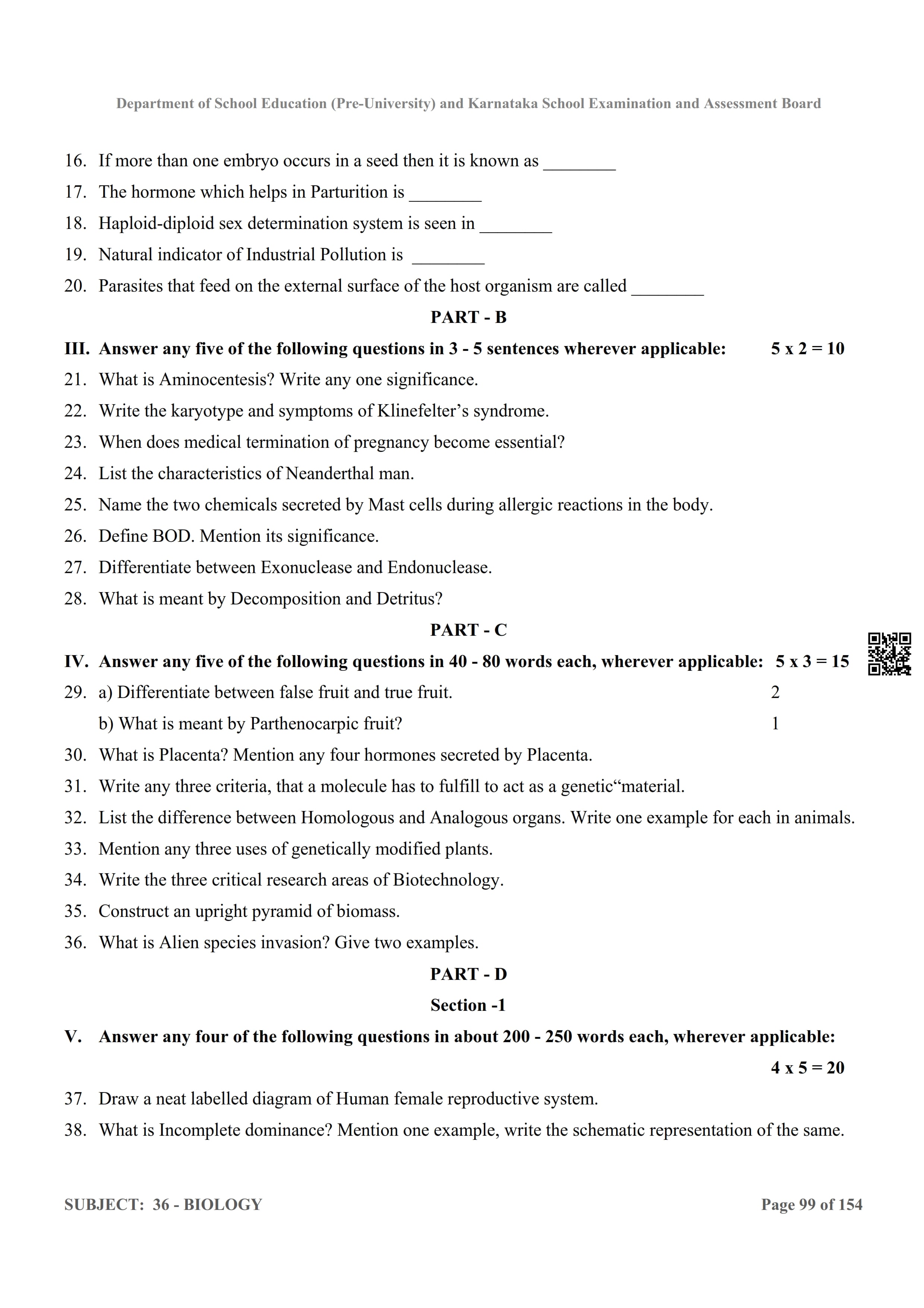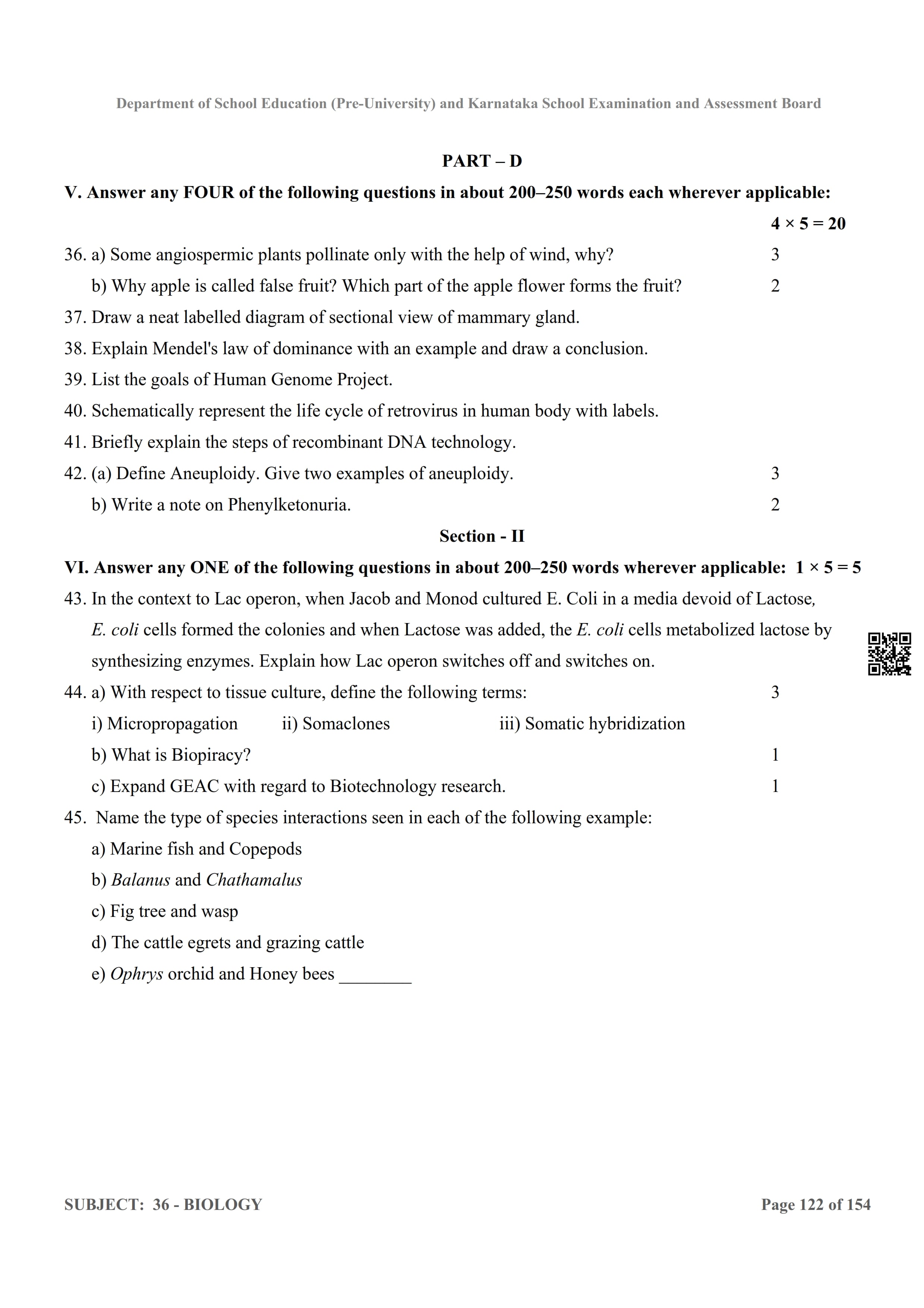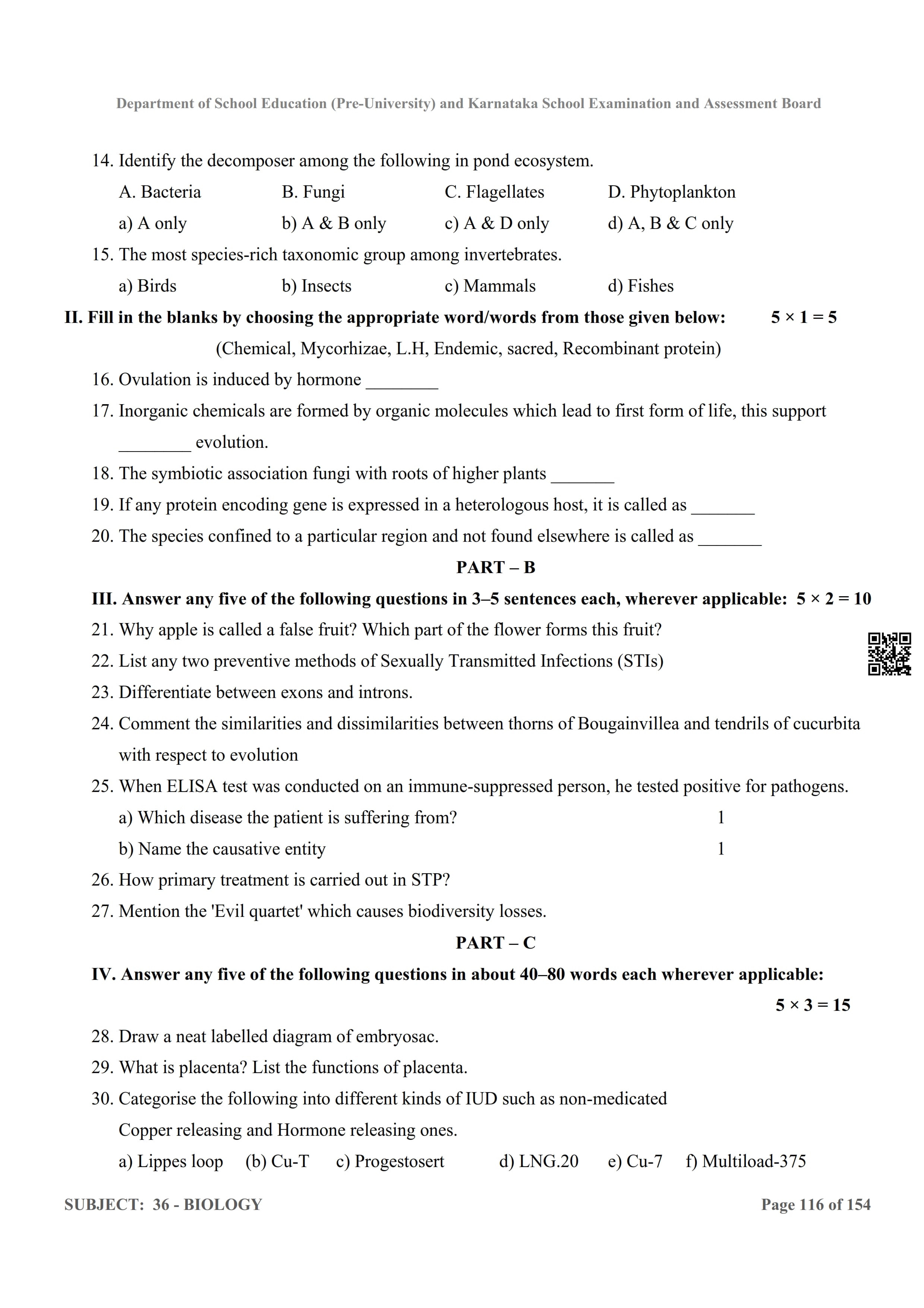 Karnataka 2nd PUC Question Bank for Biology View Download