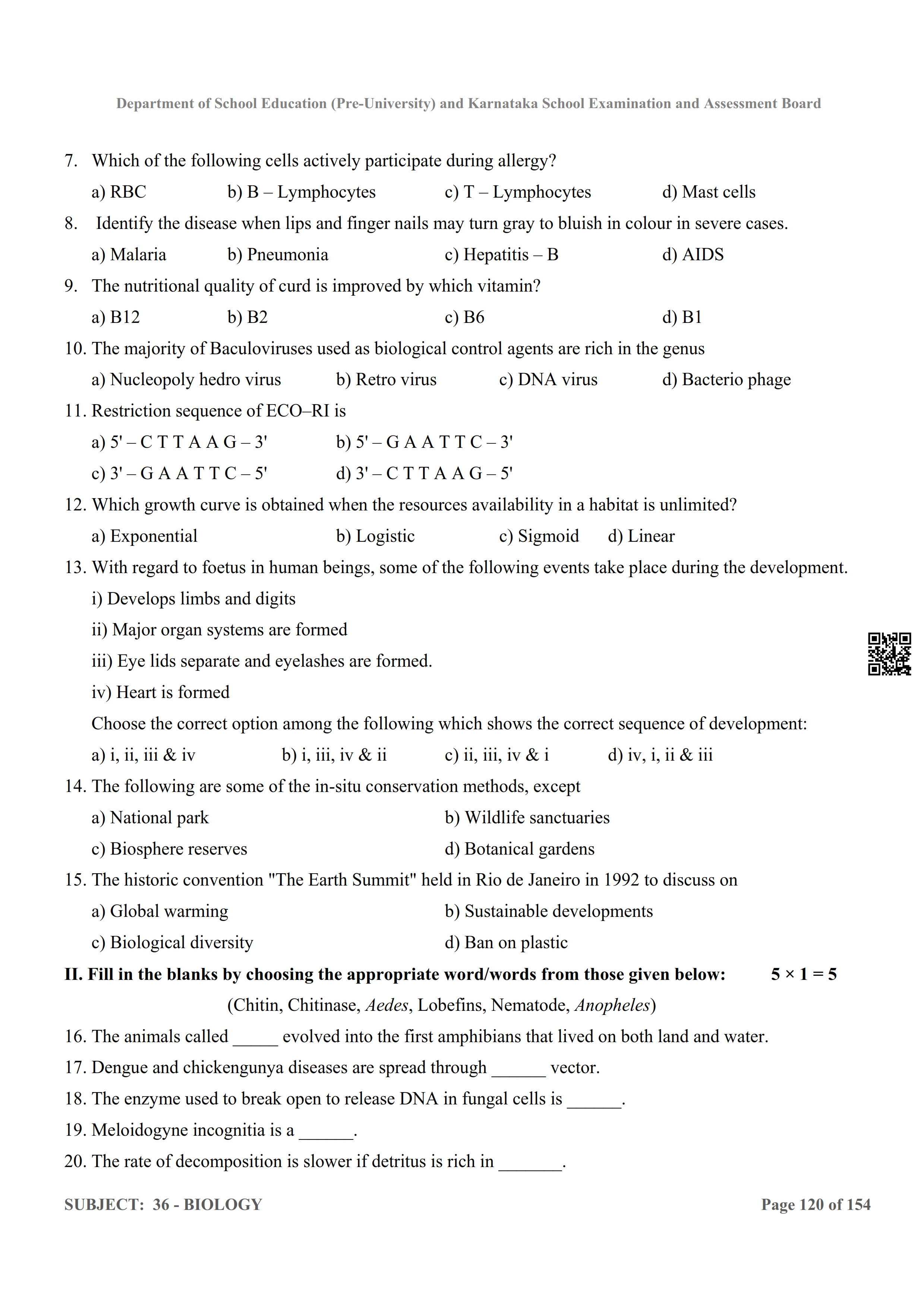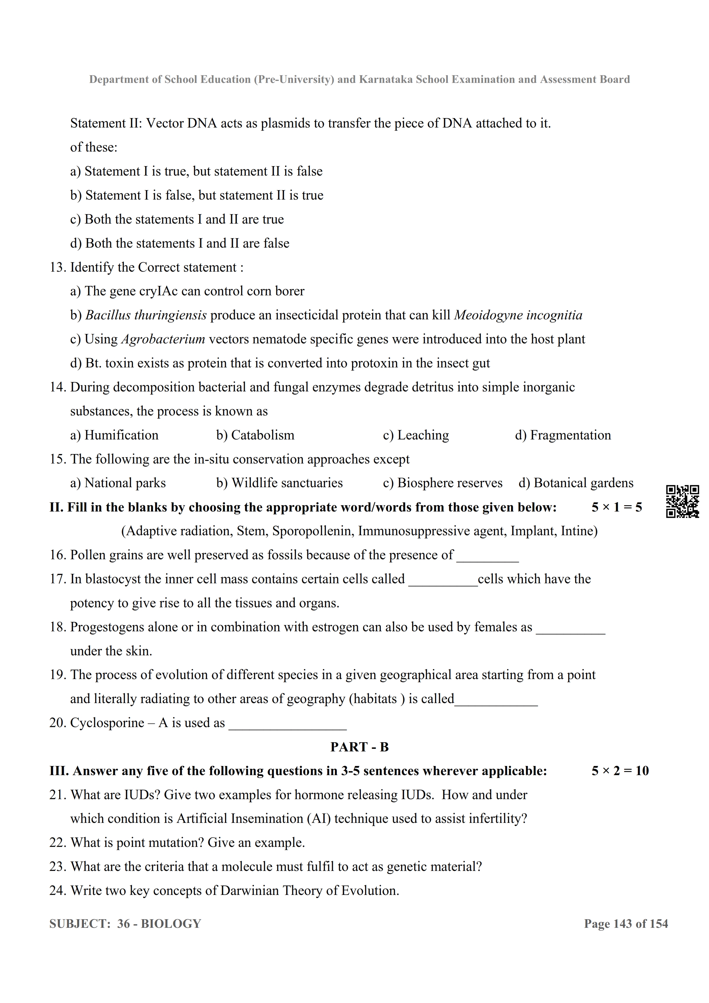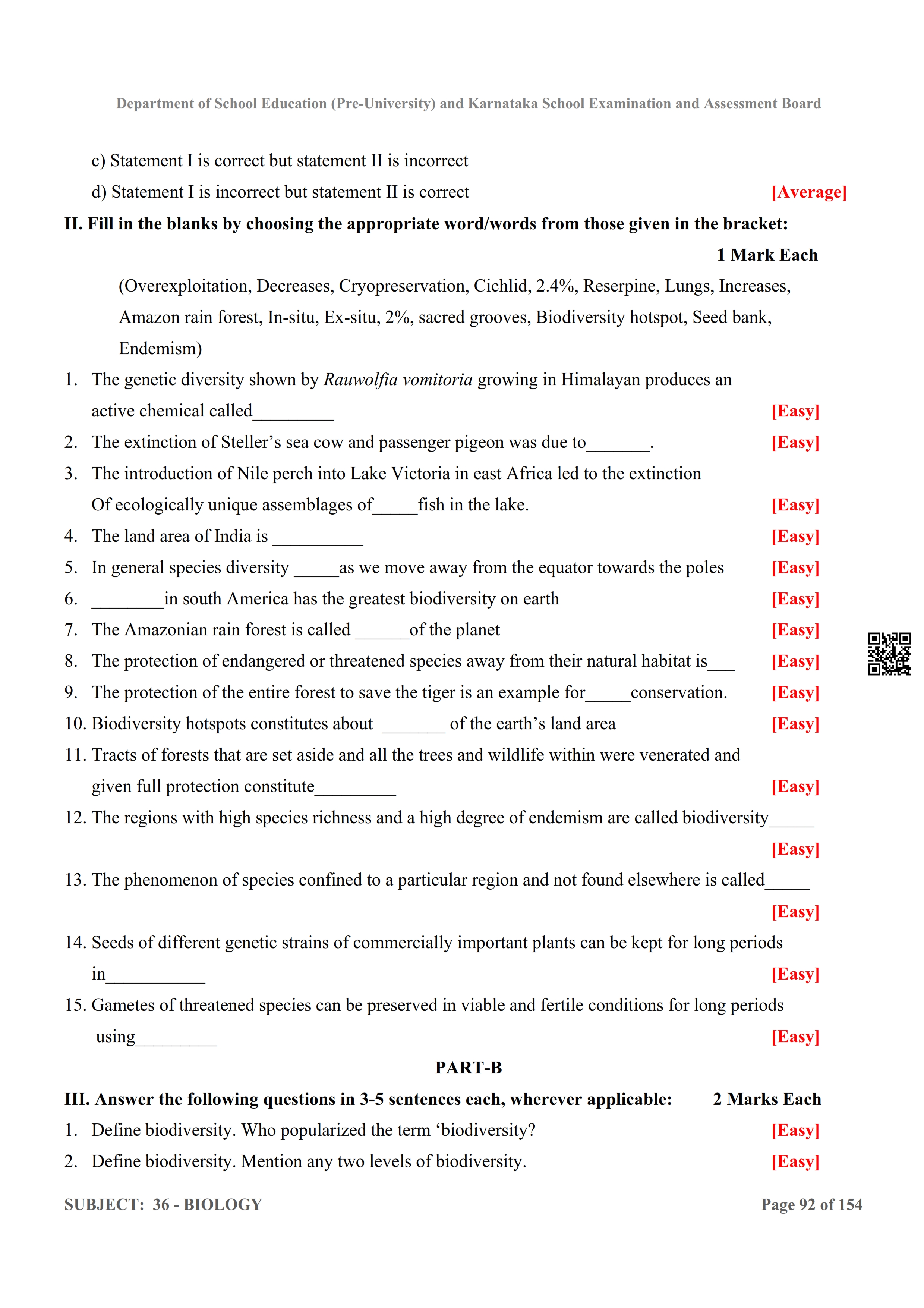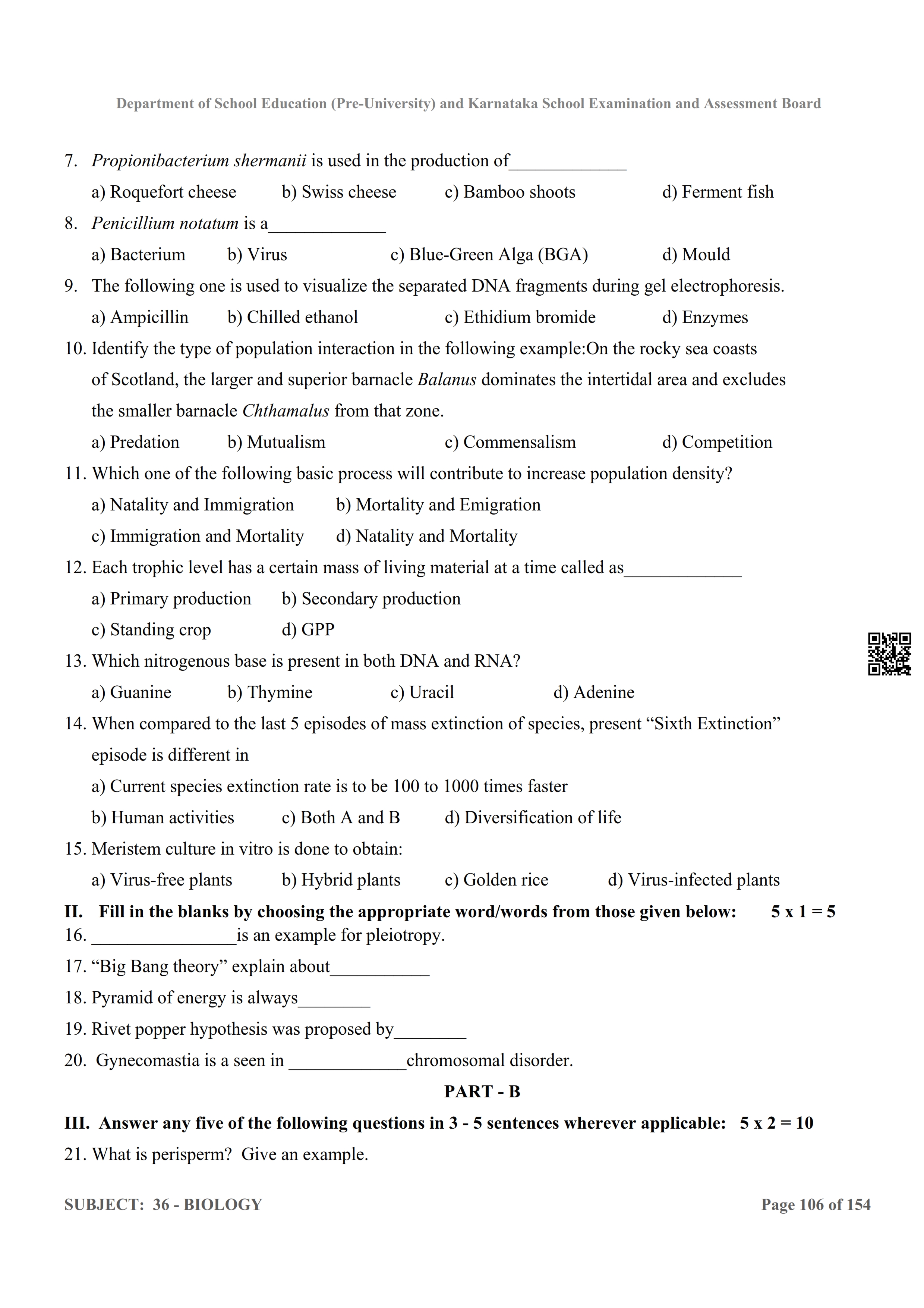 Karnataka 2nd PUC Question Bank for Biology View Download