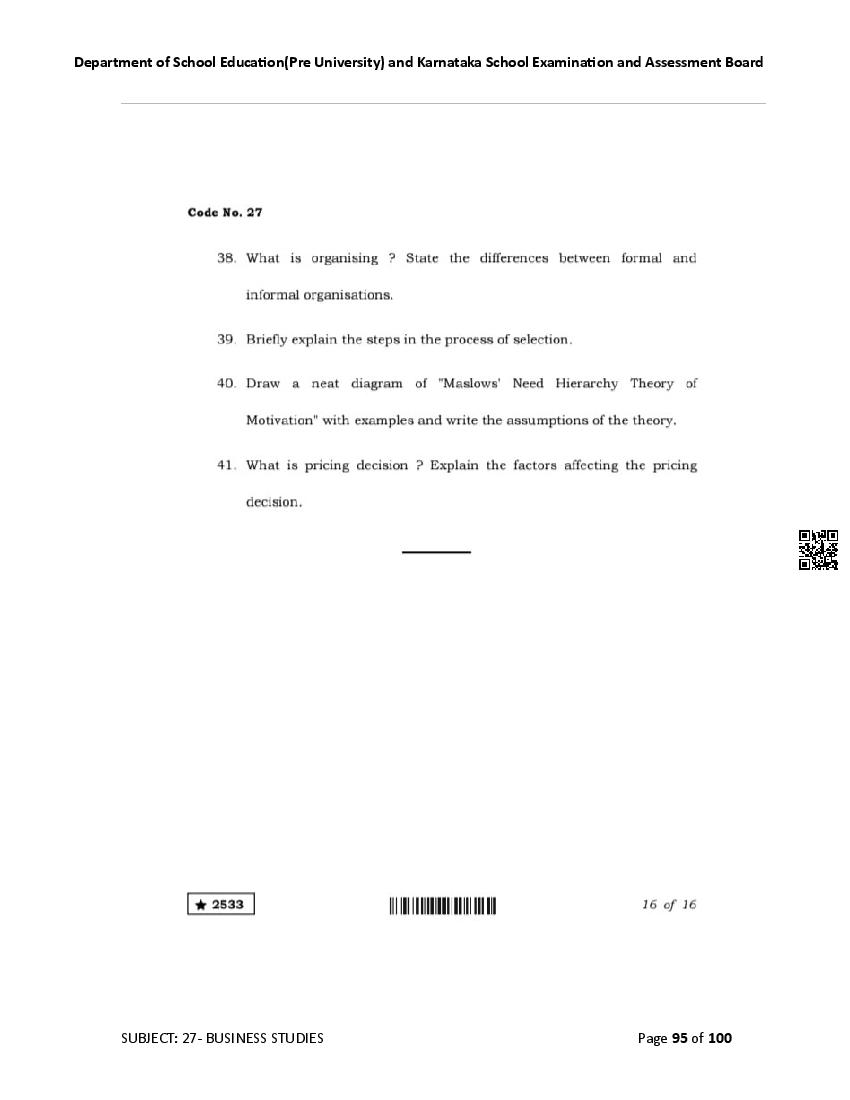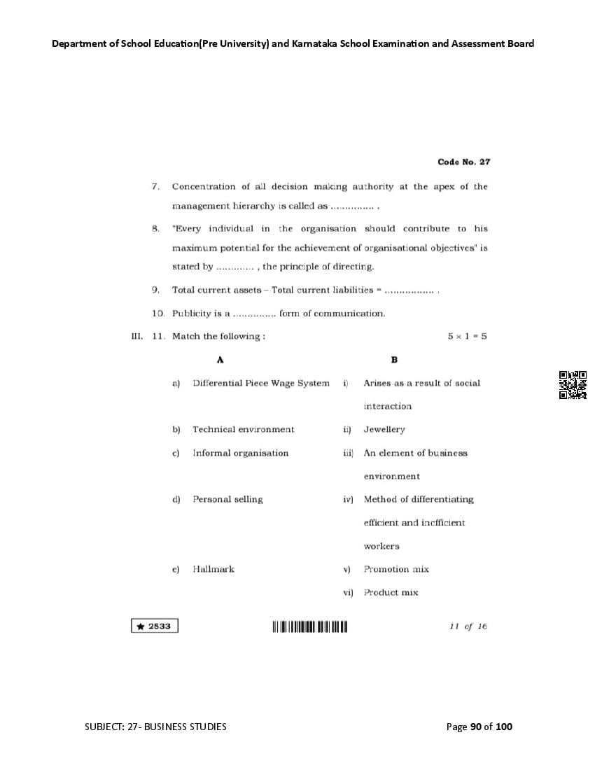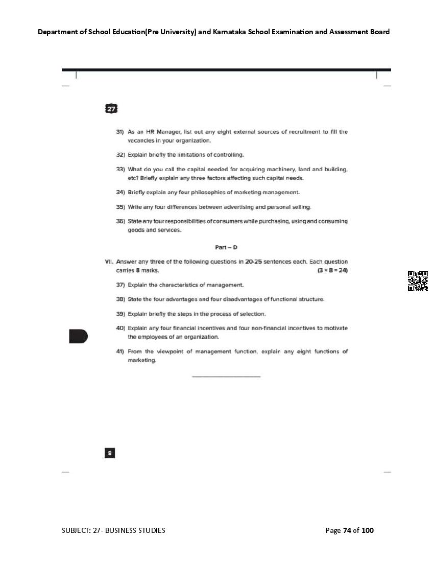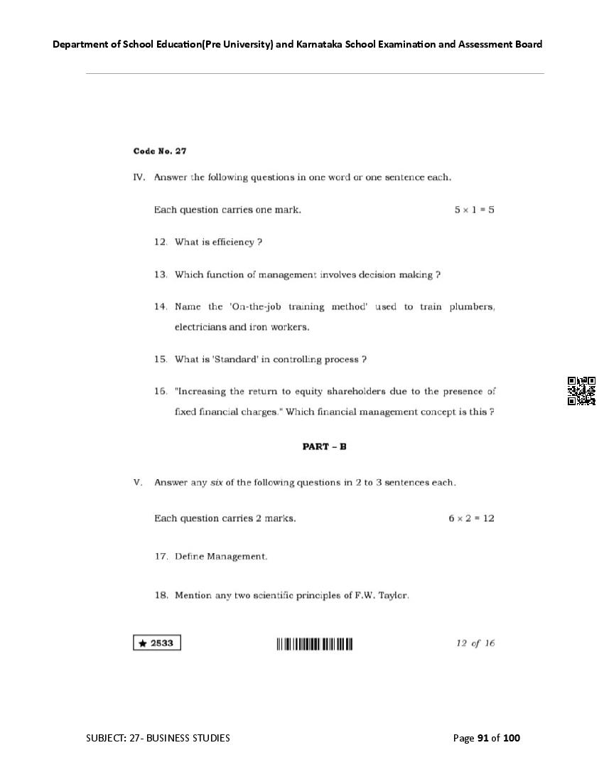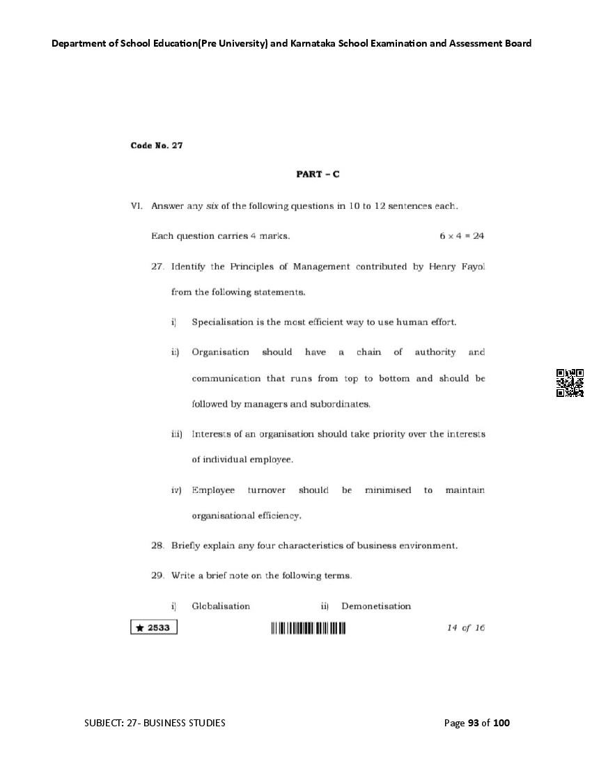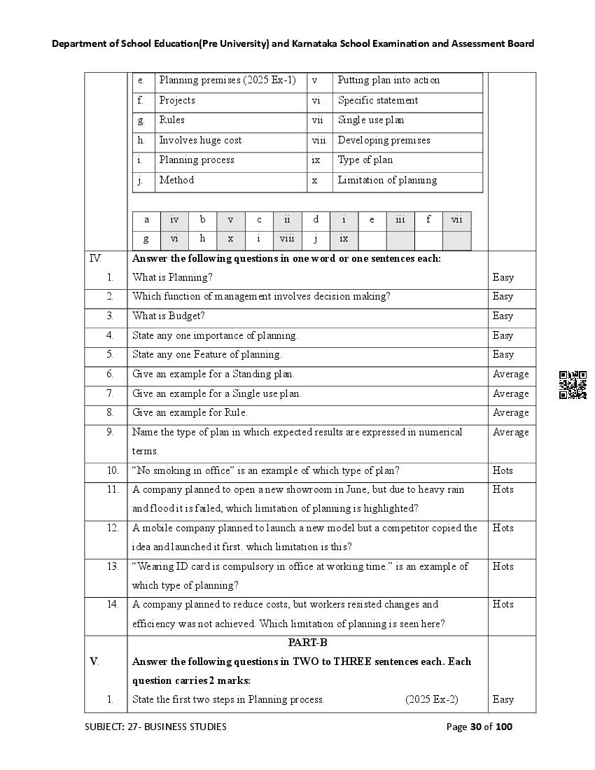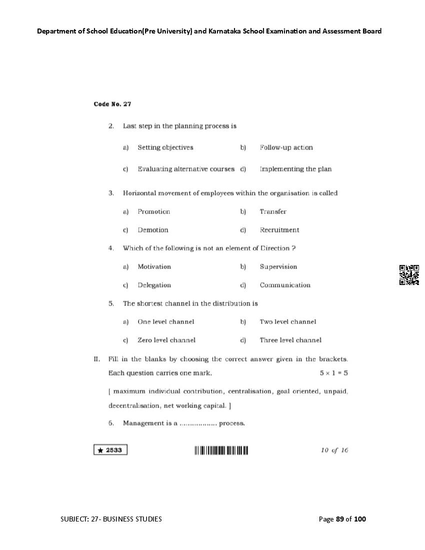 Karnataka 2nd PUC Question Bank for Business Studies View Download