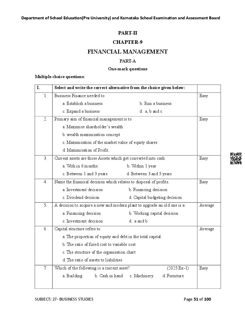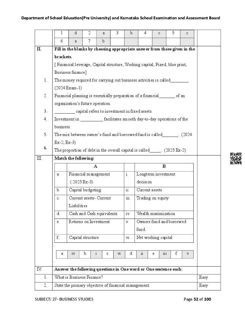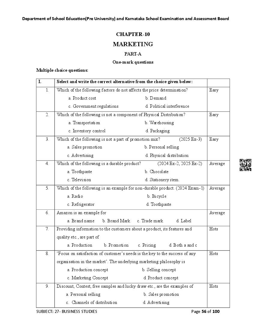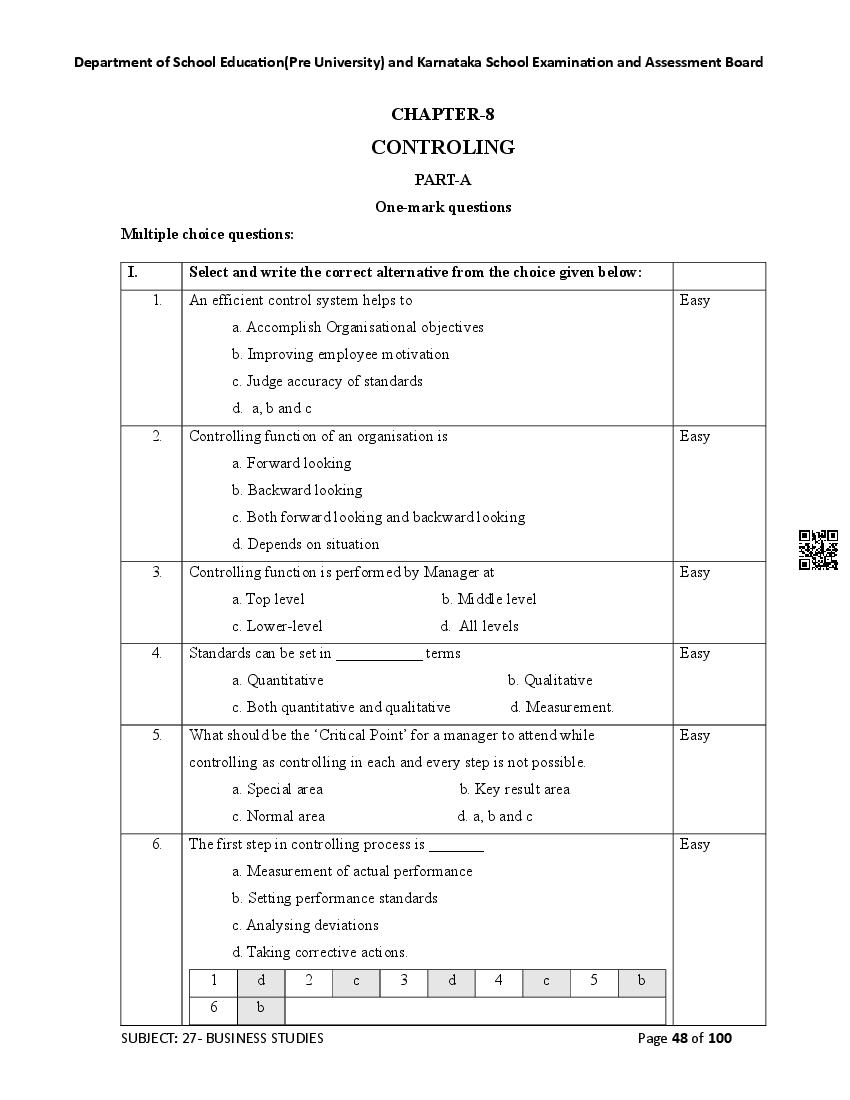 Here are the links for downloading the Business Studies Question Bank. Candidates can utilize these karnataka 12 study resources to assess their current performance levels and identify areas for improvement. This will assist students in recognizing their strengths and weaknesses, contributing to more effective learning.