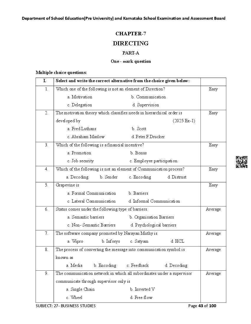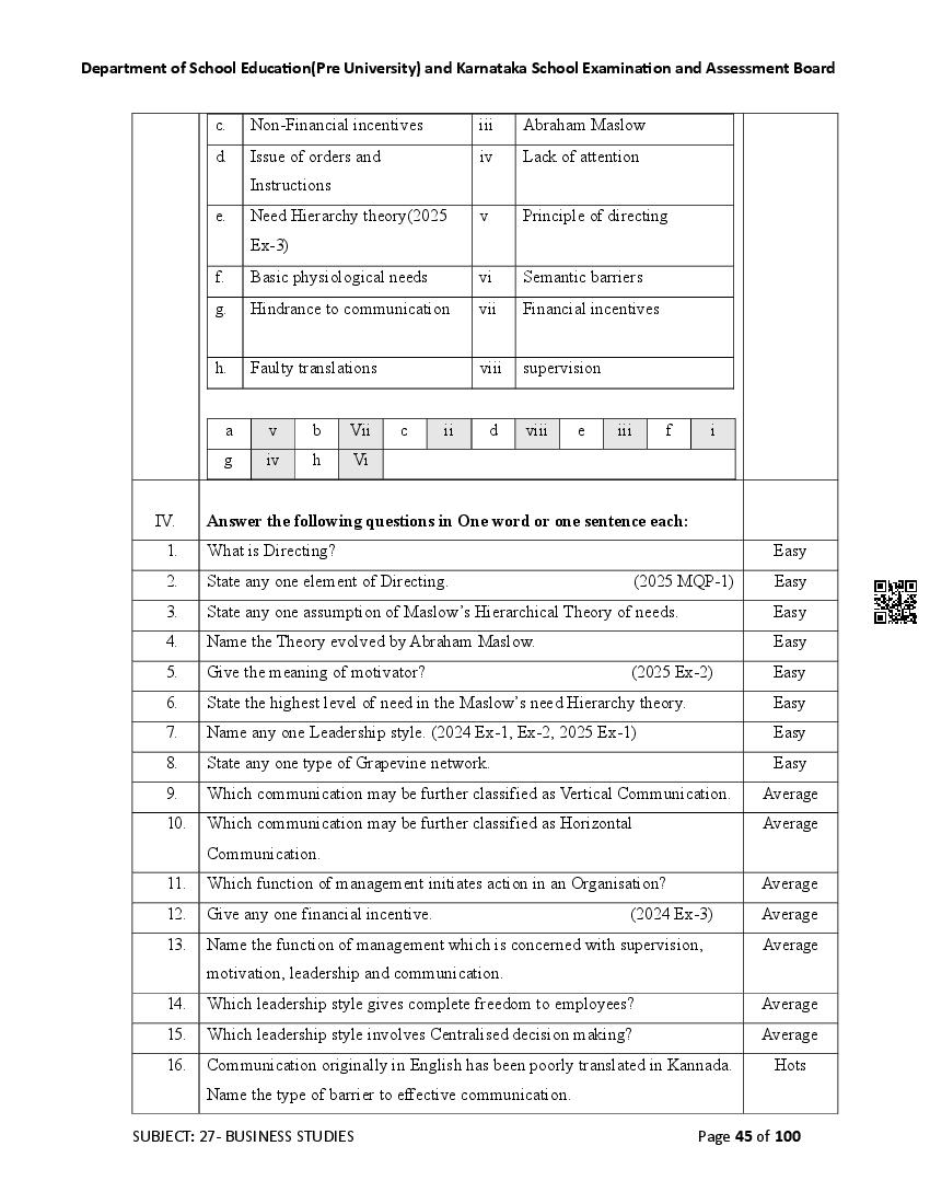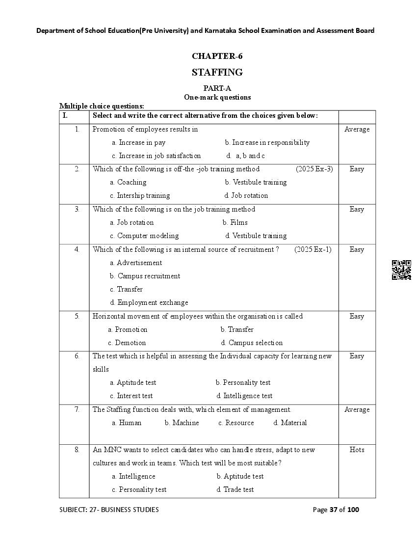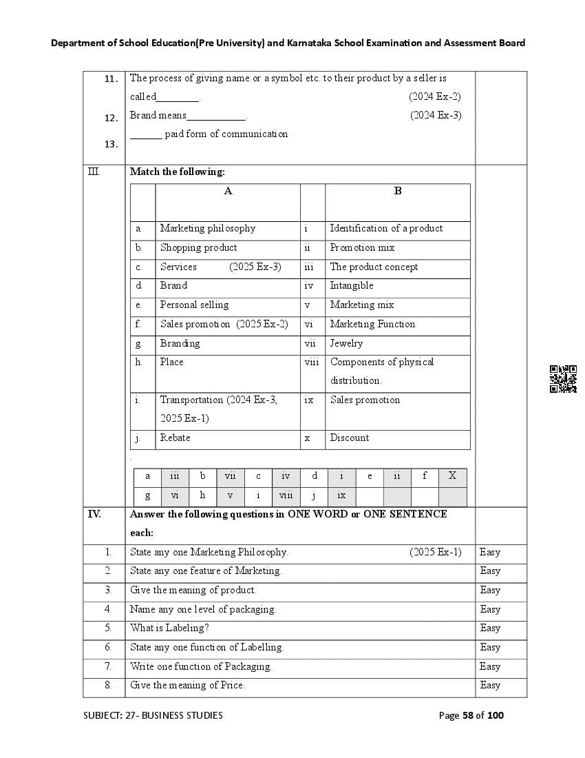 Here are the links for downloading the Business Studies Question Bank. Candidates can utilize these karnataka 12 study resources to assess their current performance levels and identify areas for improvement. This will assist students in recognizing their strengths and weaknesses, contributing to more effective learning.