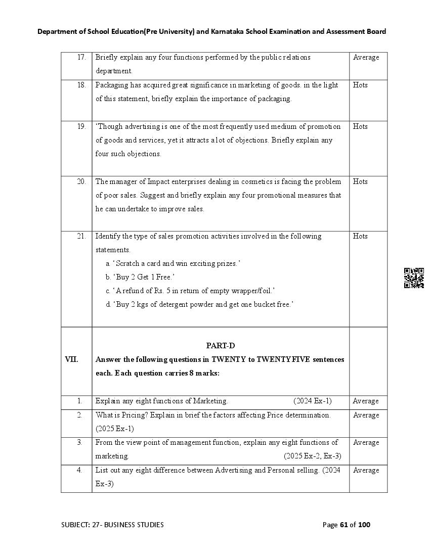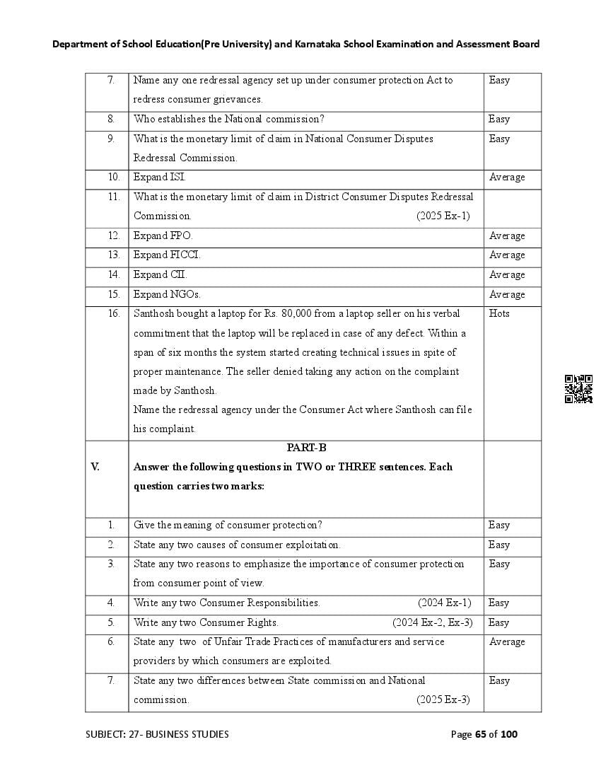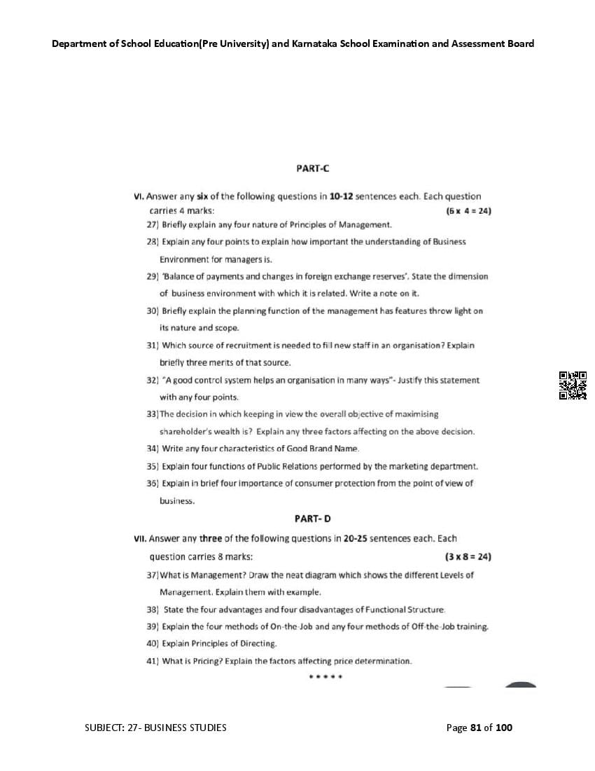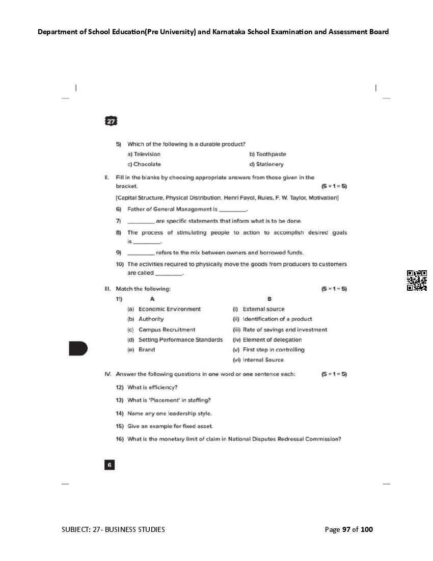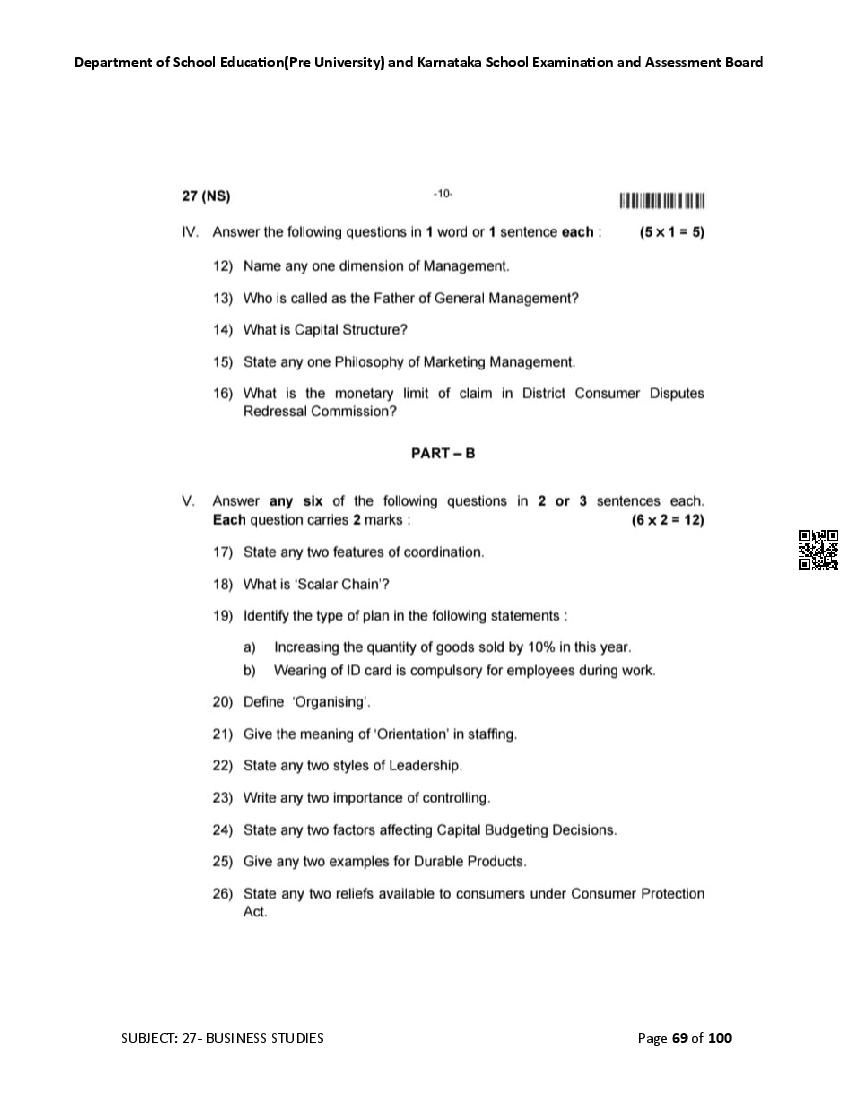 Karnataka State Board II PUC Business Studies Question Bank is available for download in PDF format. Simply click the download option to save the file. We recommend that students solve the provided Business Studies question bank to improve their exam scores and plan their preparation strategies effectively.