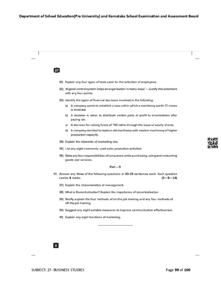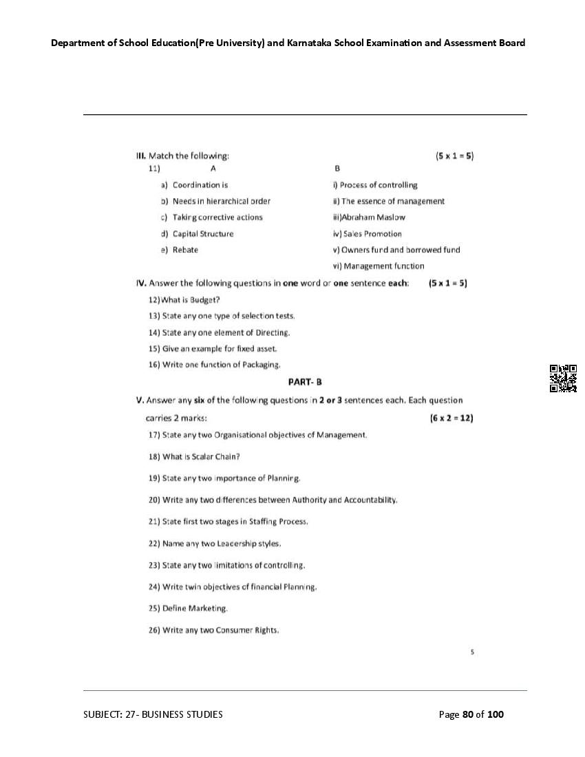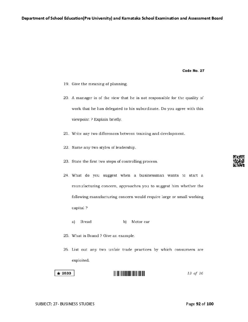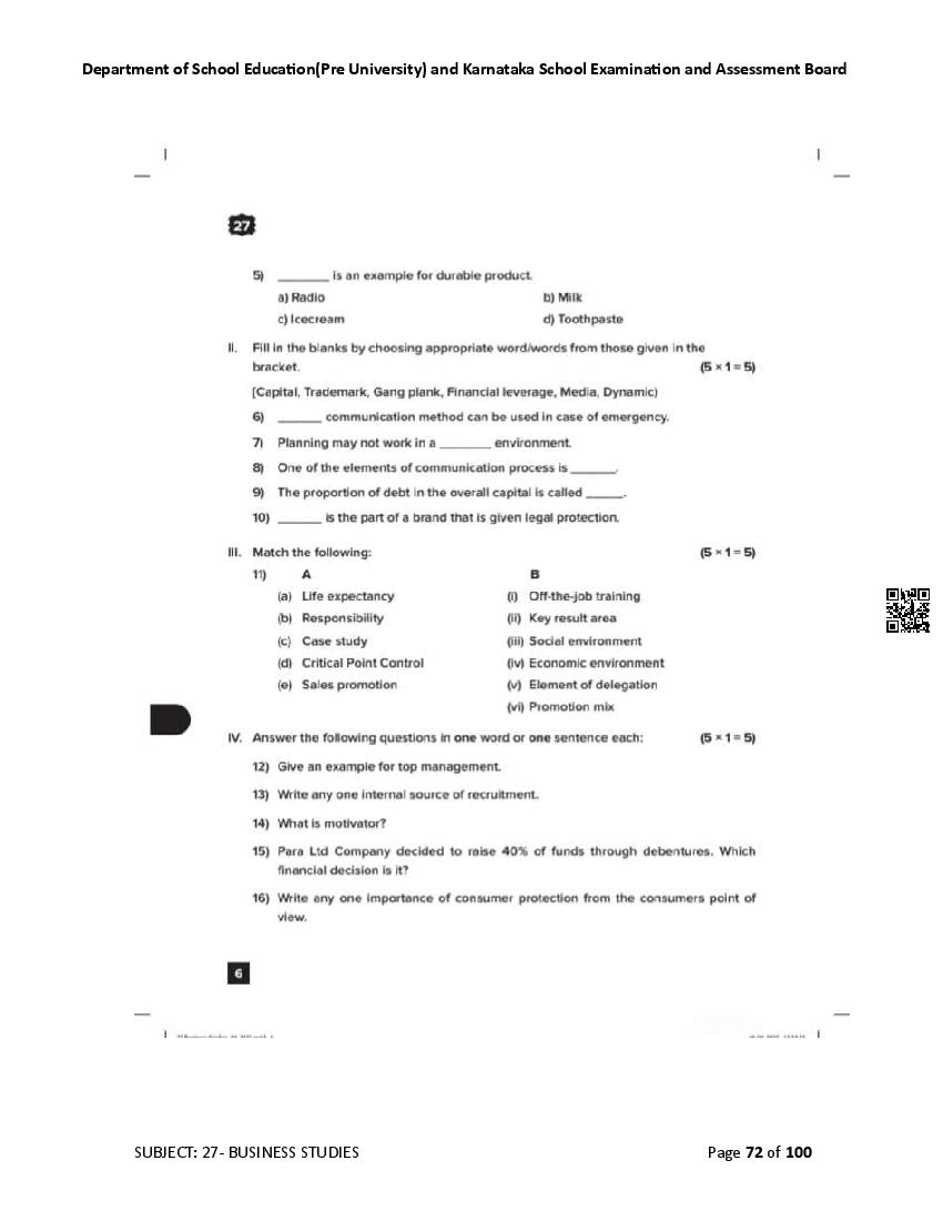 Karnataka State Board II PUC Business Studies Question Bank is available for download in PDF format. Simply click the download option to save the file. We recommend that students solve the provided Business Studies question bank to improve their exam scores and plan their preparation strategies effectively.
