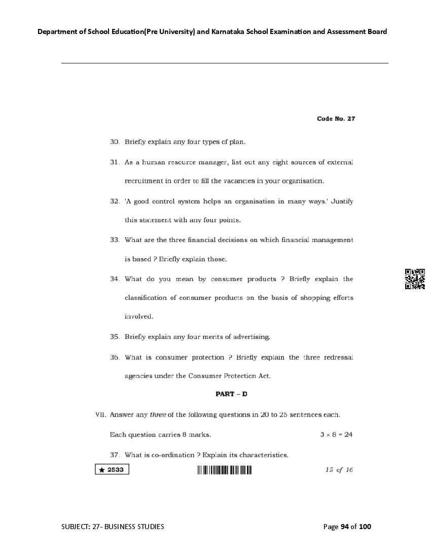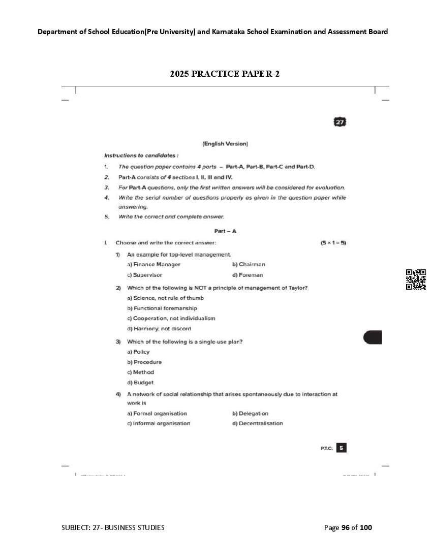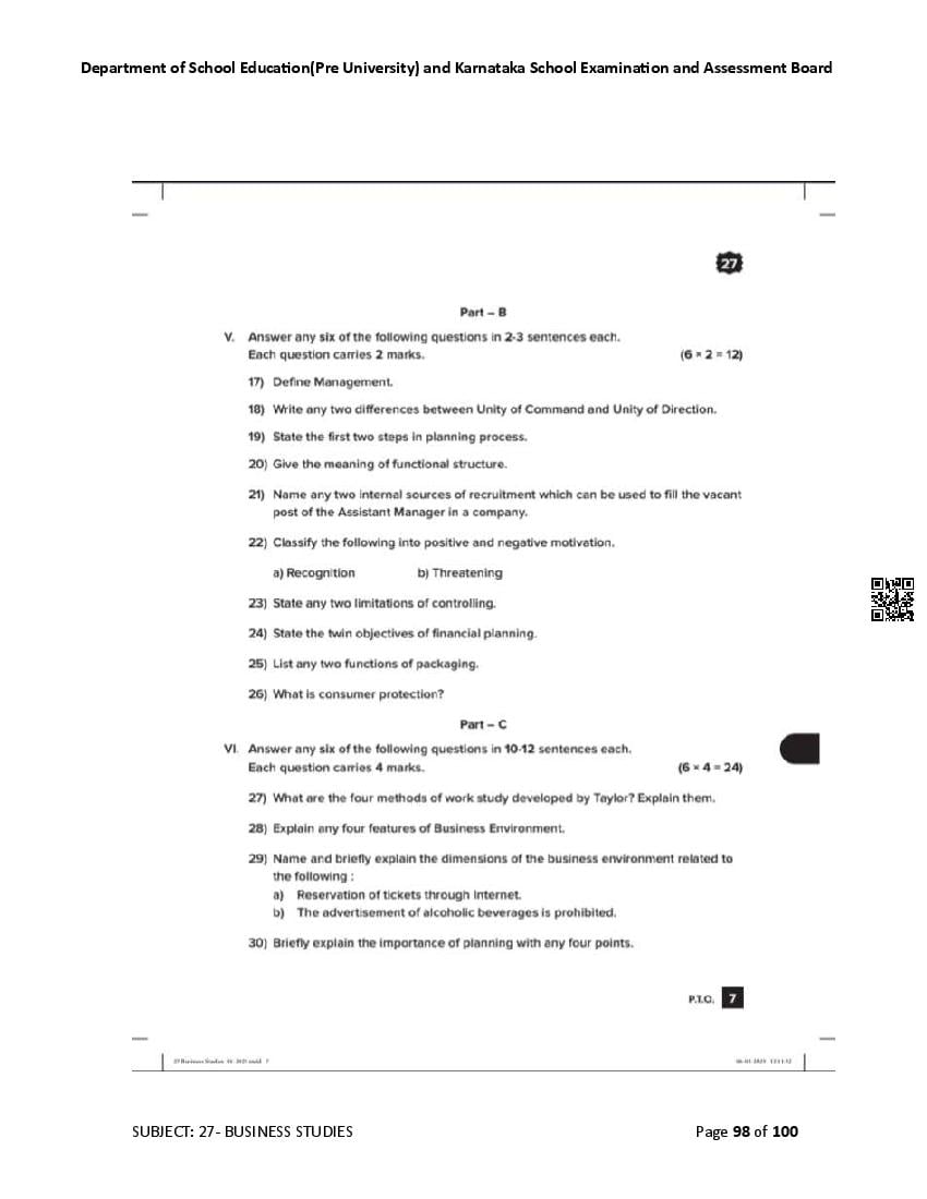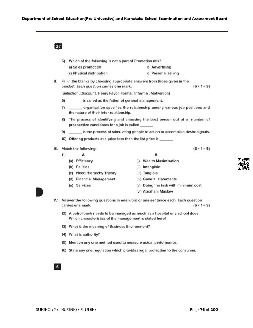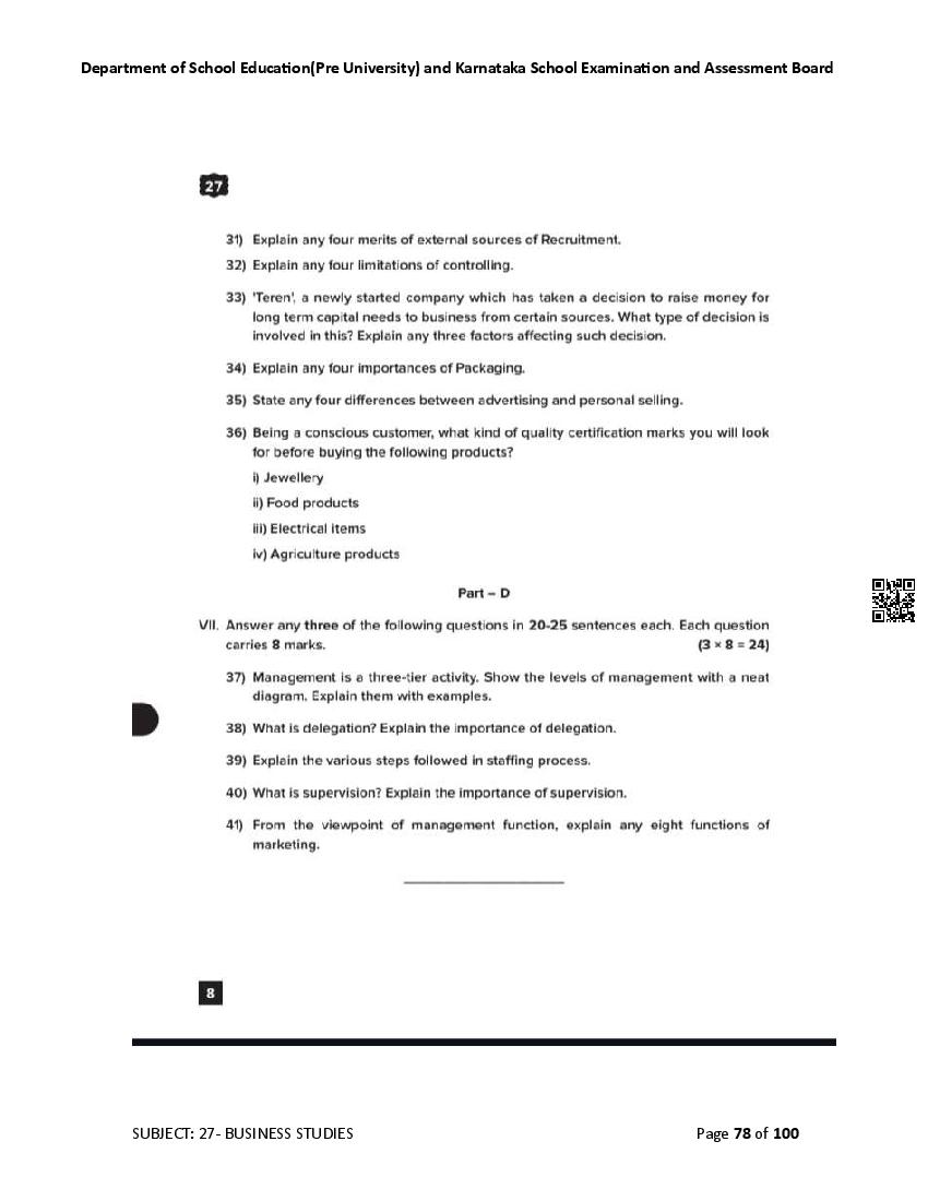 Karnataka State Board II PUC Business Studies Question Bank is available for download in PDF format. Simply click the download option to save the file. We recommend that students solve the provided Business Studies question bank to improve their exam scores and plan their preparation strategies effectively.