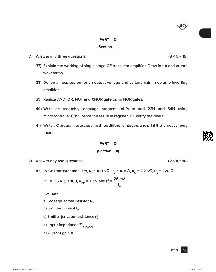Karnataka 2nd PUC Question Bank for Electronics View Download
