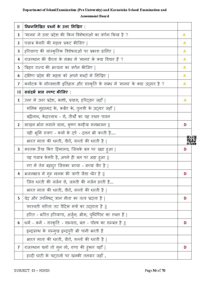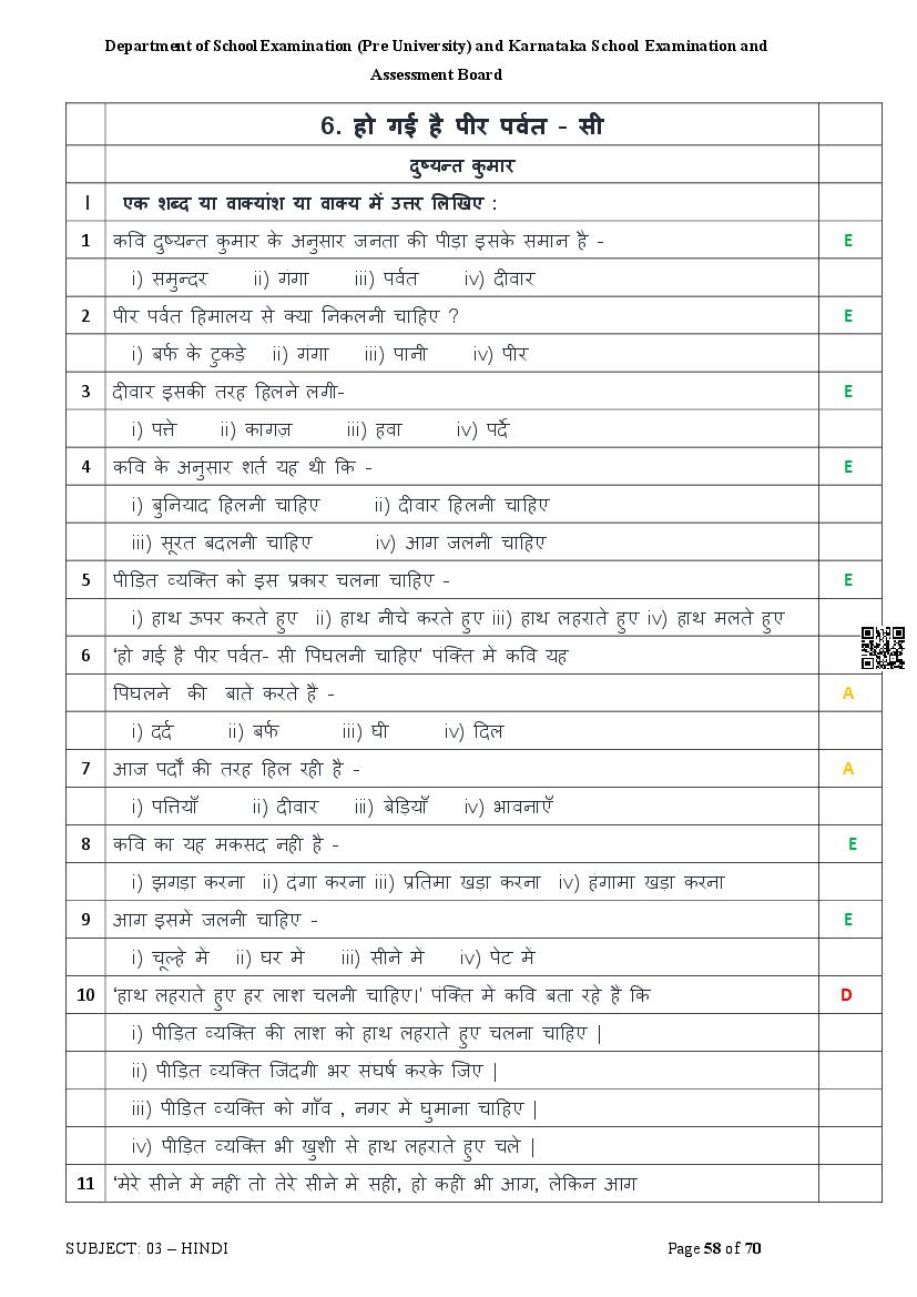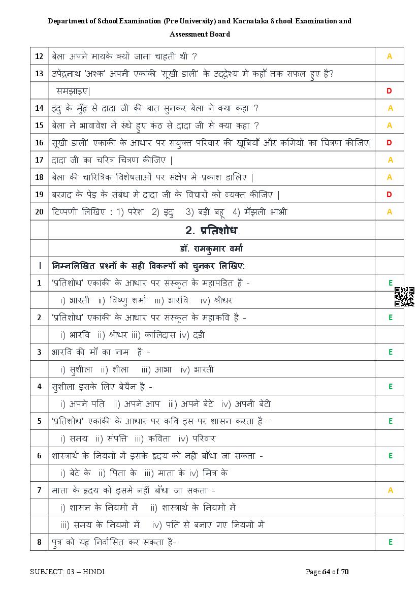 Here are the links for downloading the Hindi Question Bank. Candidates can utilize these karnataka 12 study resources to assess their current performance levels and identify areas for improvement. This will assist students in recognizing their strengths and weaknesses, contributing to more effective learning.