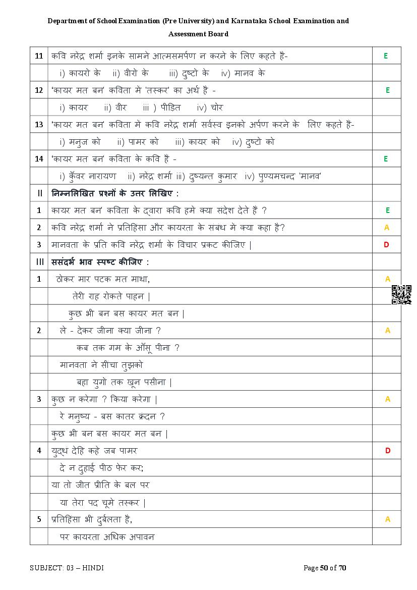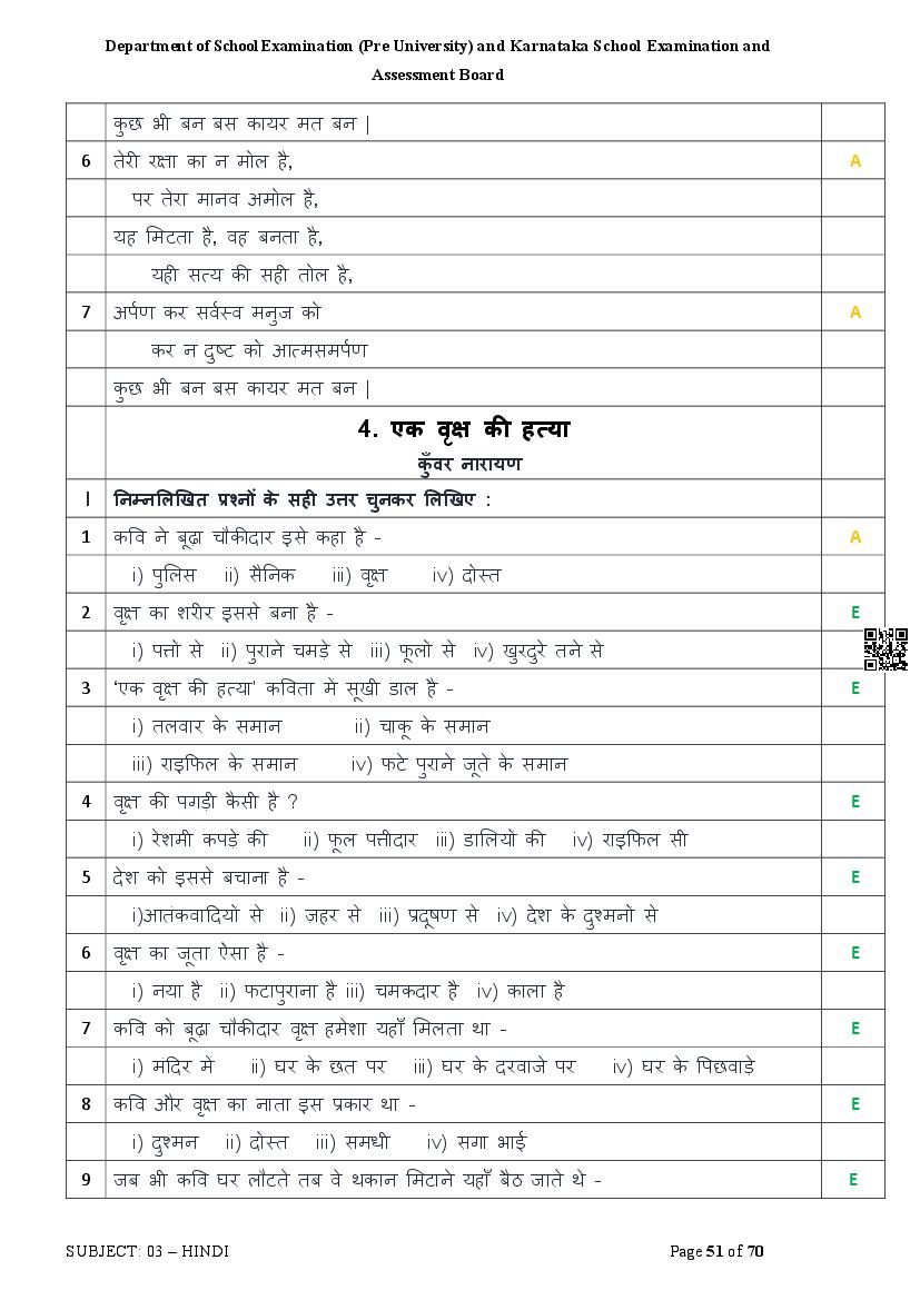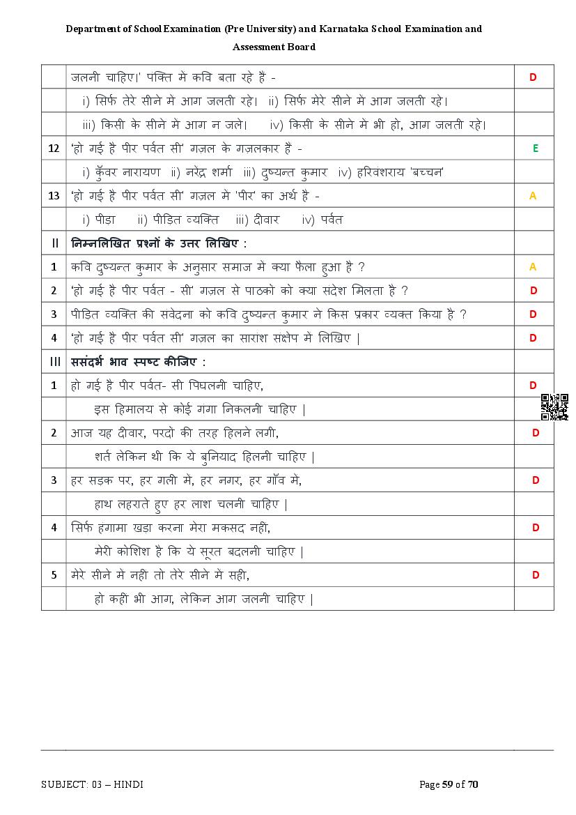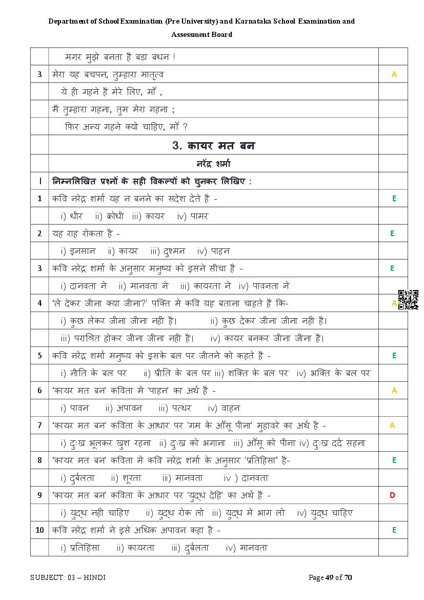 Here are the links for downloading the Hindi Question Bank. Candidates can utilize these karnataka 12 study resources to assess their current performance levels and identify areas for improvement. This will assist students in recognizing their strengths and weaknesses, contributing to more effective learning.