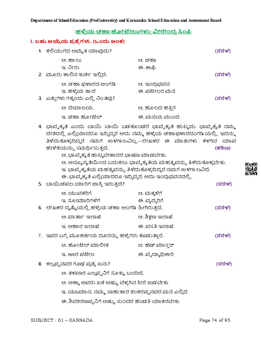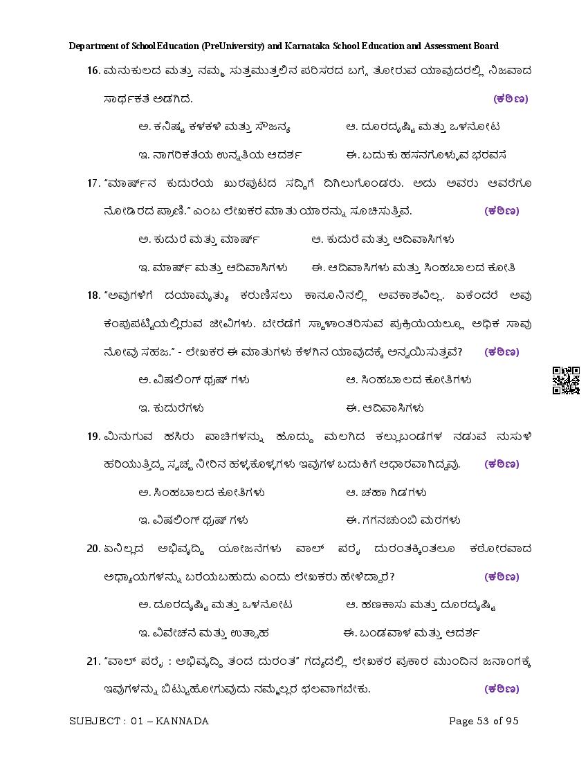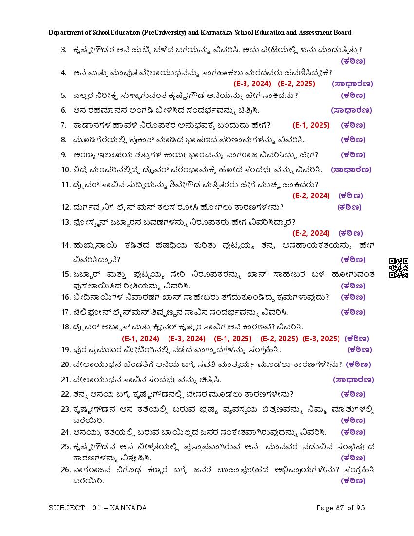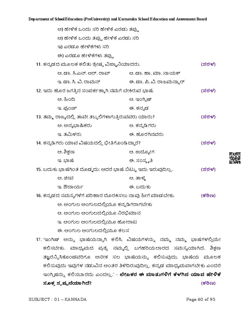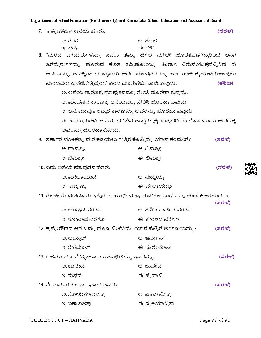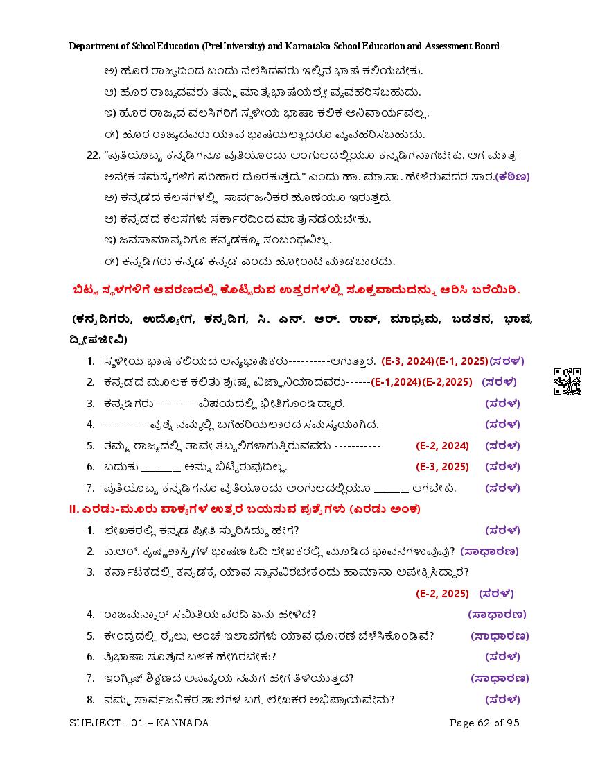 Here are the links for downloading the Kannada Question Bank. Candidates can utilize these karnataka 12 study resources to assess their current performance levels and identify areas for improvement. This will assist students in recognizing their strengths and weaknesses, contributing to more effective learning.