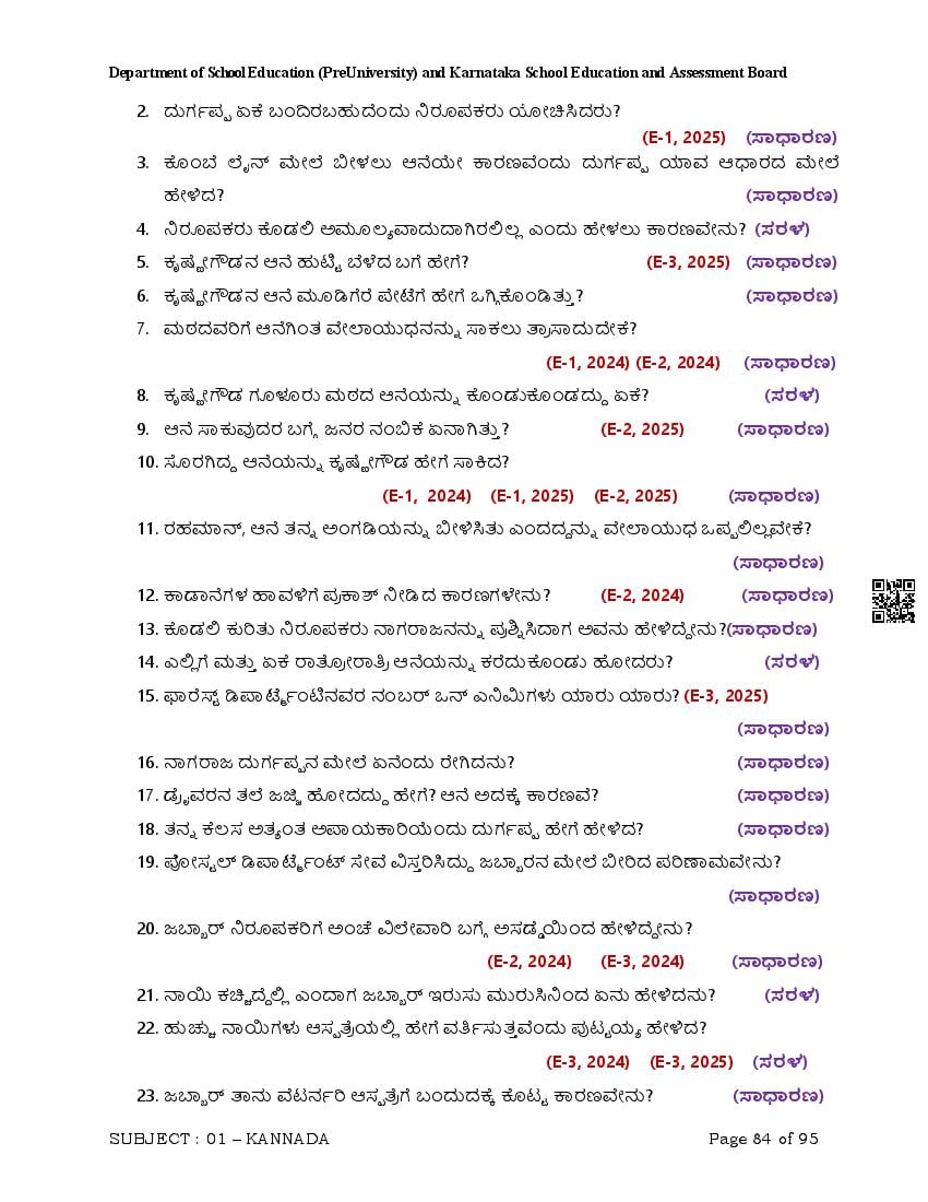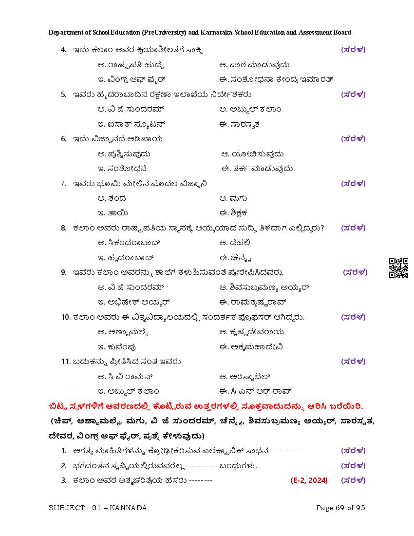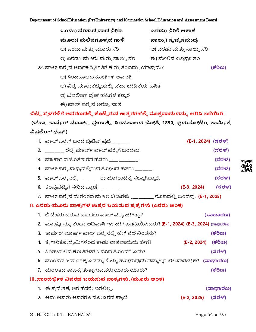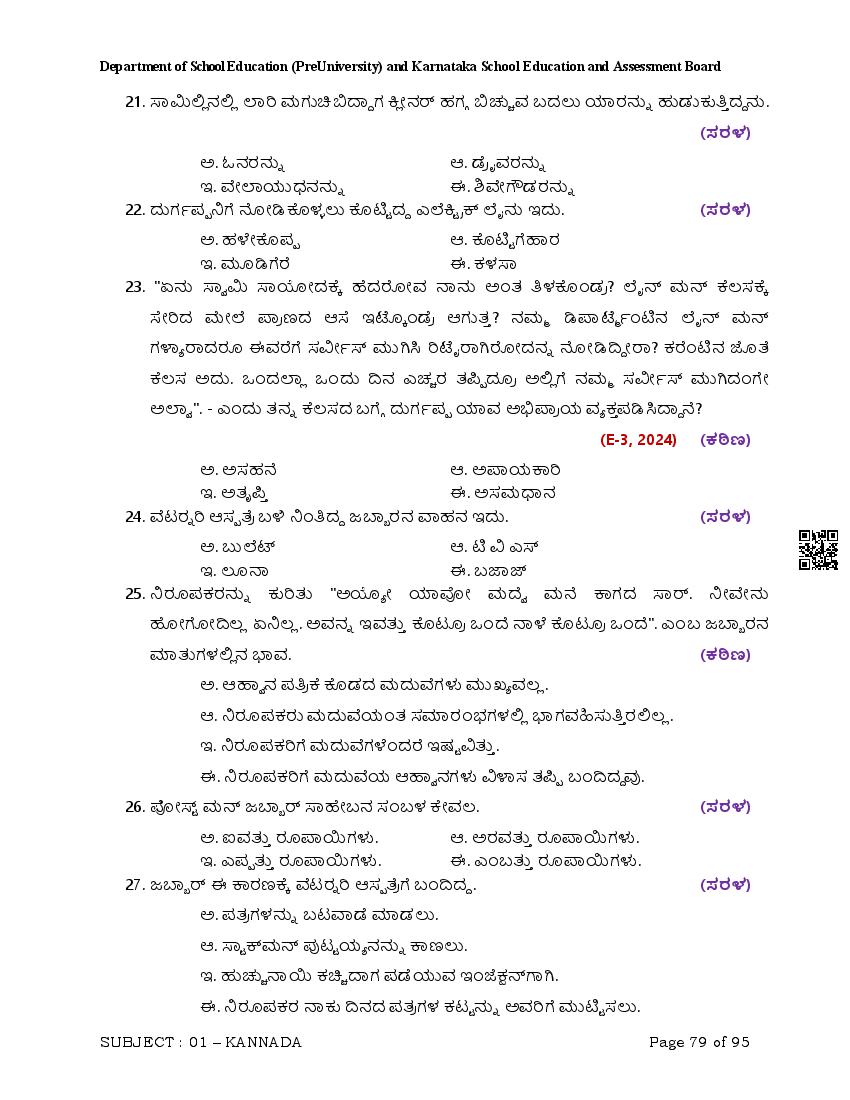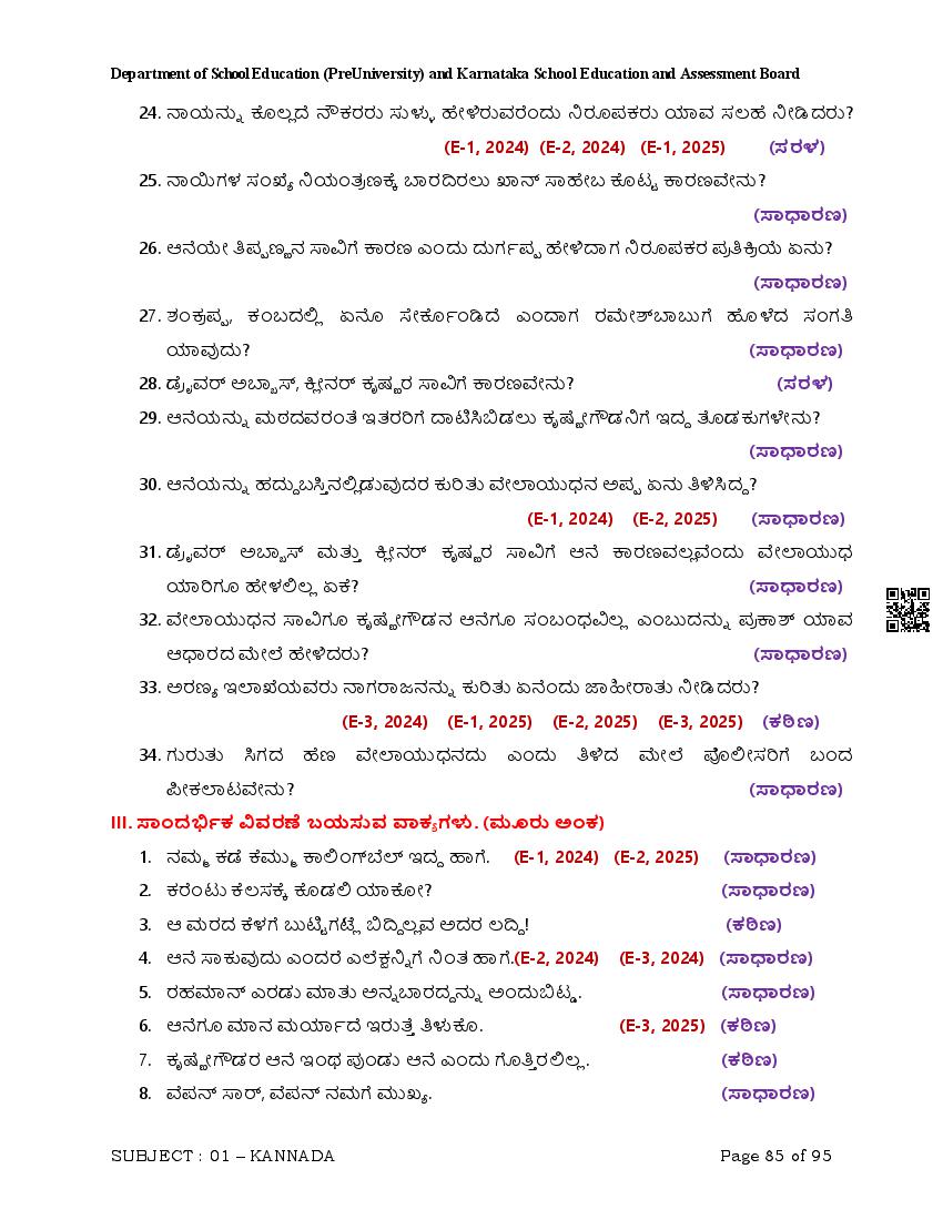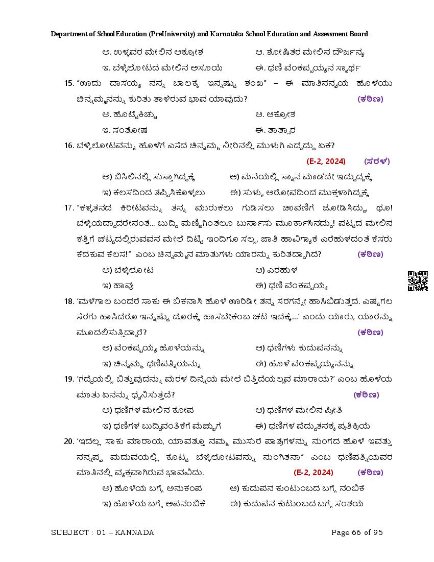 Here are the links for downloading the Kannada Question Bank. Candidates can utilize these karnataka 12 study resources to assess their current performance levels and identify areas for improvement. This will assist students in recognizing their strengths and weaknesses, contributing to more effective learning.