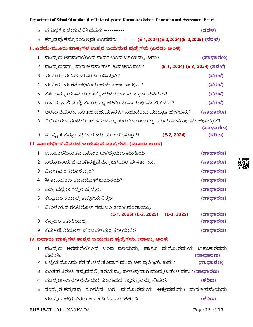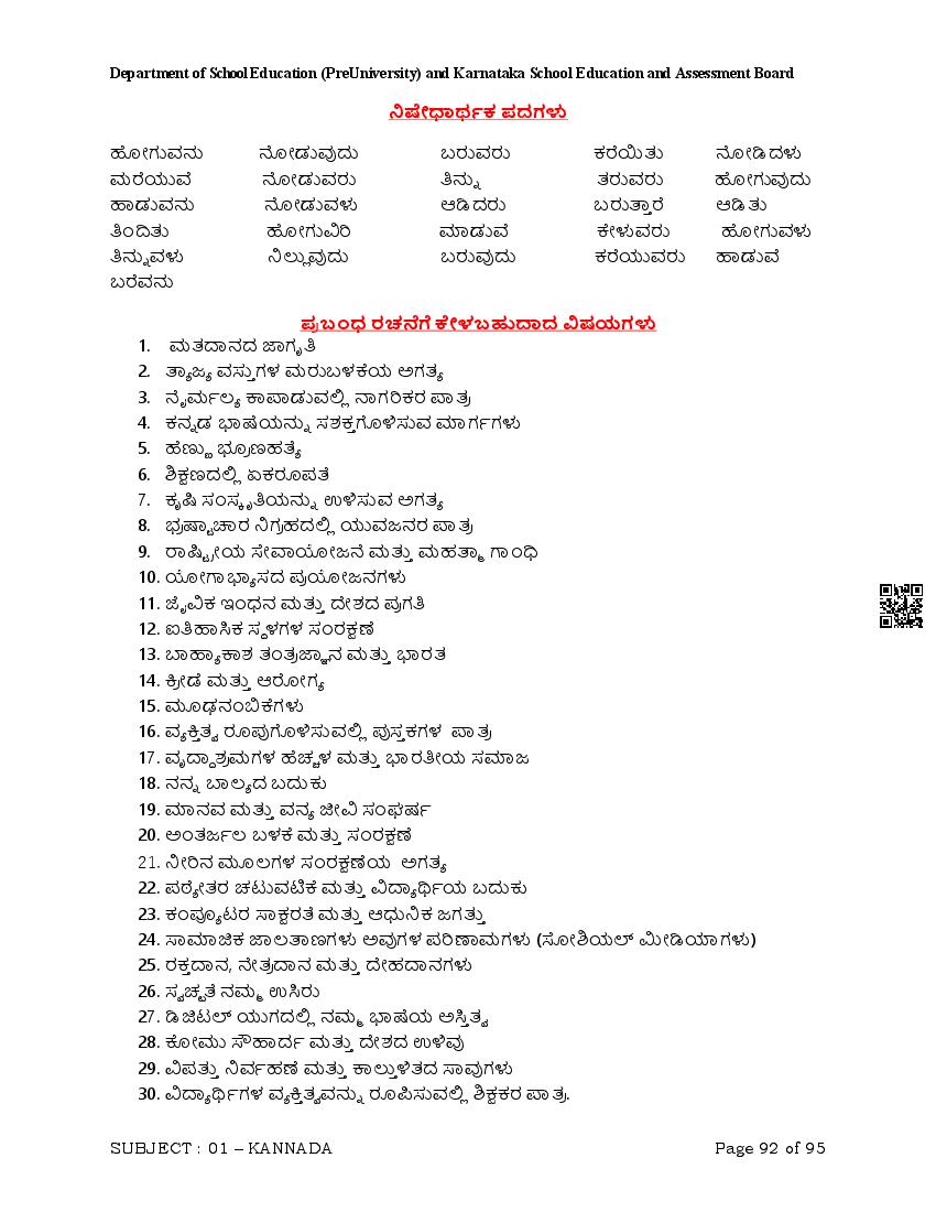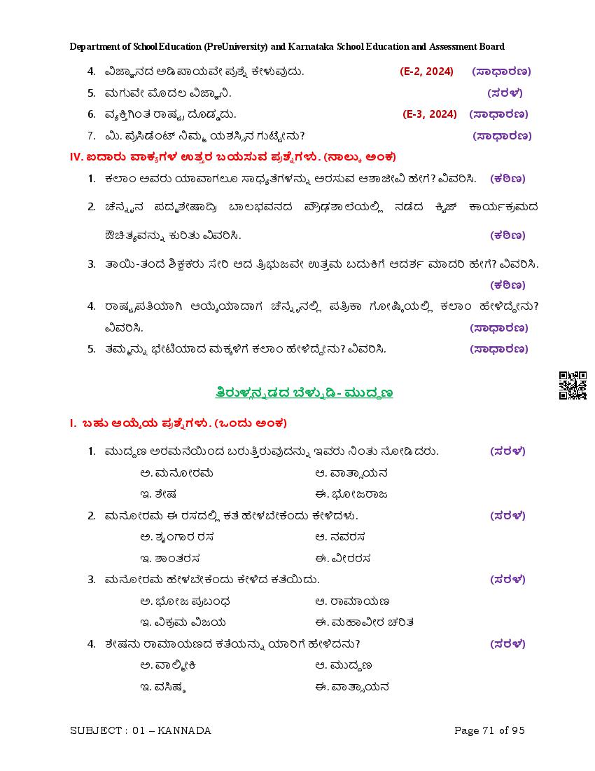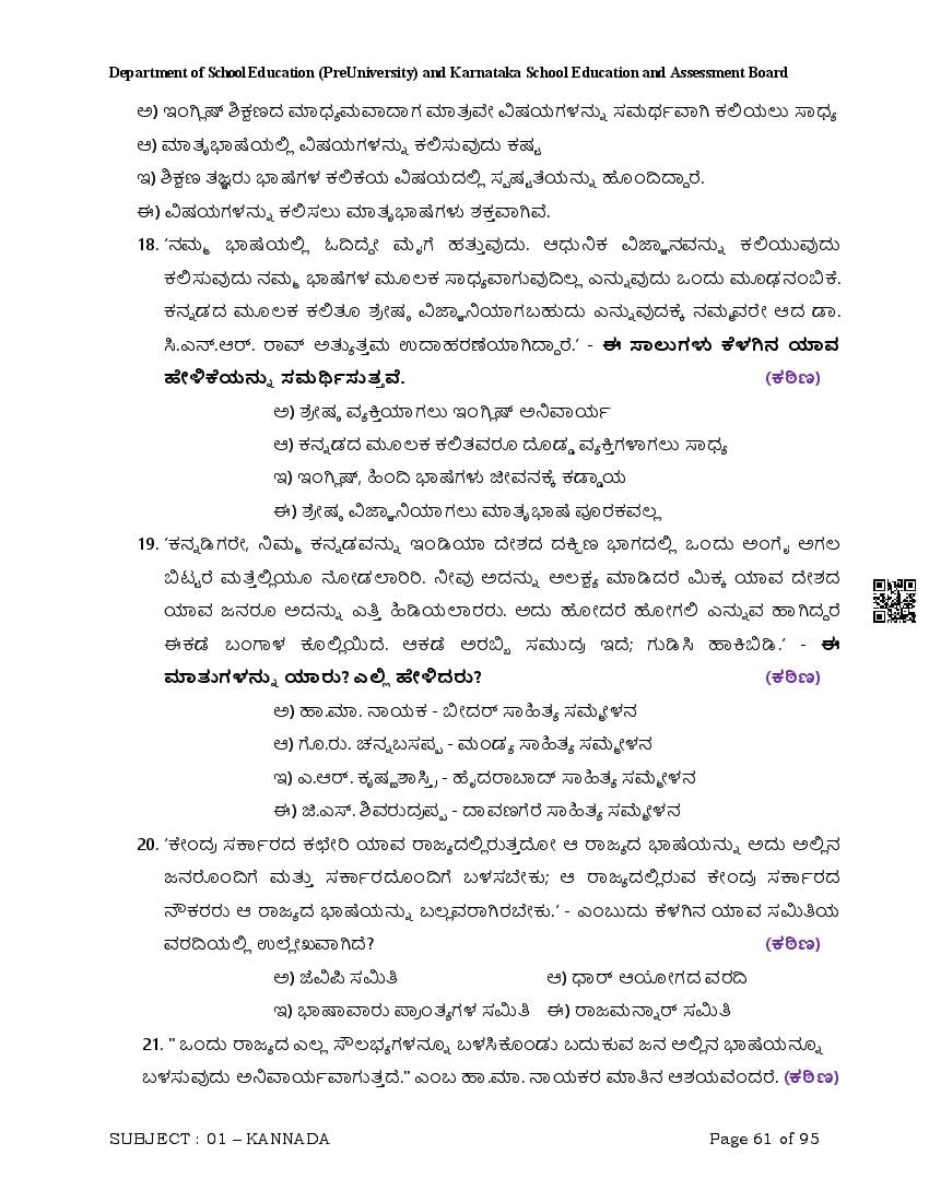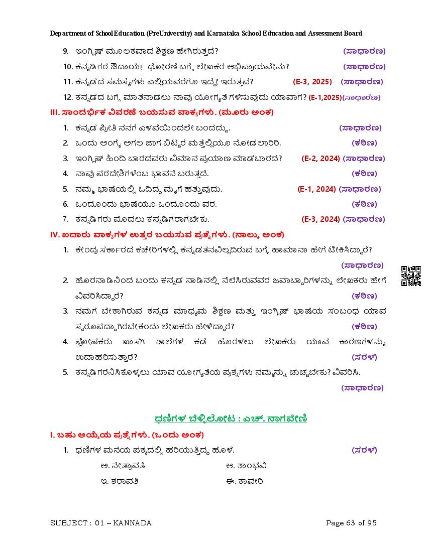 Karnataka 2nd PUC Question Bank for Kannada View Download