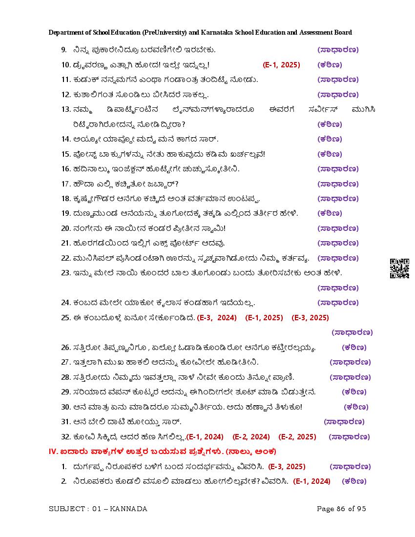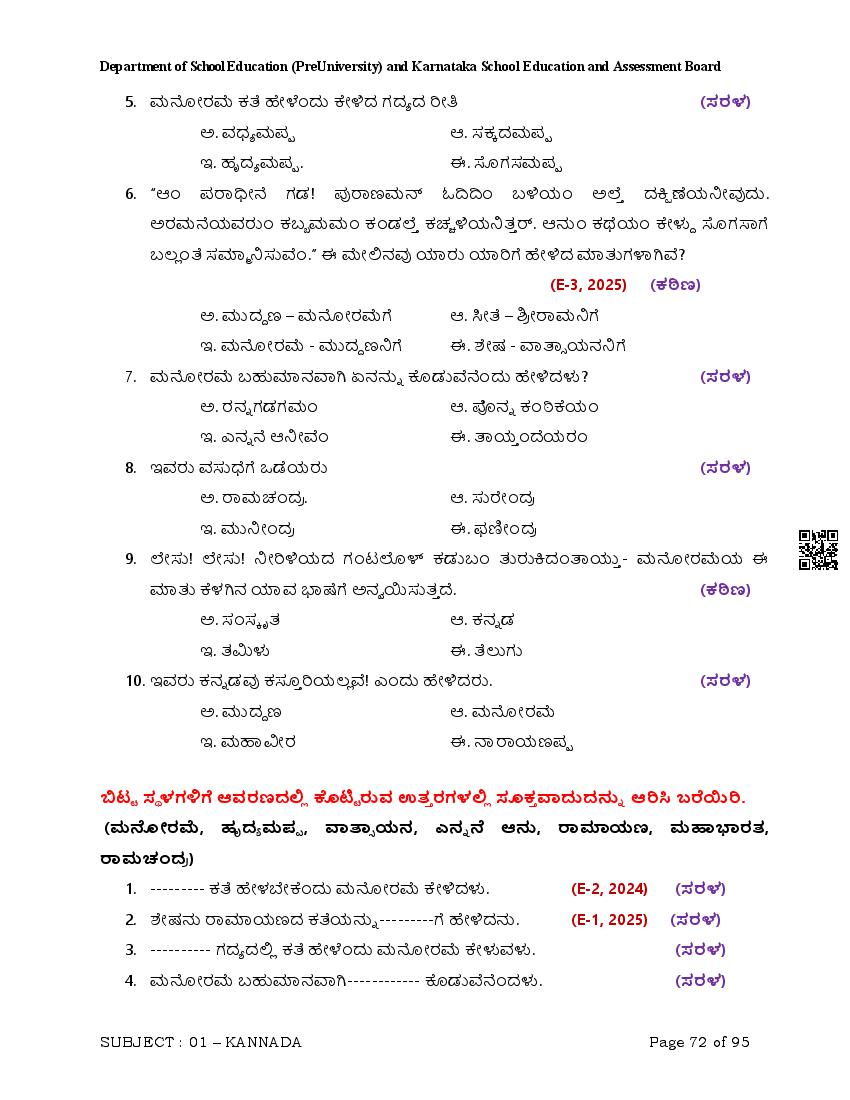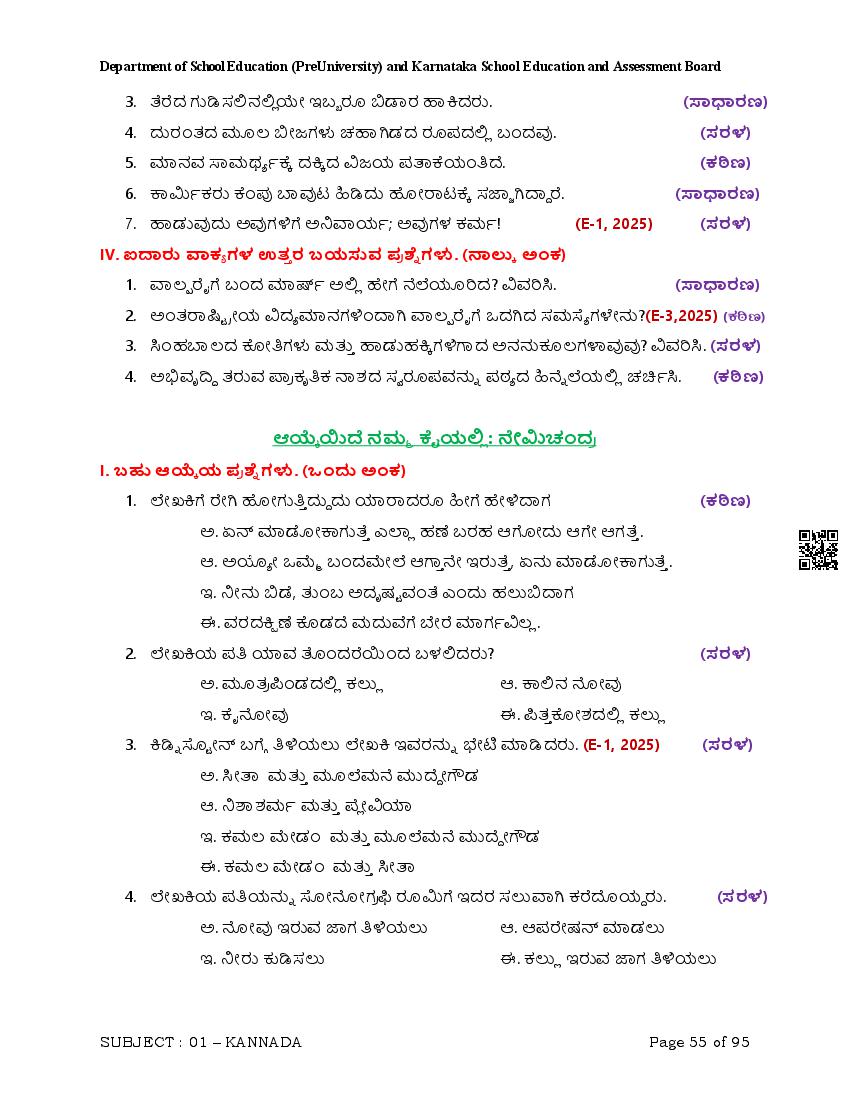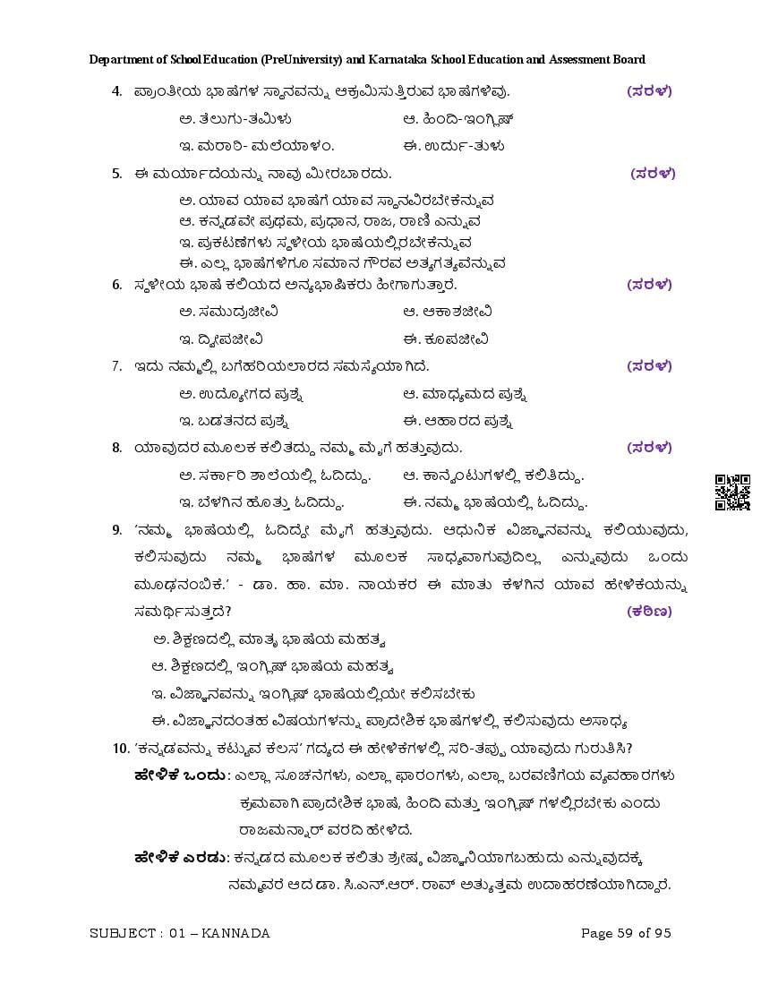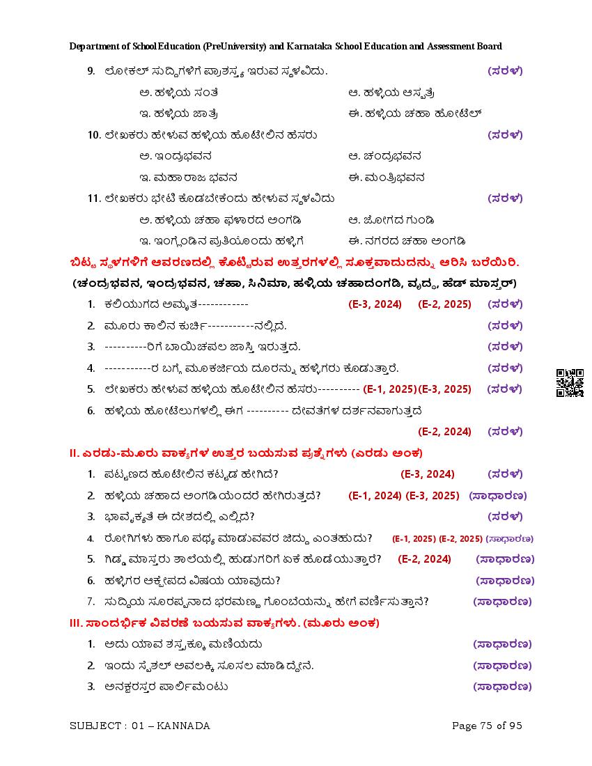 Karnataka 2nd PUC Question Bank for Kannada View Download