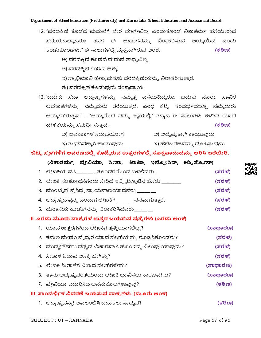 Karnataka State Board II PUC Kannada Question Bank is available for download in PDF format. Simply click the download option to save the file. We recommend that students solve the provided Kannada question bank to improve their exam scores and plan their preparation strategies effectively.