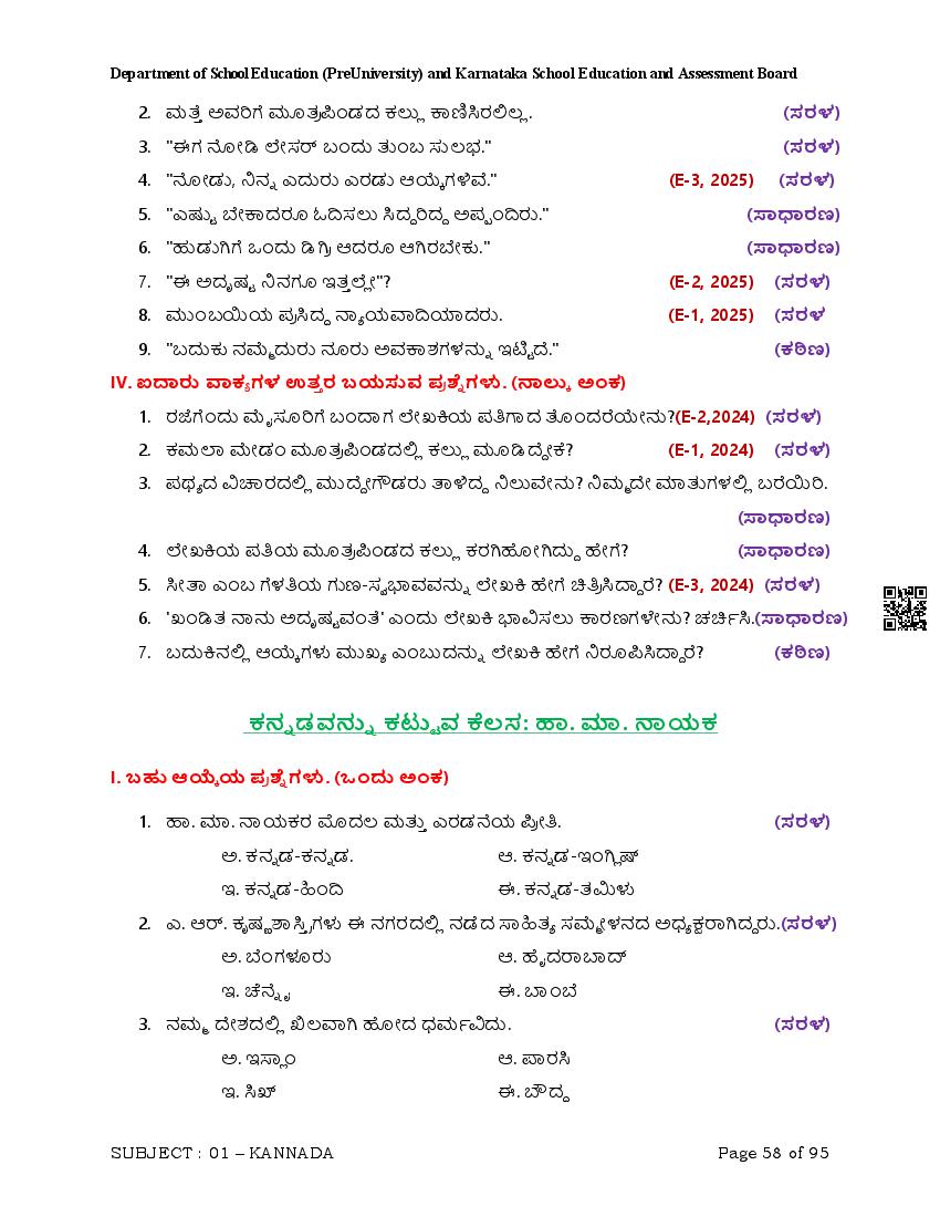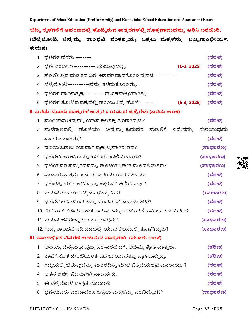 Karnataka II PUC Kannada Question Bank