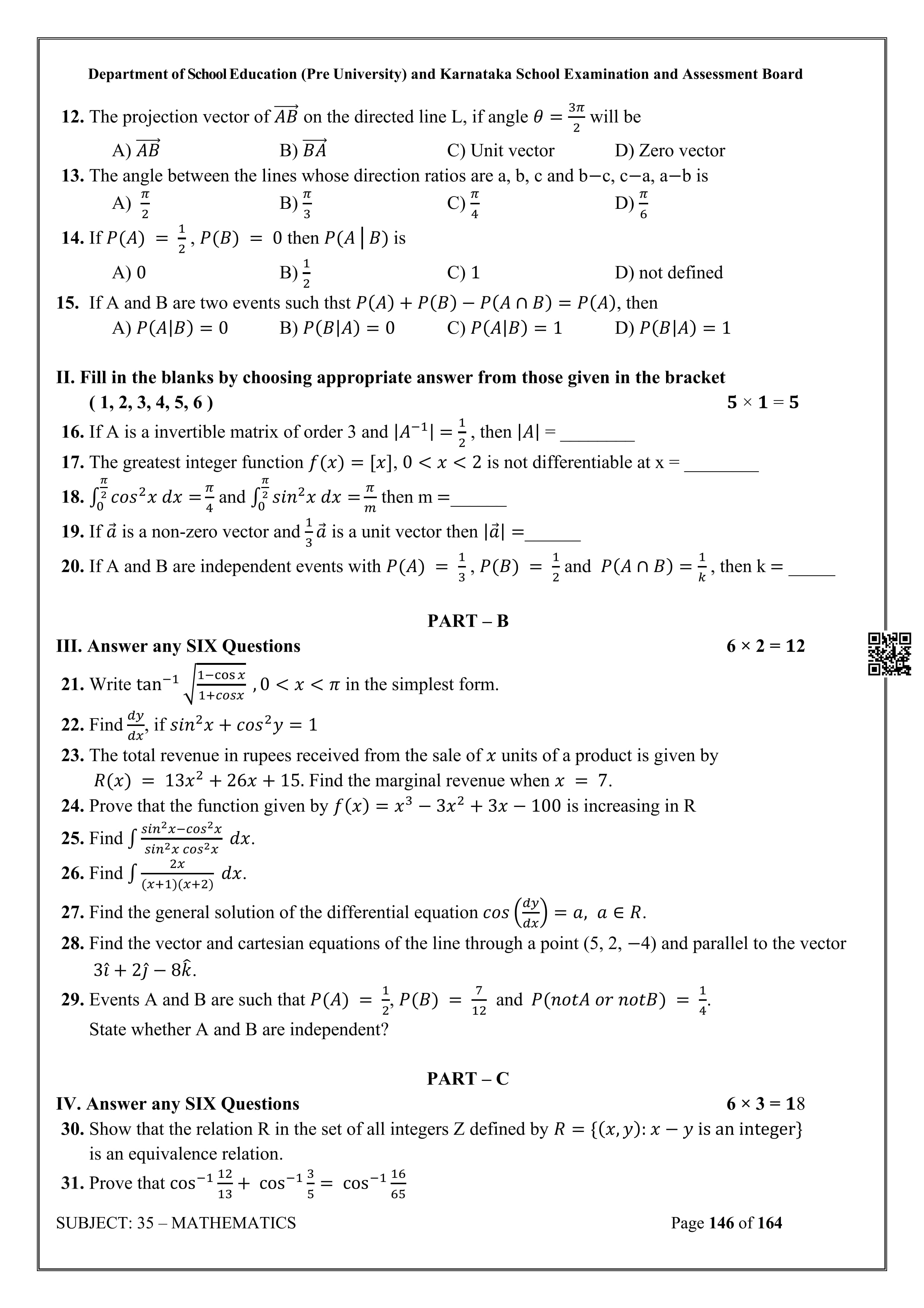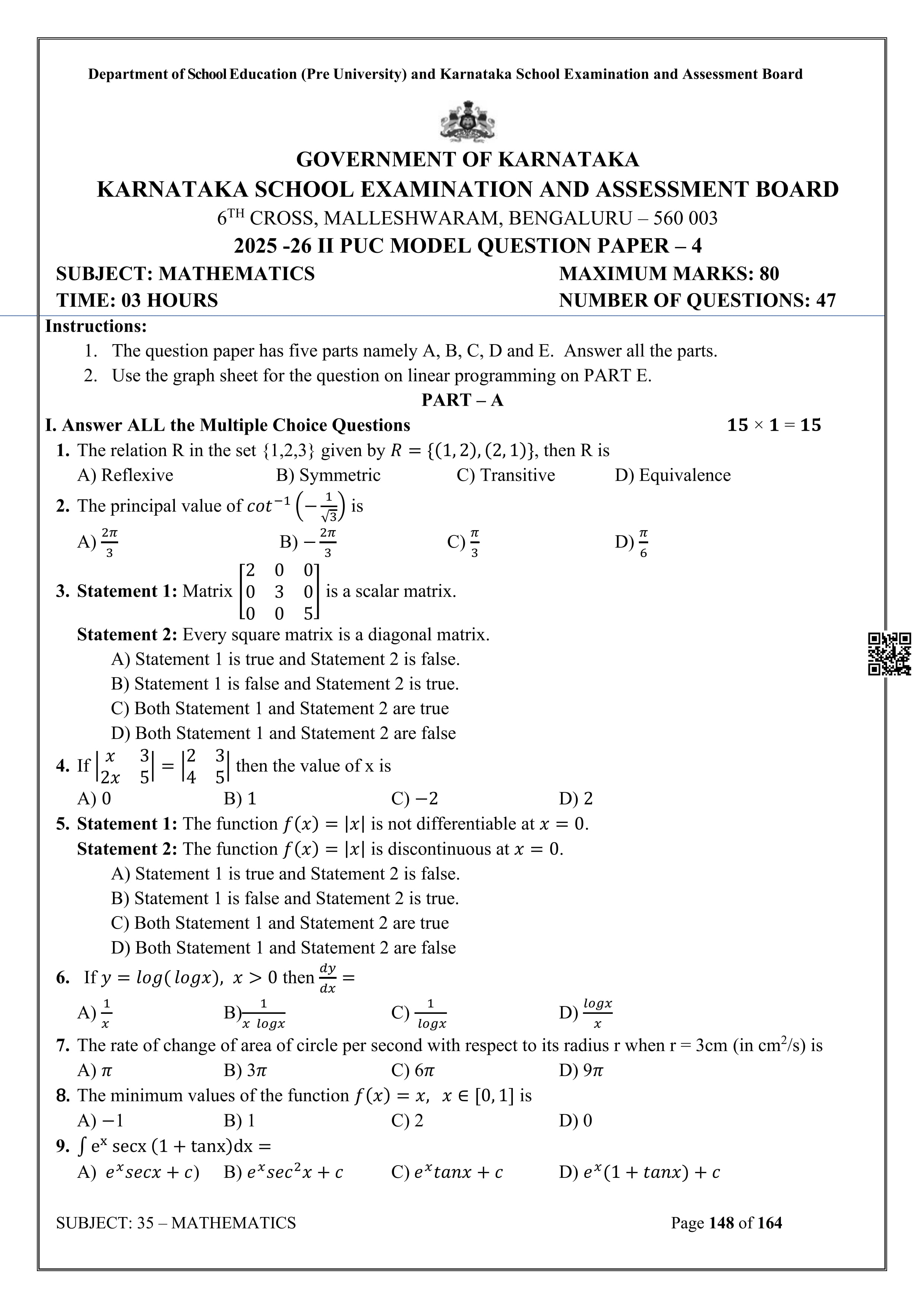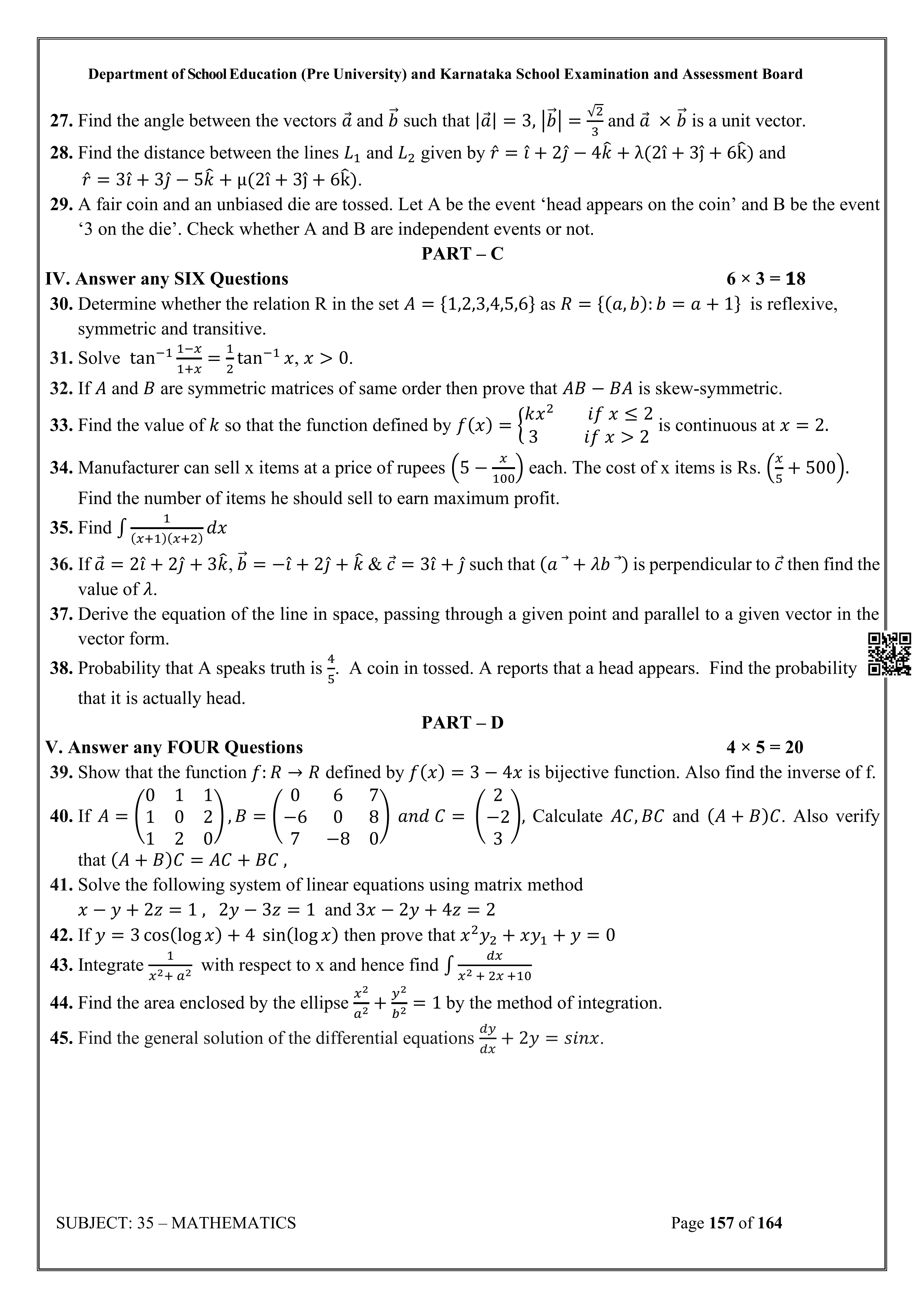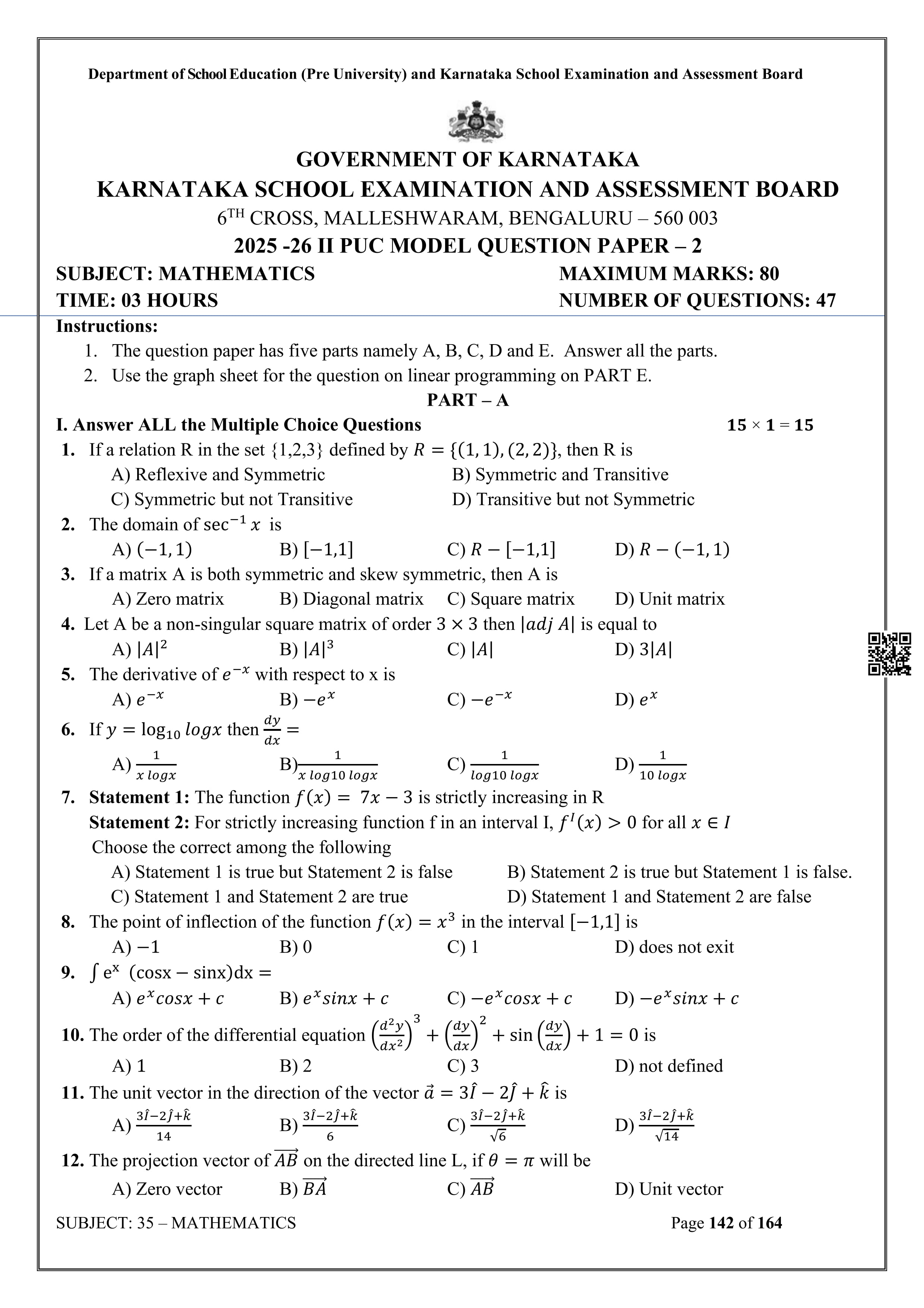 Karnataka State Board II PUC Mathematics Question Bank is available for download in PDF format. Simply click the download option to save the file. We recommend that students solve the provided Mathematics question bank to improve their exam scores and plan their preparation strategies effectively.