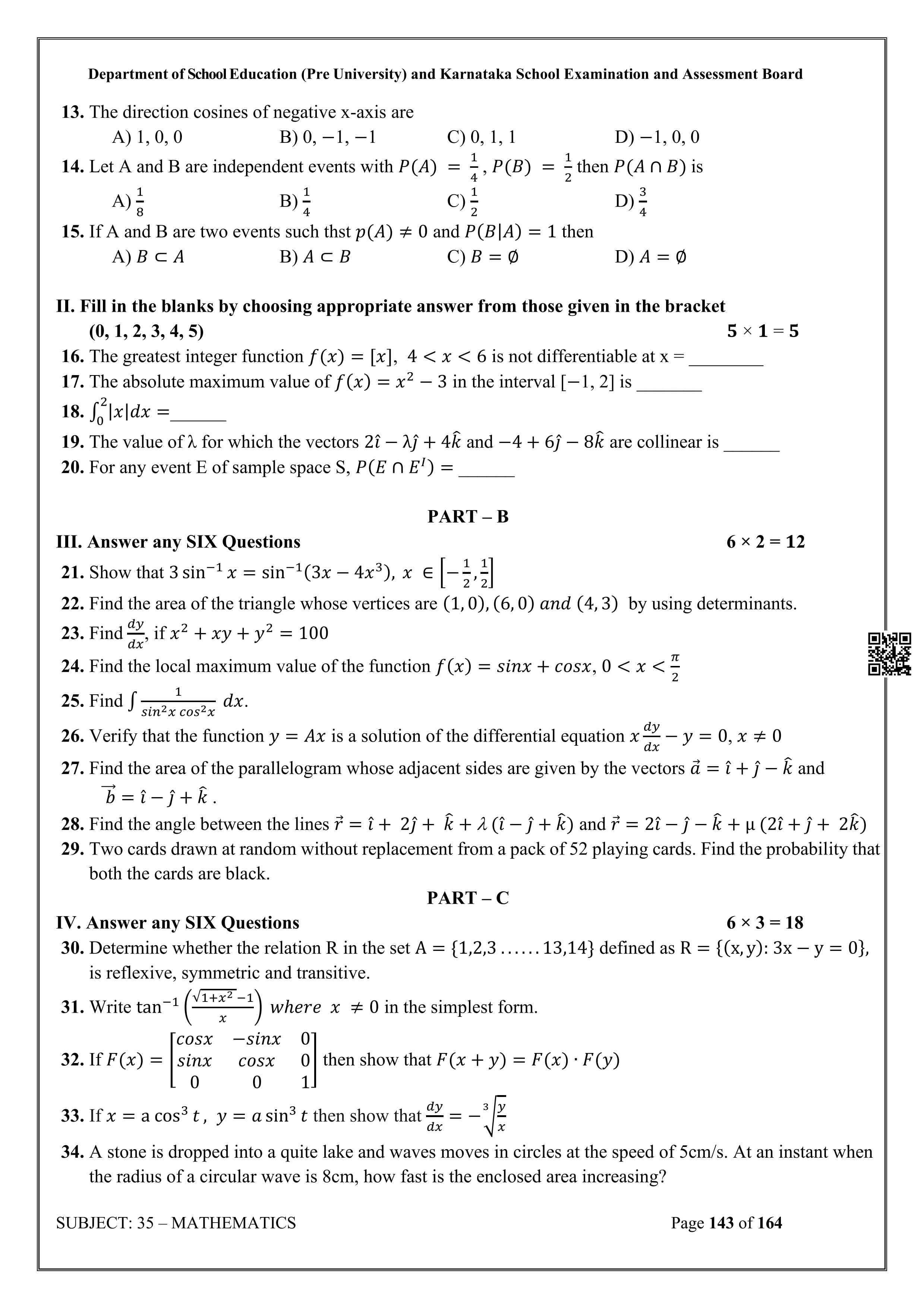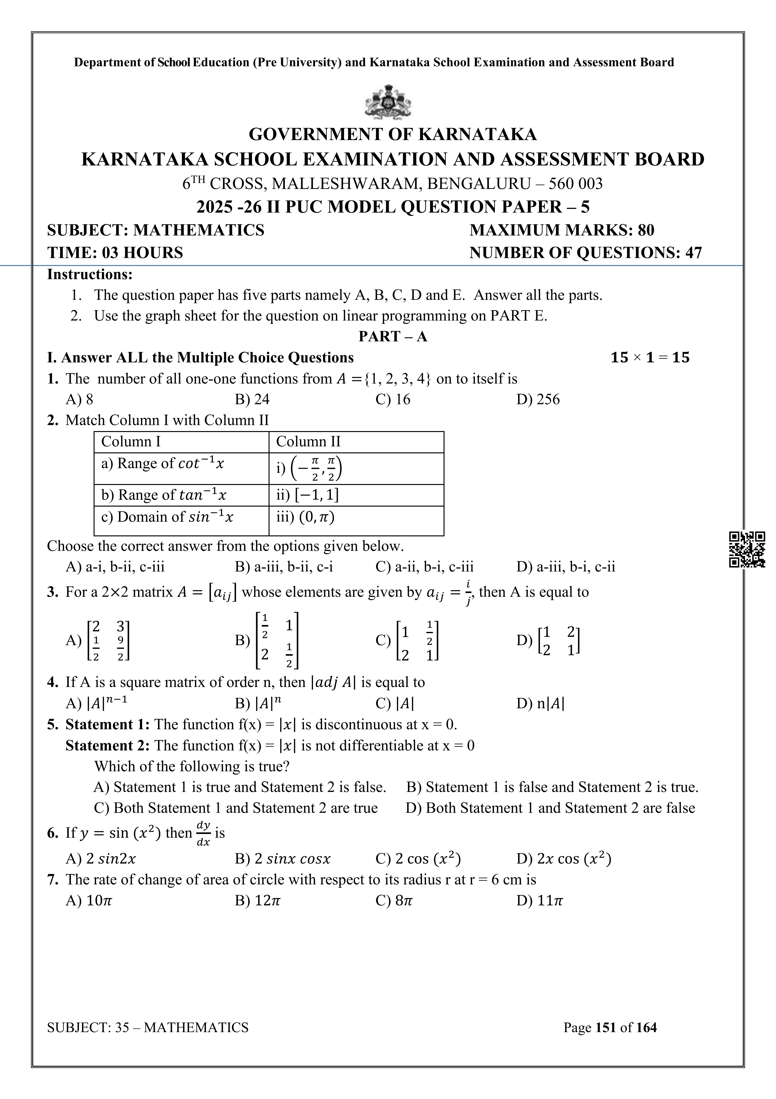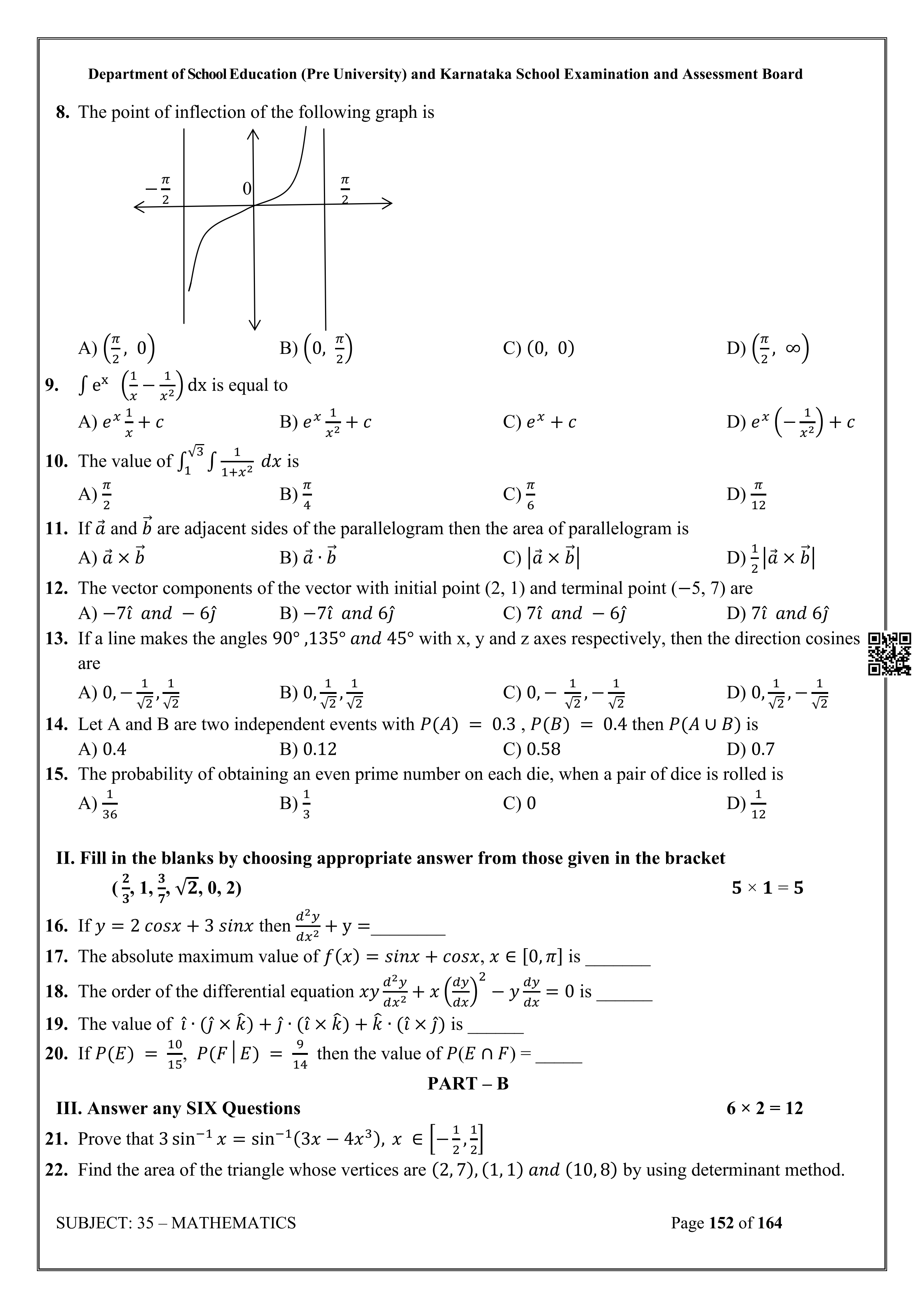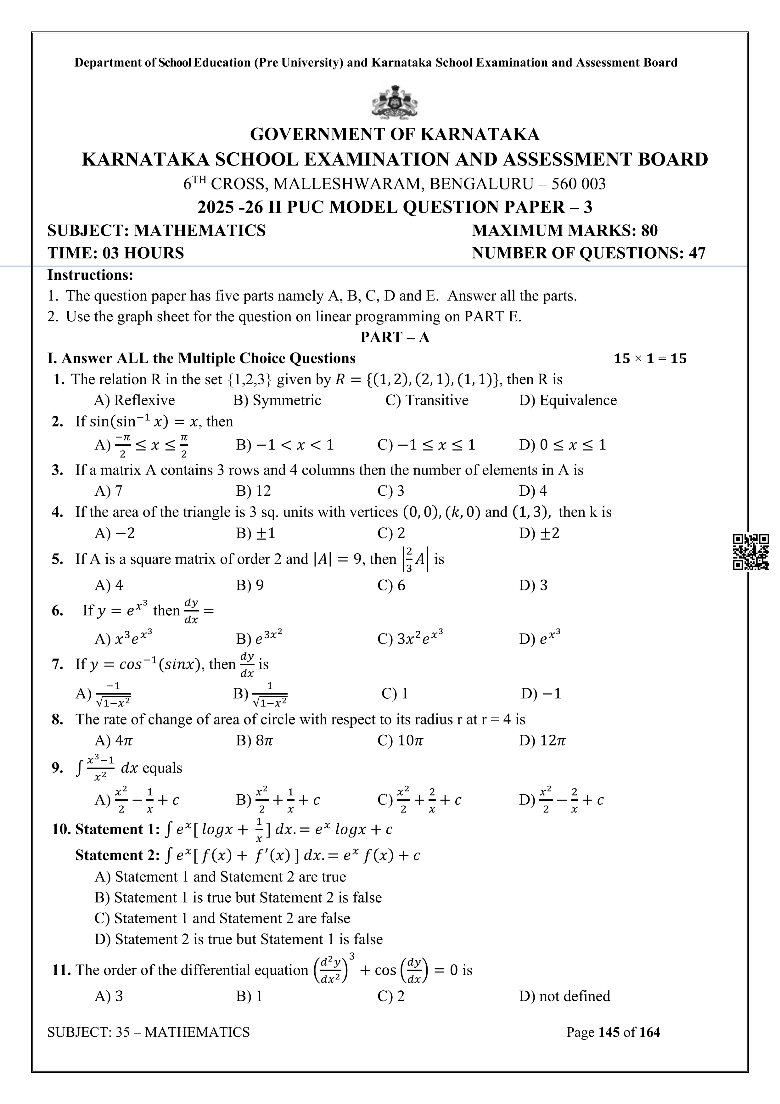 Karnataka State Board II PUC Mathematics Question Bank is available for download in PDF format. Simply click the download option to save the file. We recommend that students solve the provided Mathematics question bank to improve their exam scores and plan their preparation strategies effectively.