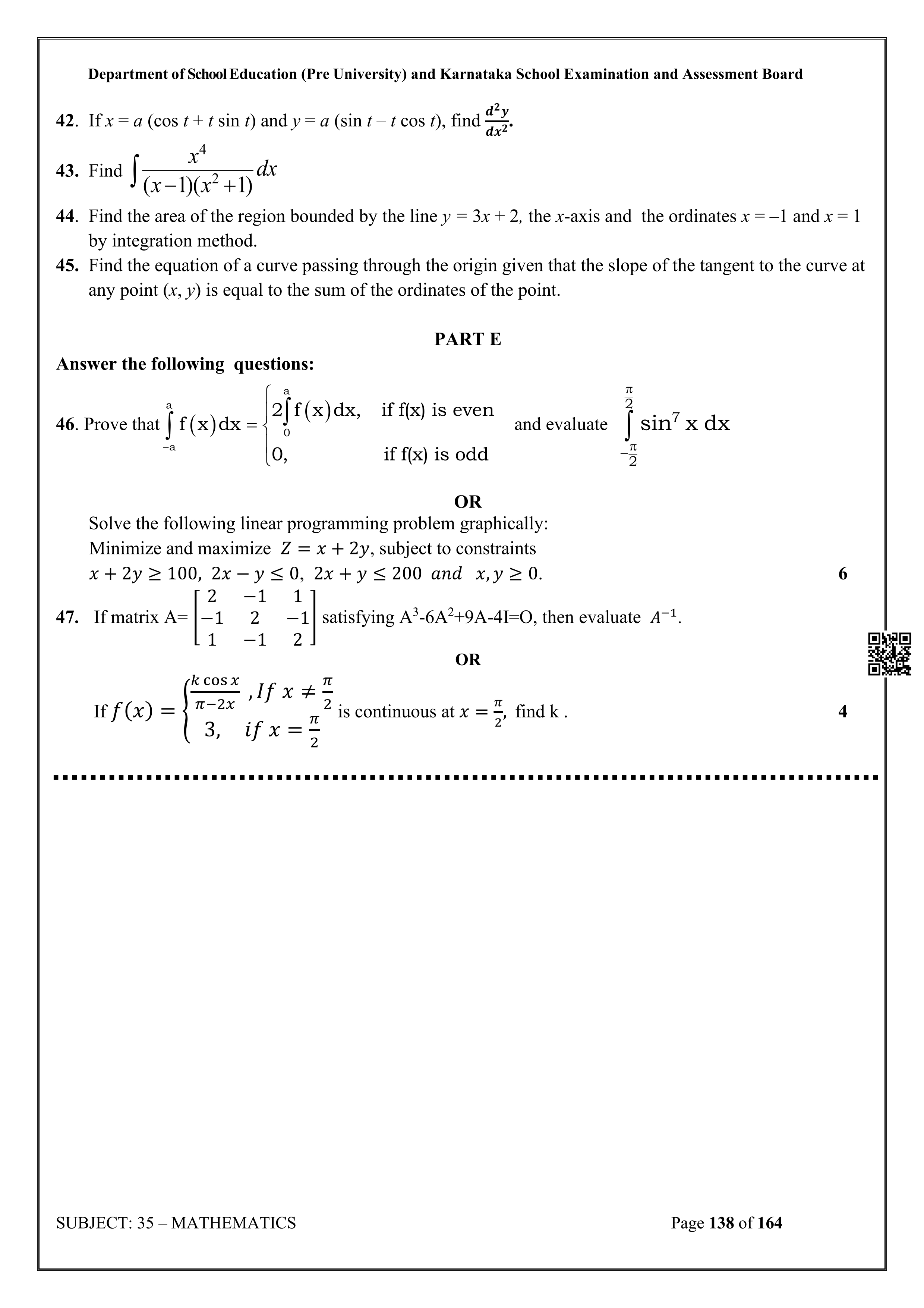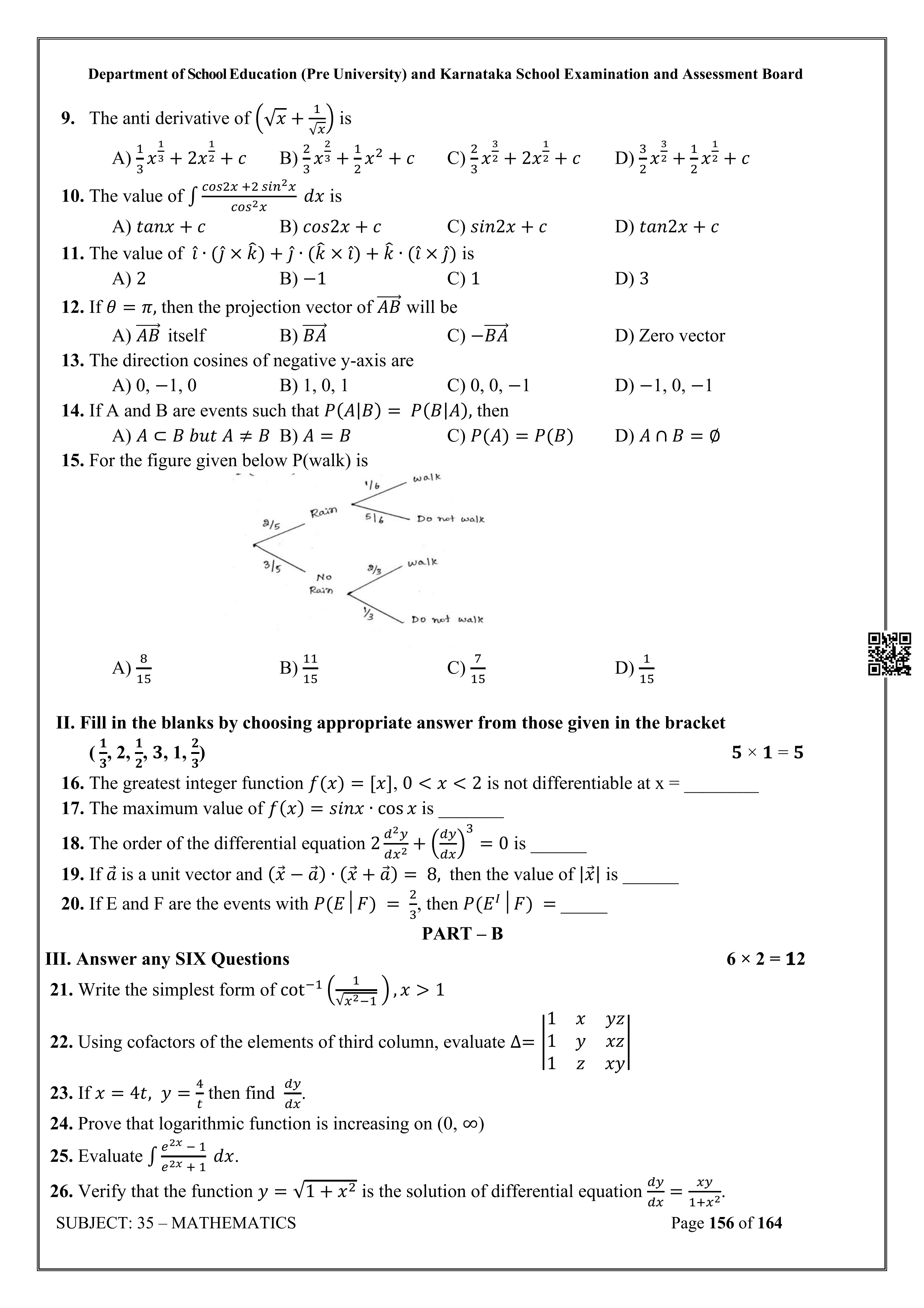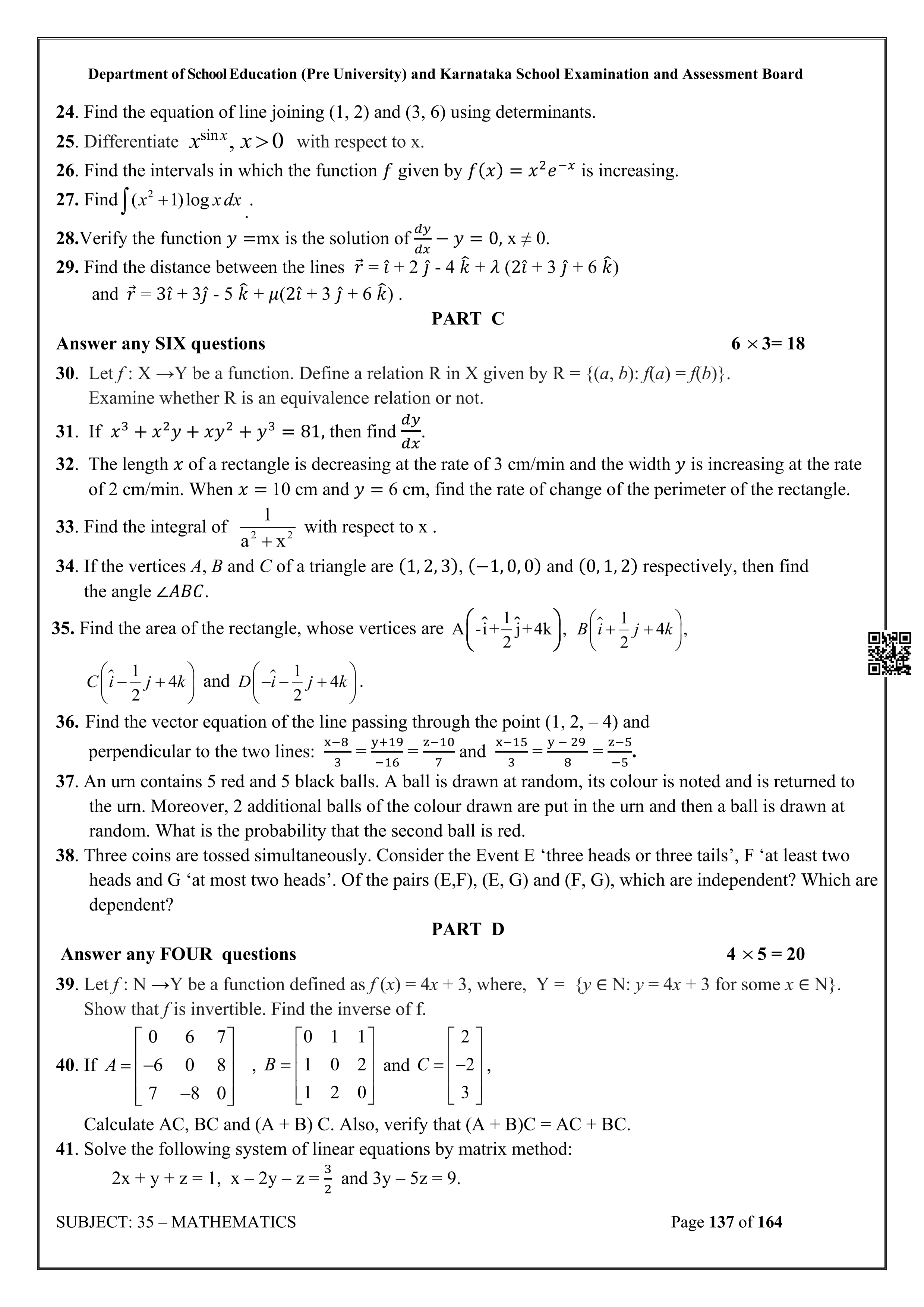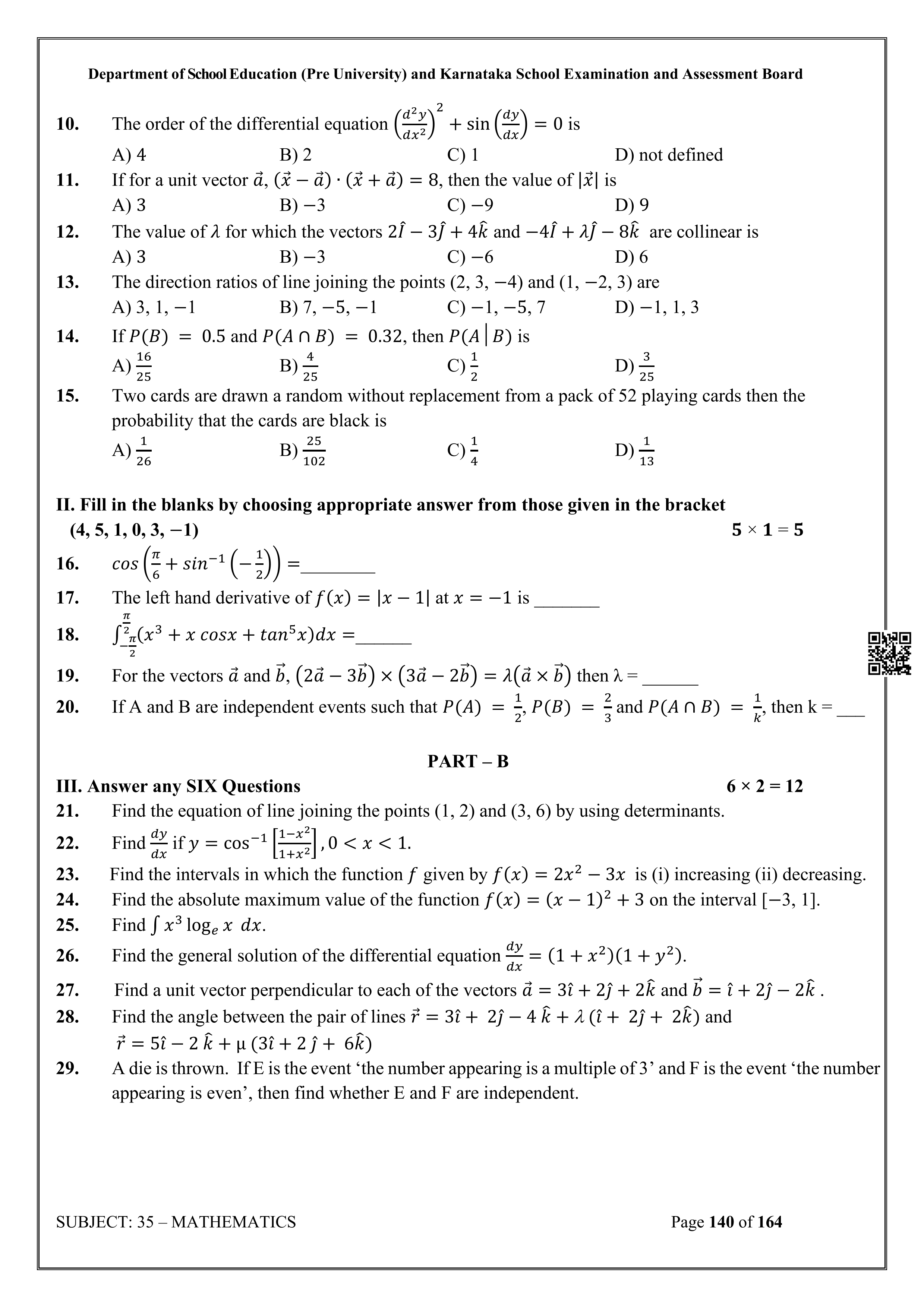 Karnataka State Board II PUC Mathematics Question Bank is available for download in PDF format. Simply click the download option to save the file. We recommend that students solve the provided Mathematics question bank to improve their exam scores and plan their preparation strategies effectively.