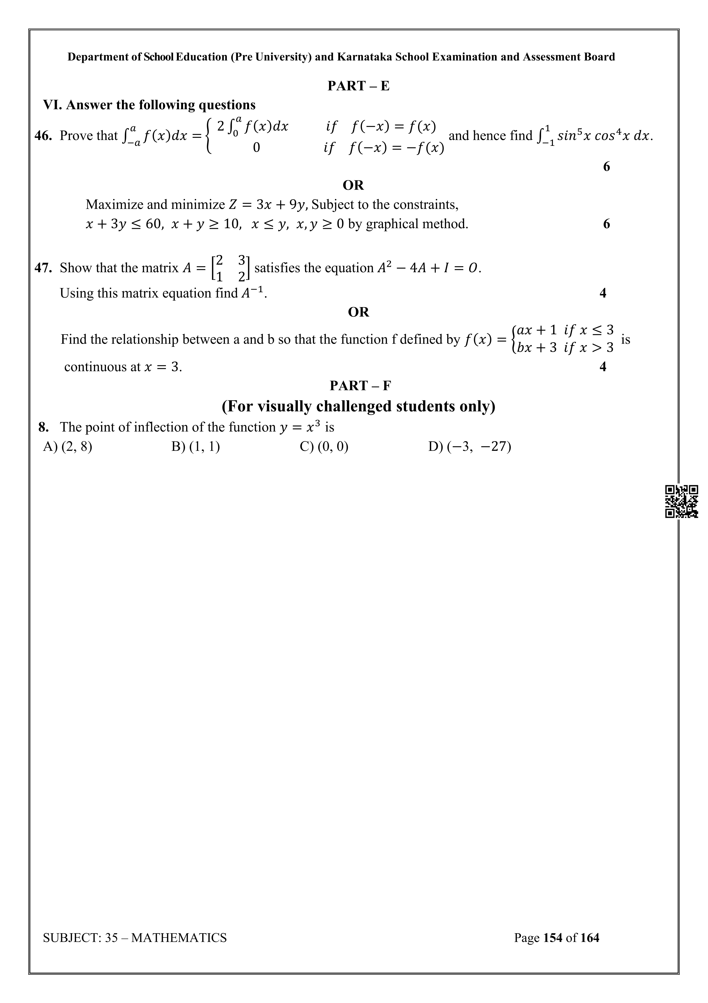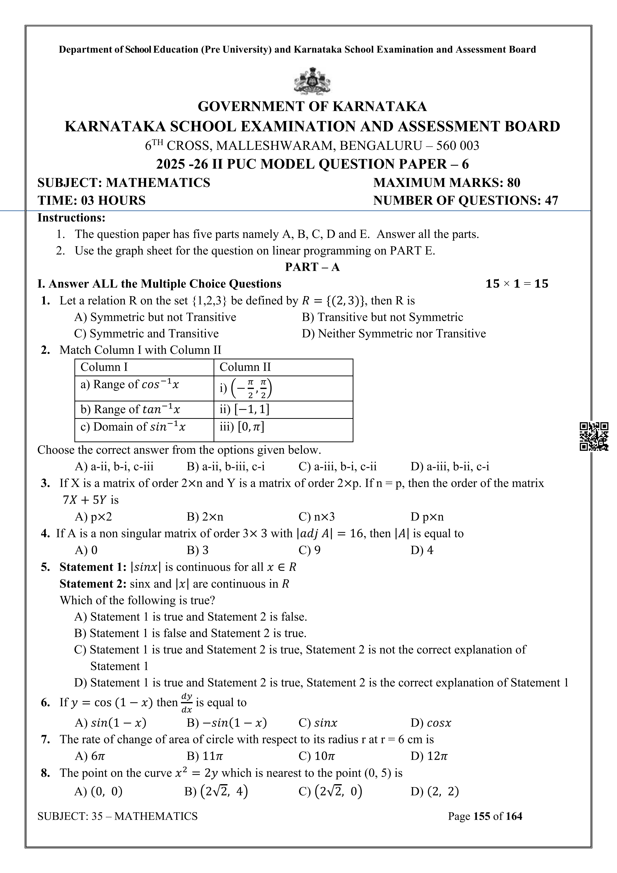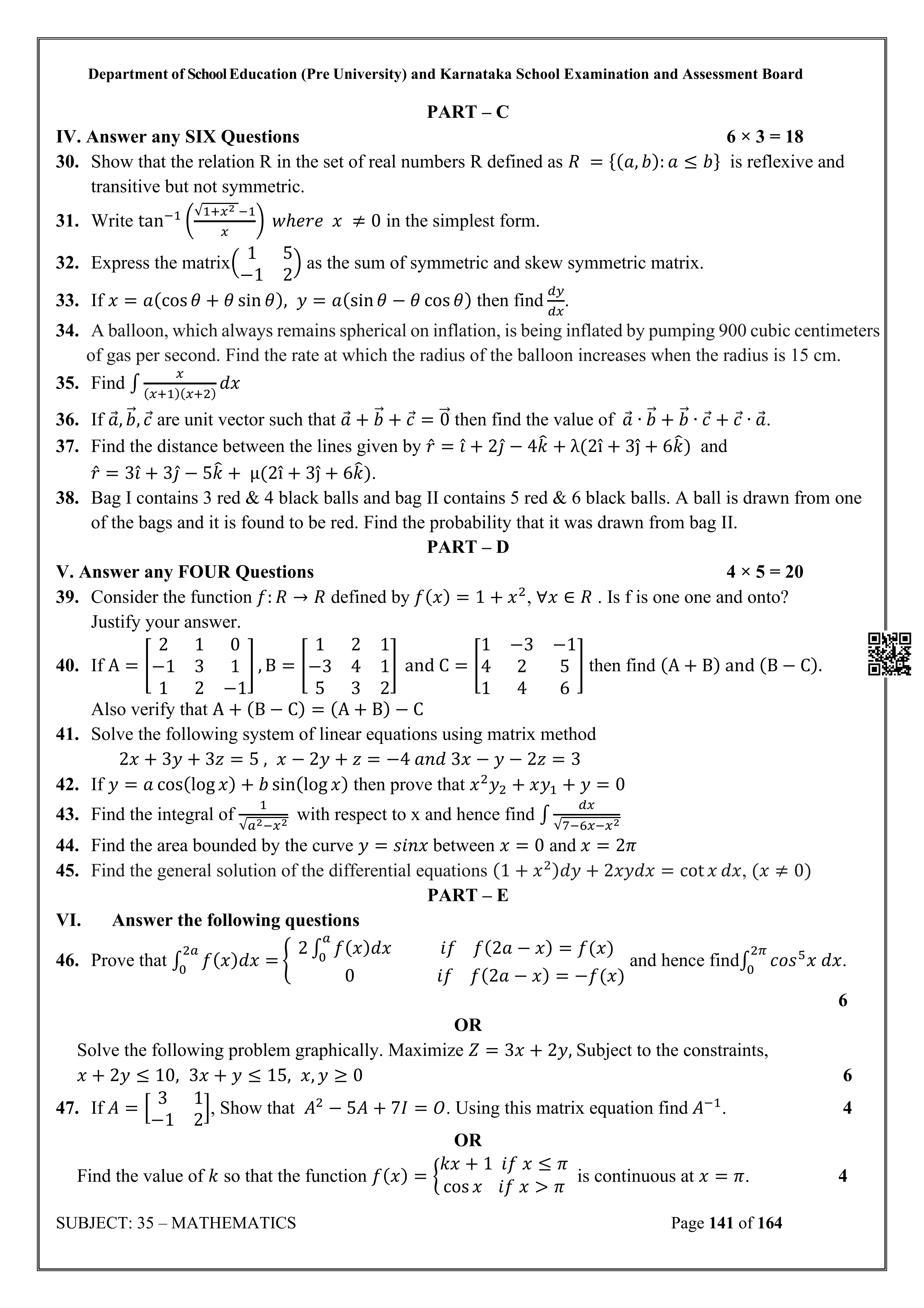 Karnataka II PUC Mathematics Question Bank