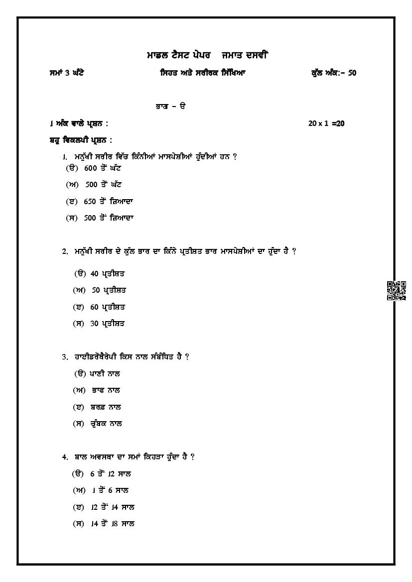 - Thereafter that you can use Punjab Board Class 10th model paper for Physical Education here at aglasem to prepare for the exams.