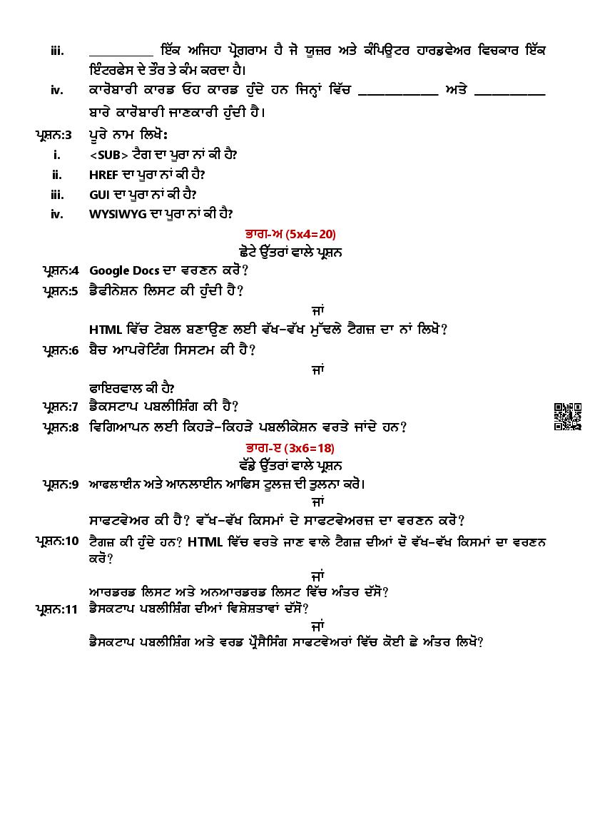 - Thereafter that you can use Punjab Board Class 10th model paper for Computer Science here at aglasem to prepare for the exams.