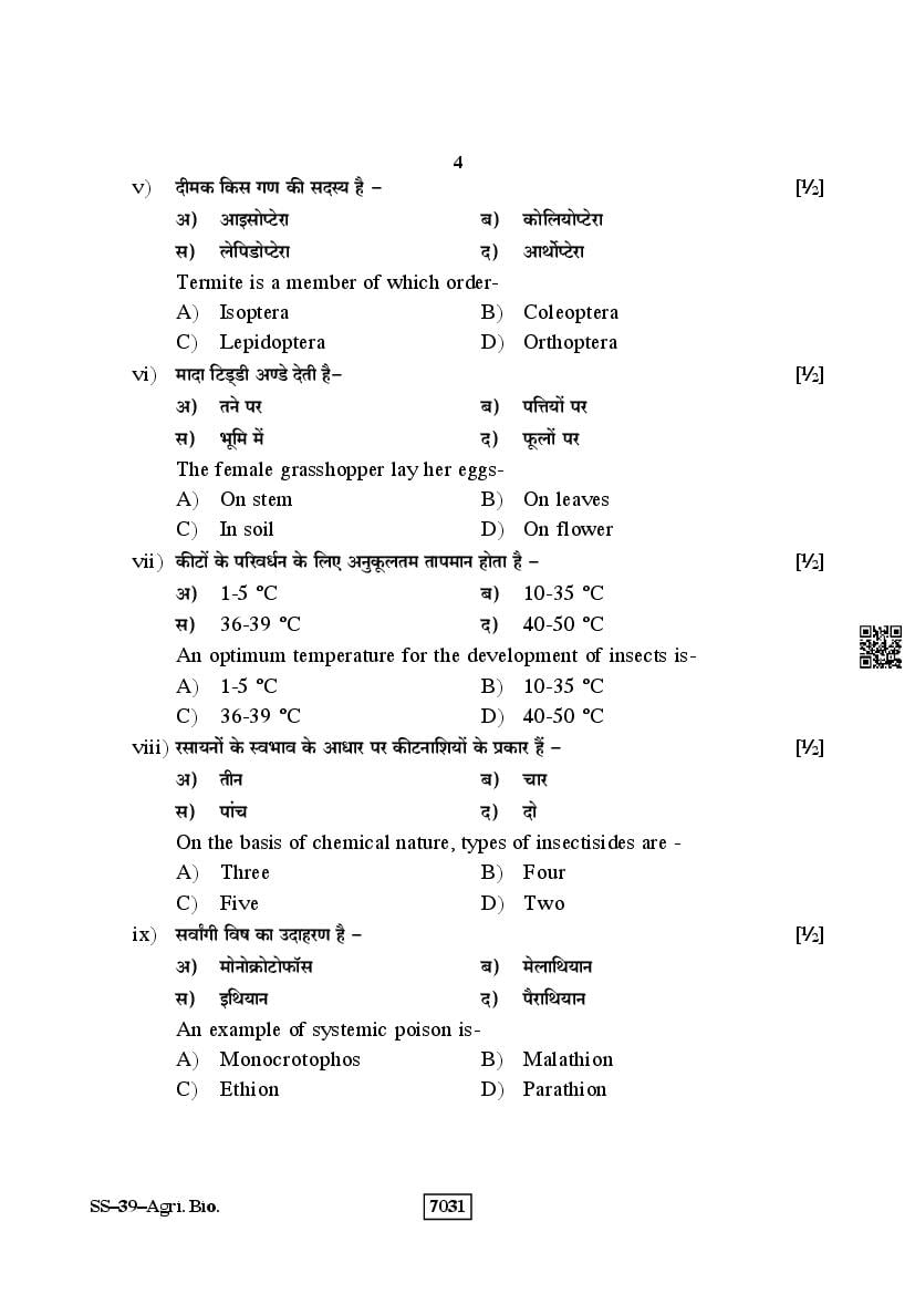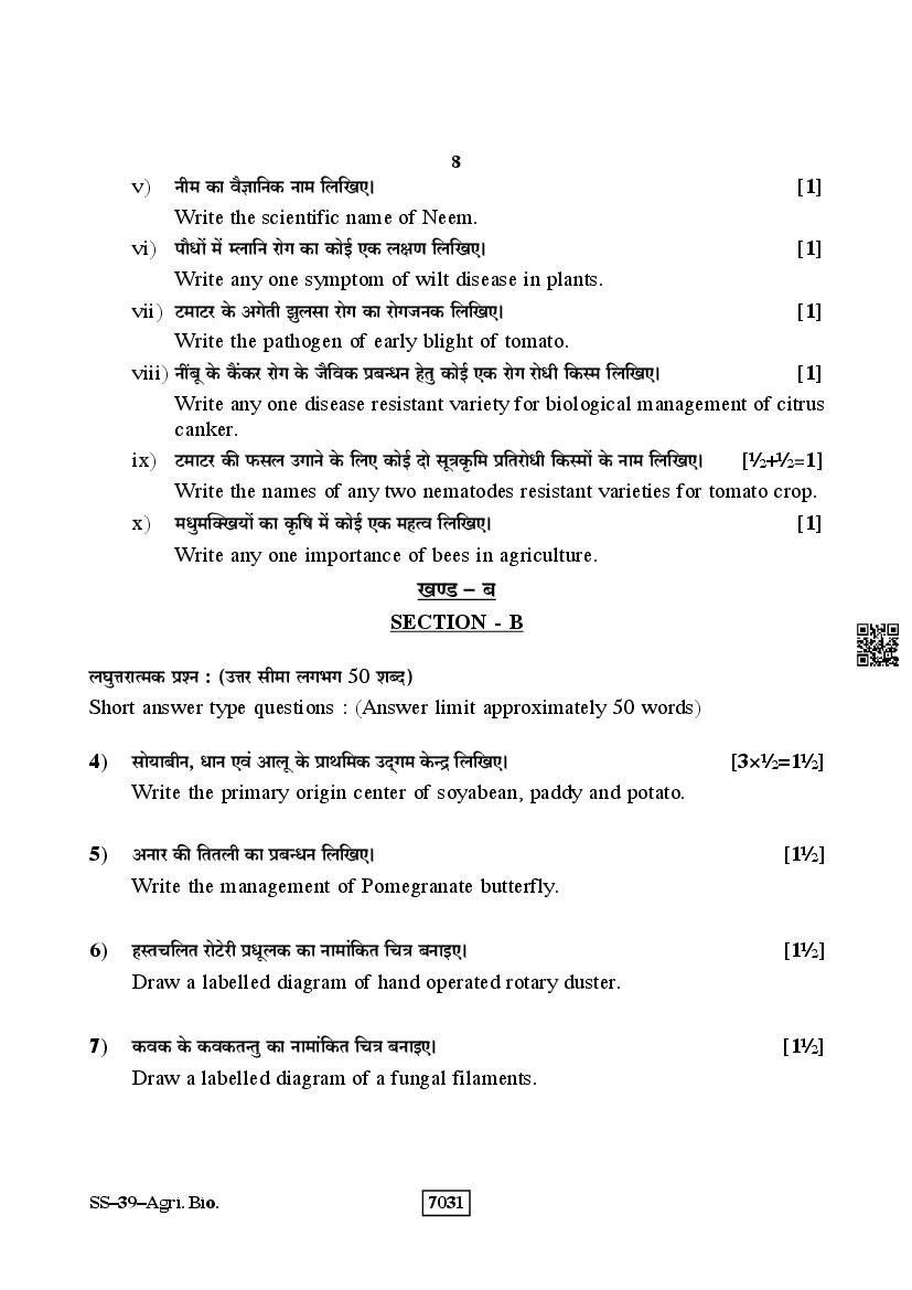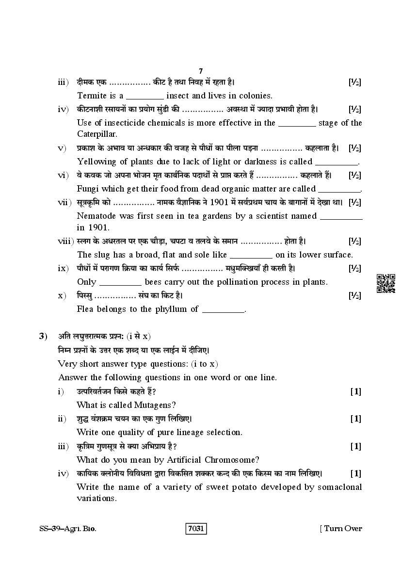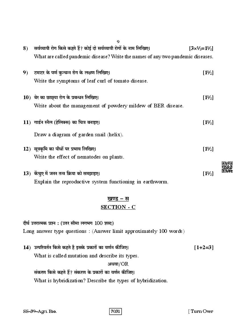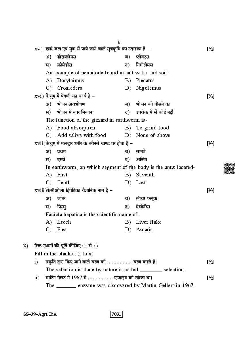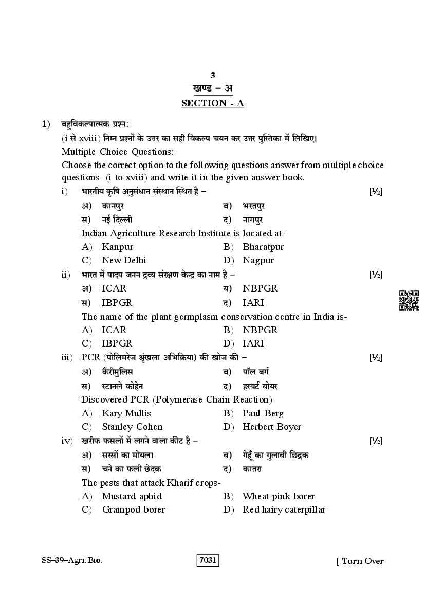 Rajasthan Board Agriculture Biology Question Paperis given below.