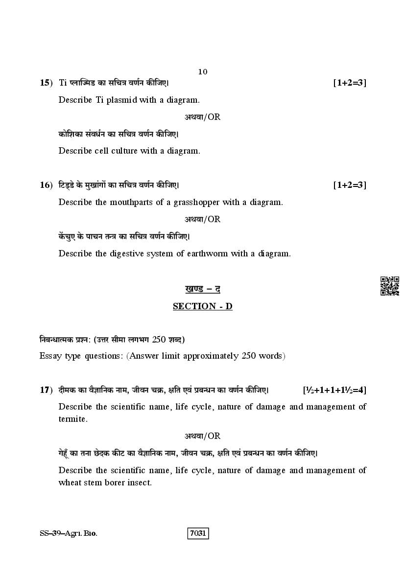 The Rajasthan Board previous year question paper for class 12 Agriculture Biology is as follows.