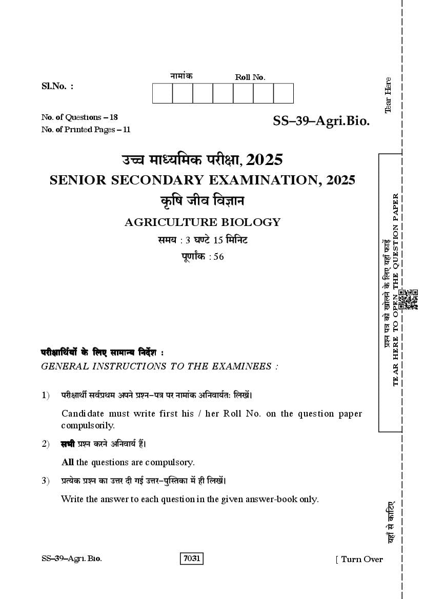 RBSE 12th Agriculture Biology Question Paper 2025 PDF is given below.