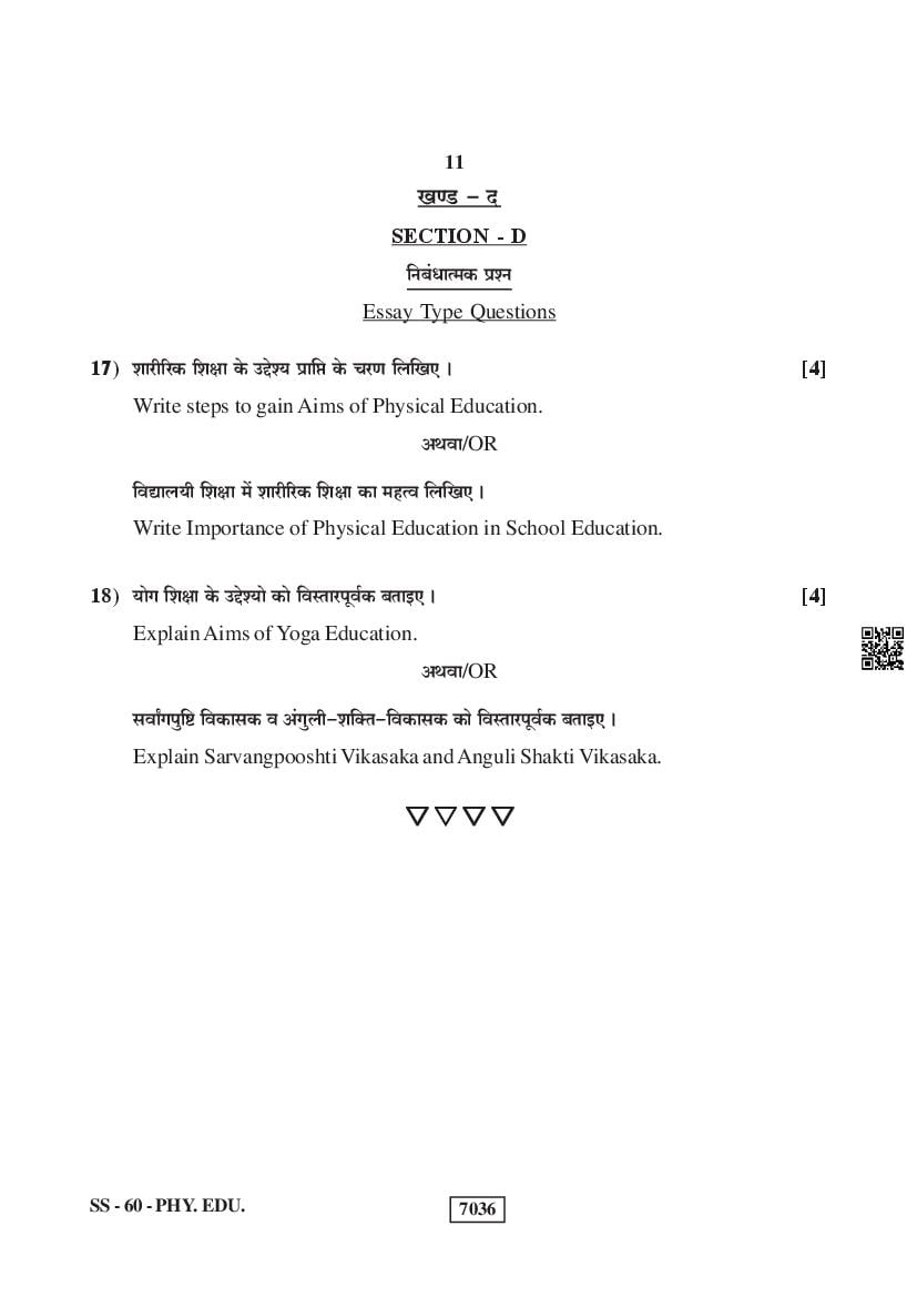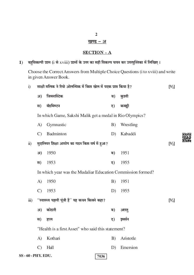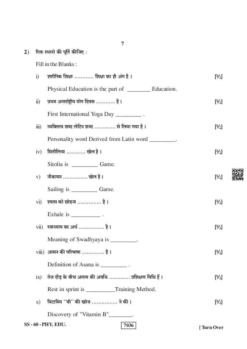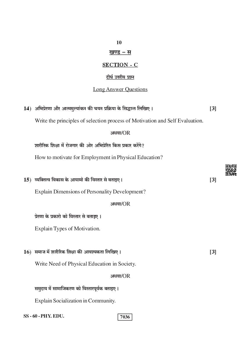 For the sake of the candidates download links of the Rajasthan Board 12 Physical Education Previous Year Question Paper are given below.