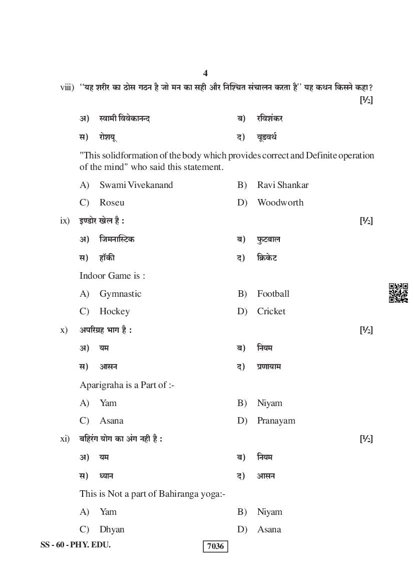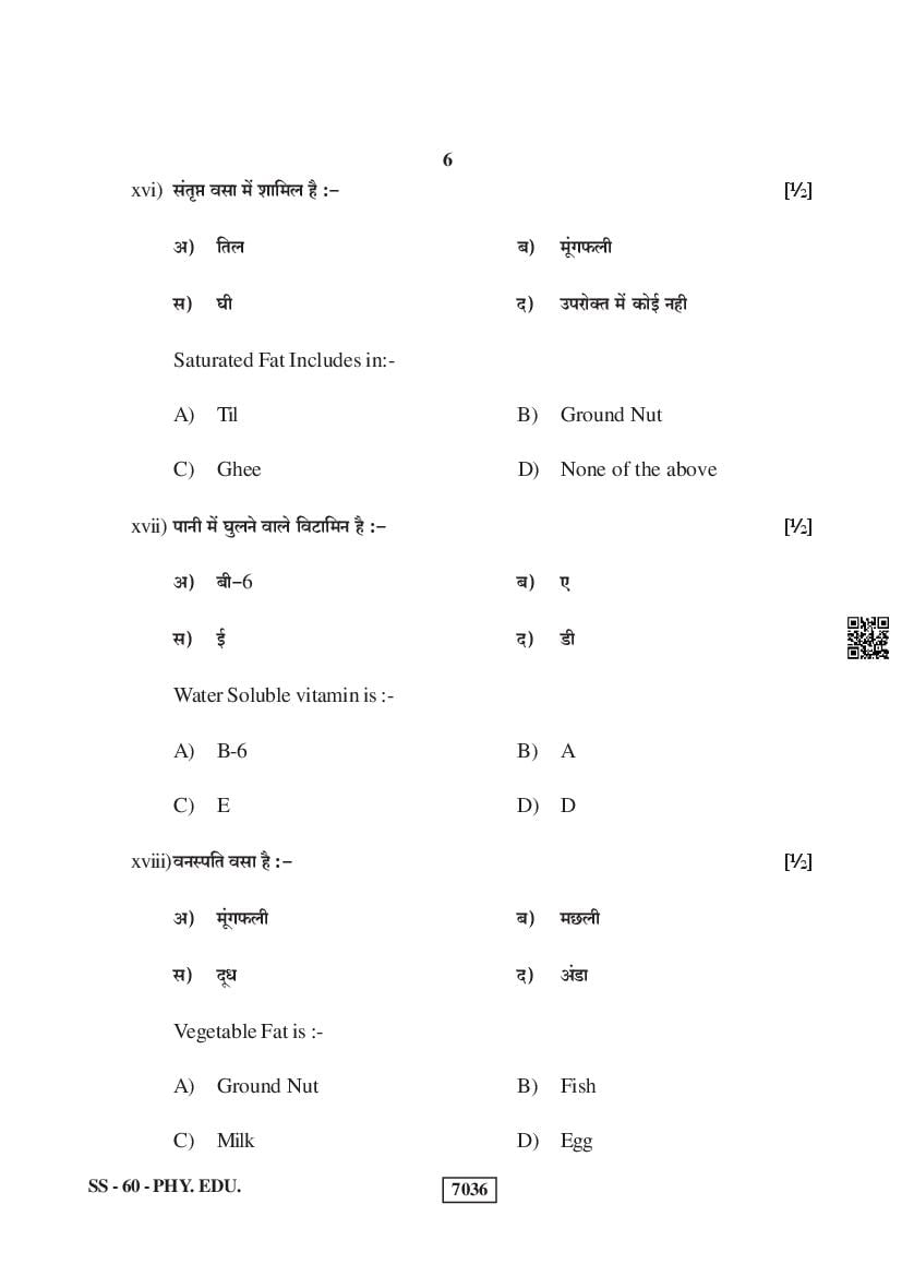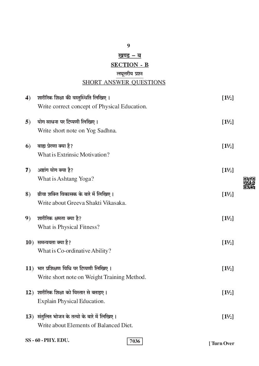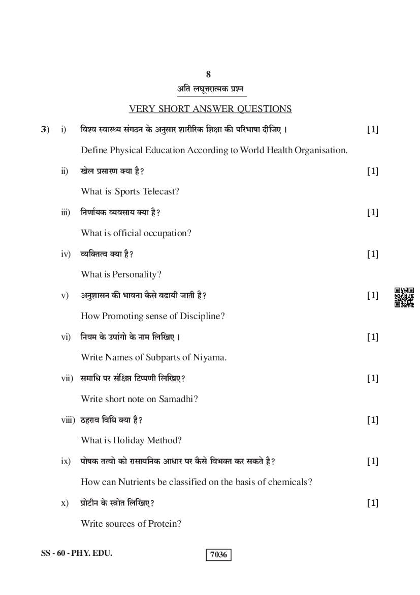 For the sake of the candidates download links of the Rajasthan Board 12 Physical Education Previous Year Question Paper are given below.