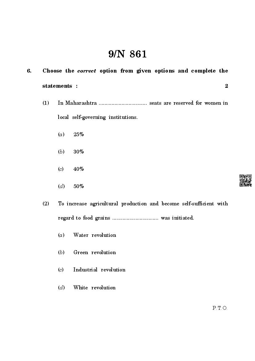 - Maharashtra Board Class 9th Question Papers